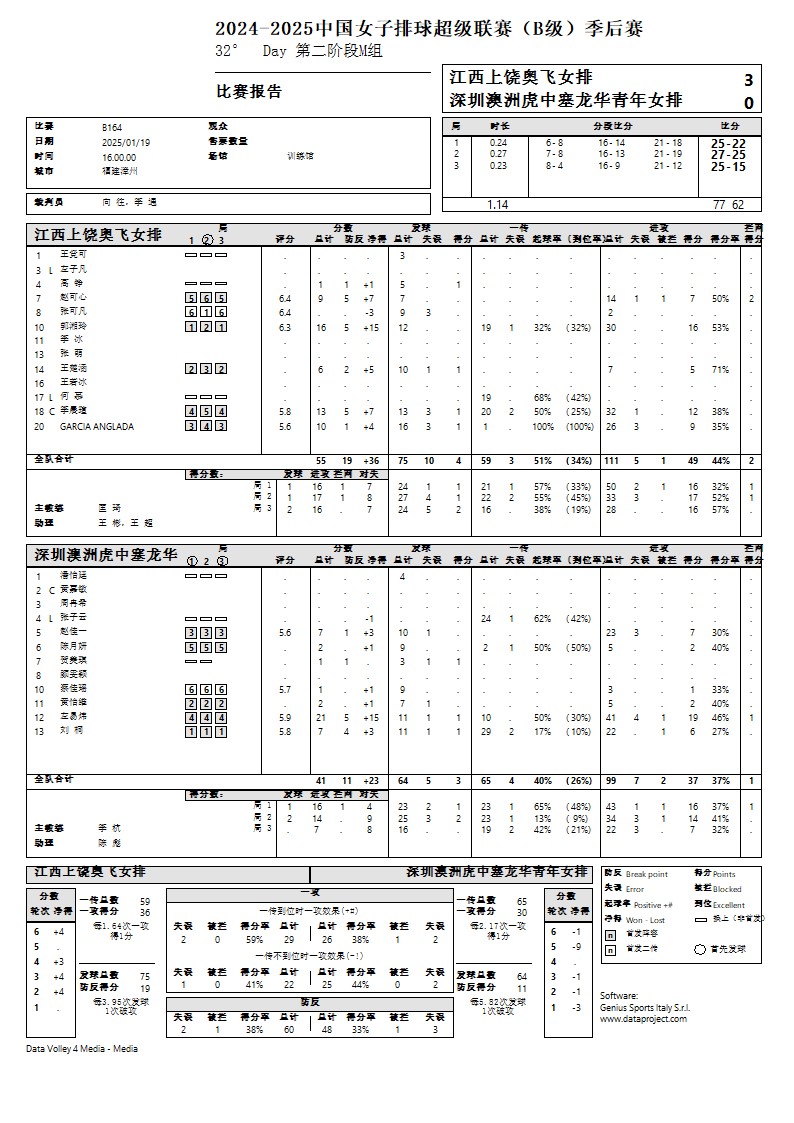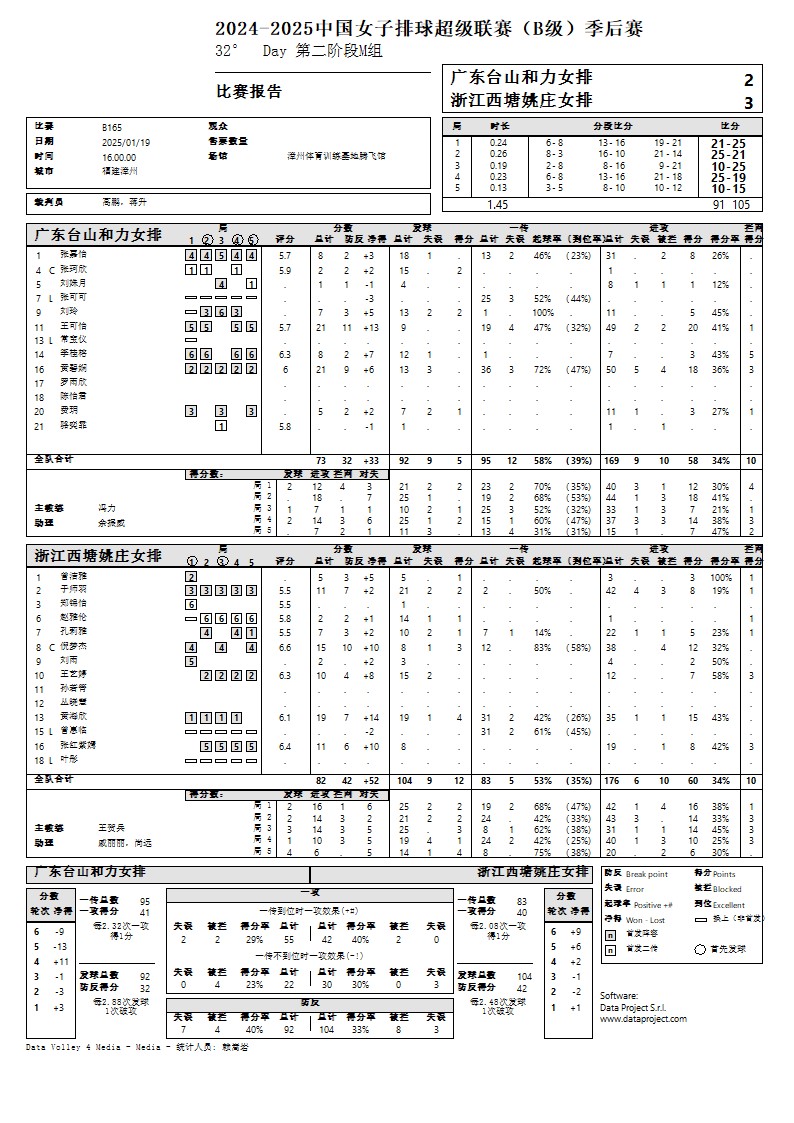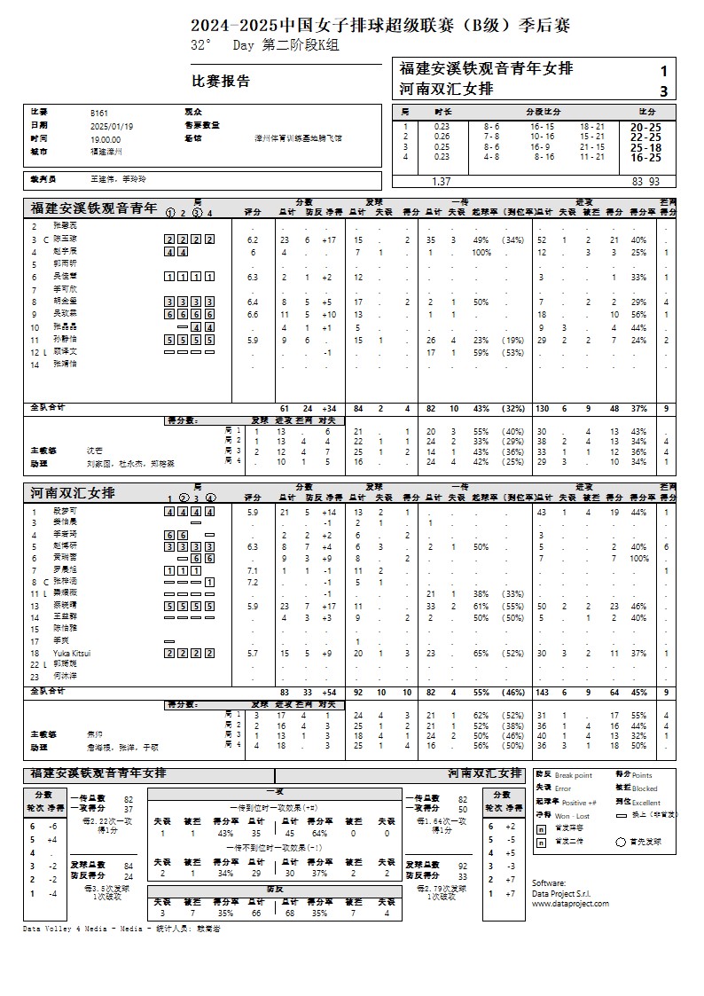 2024-2025中国女子排球超级联赛B级季后赛19号公告