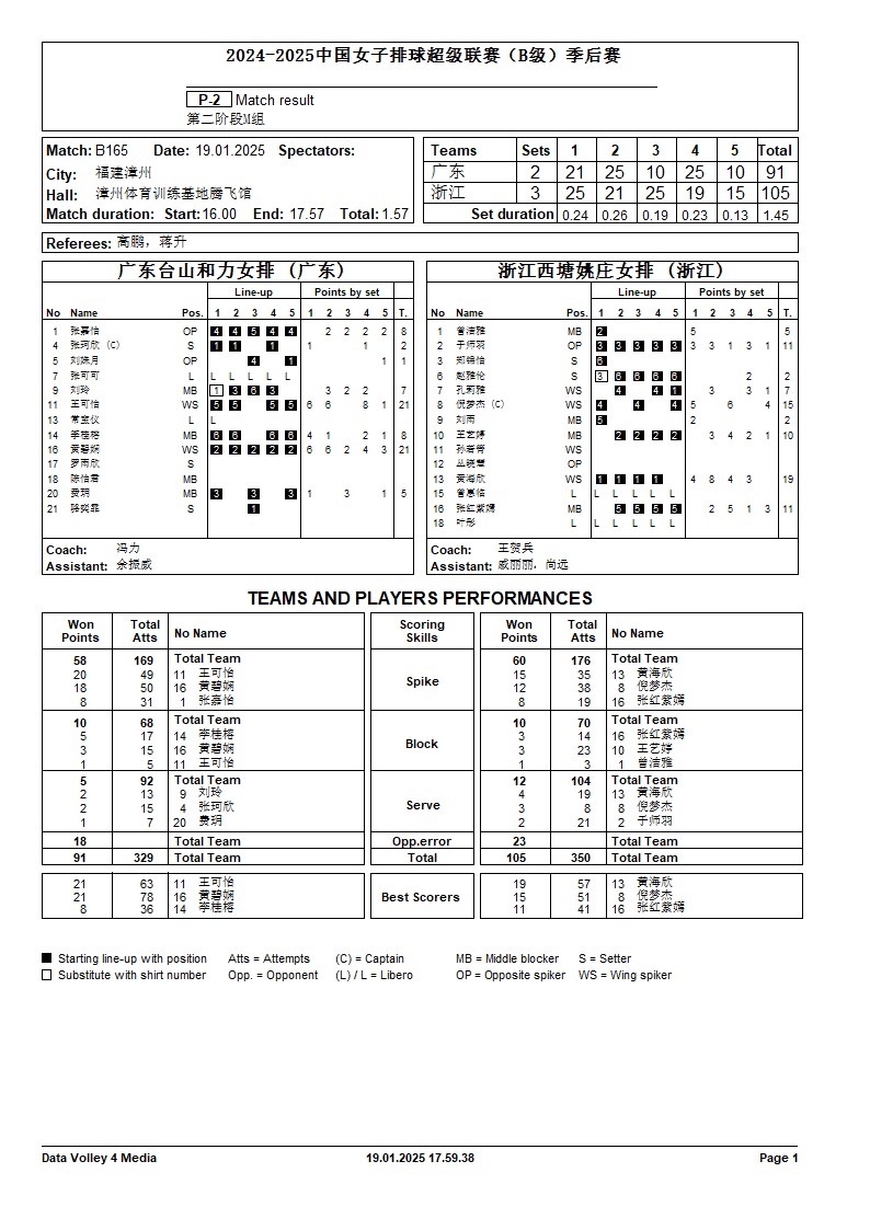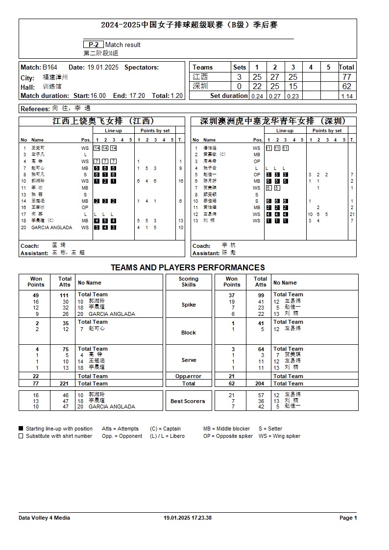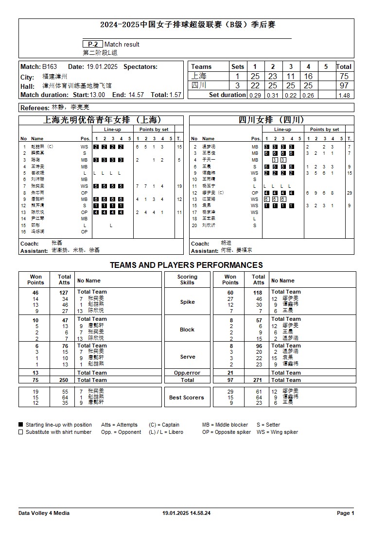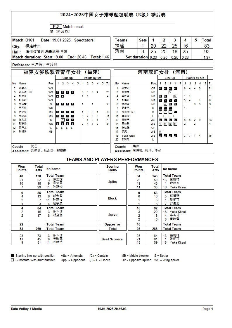 2024-2025中国女子排球超级联赛B级季后赛19号公告