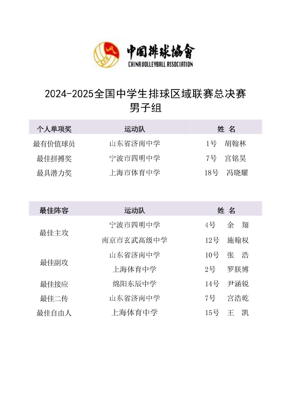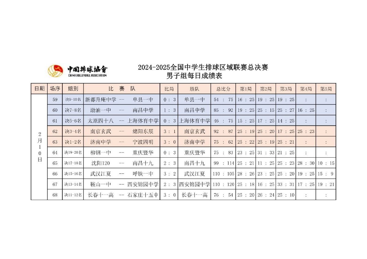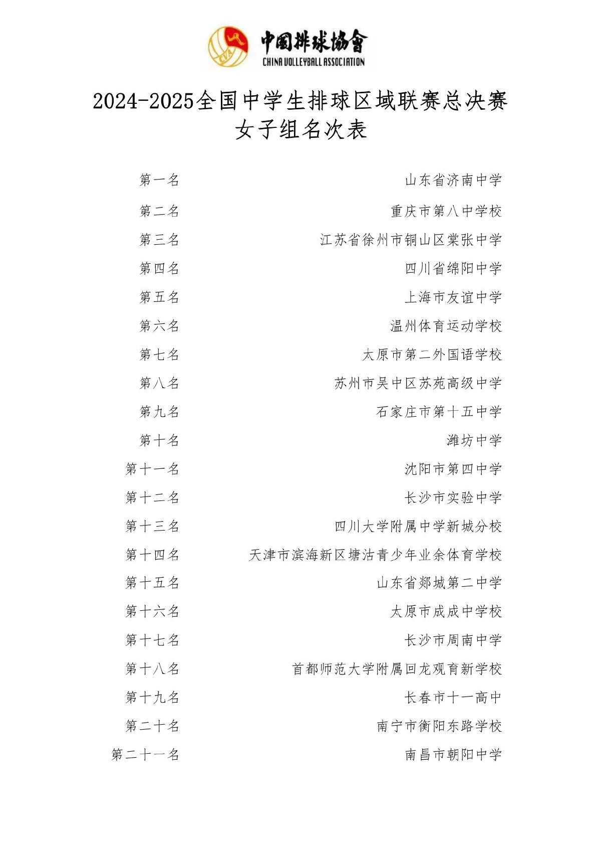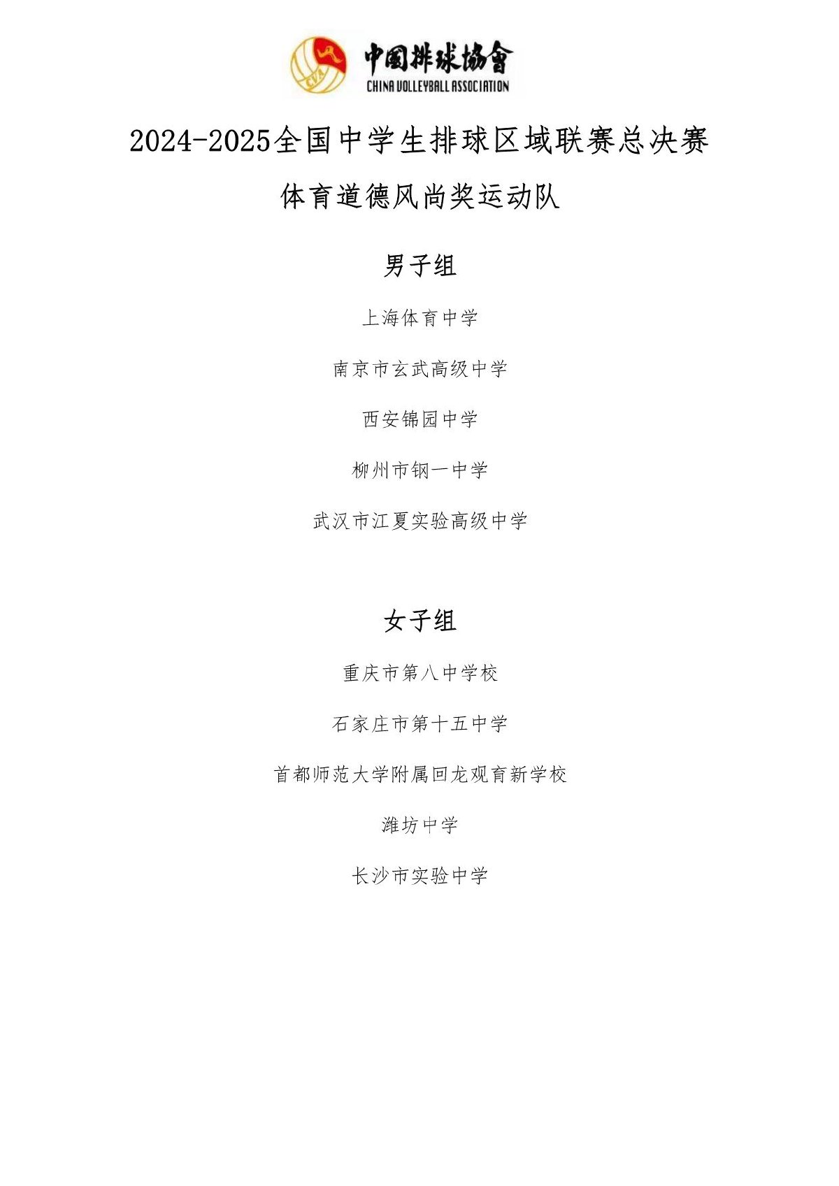 2024-2025全国中学生排球区域联赛总决赛成绩及奖项