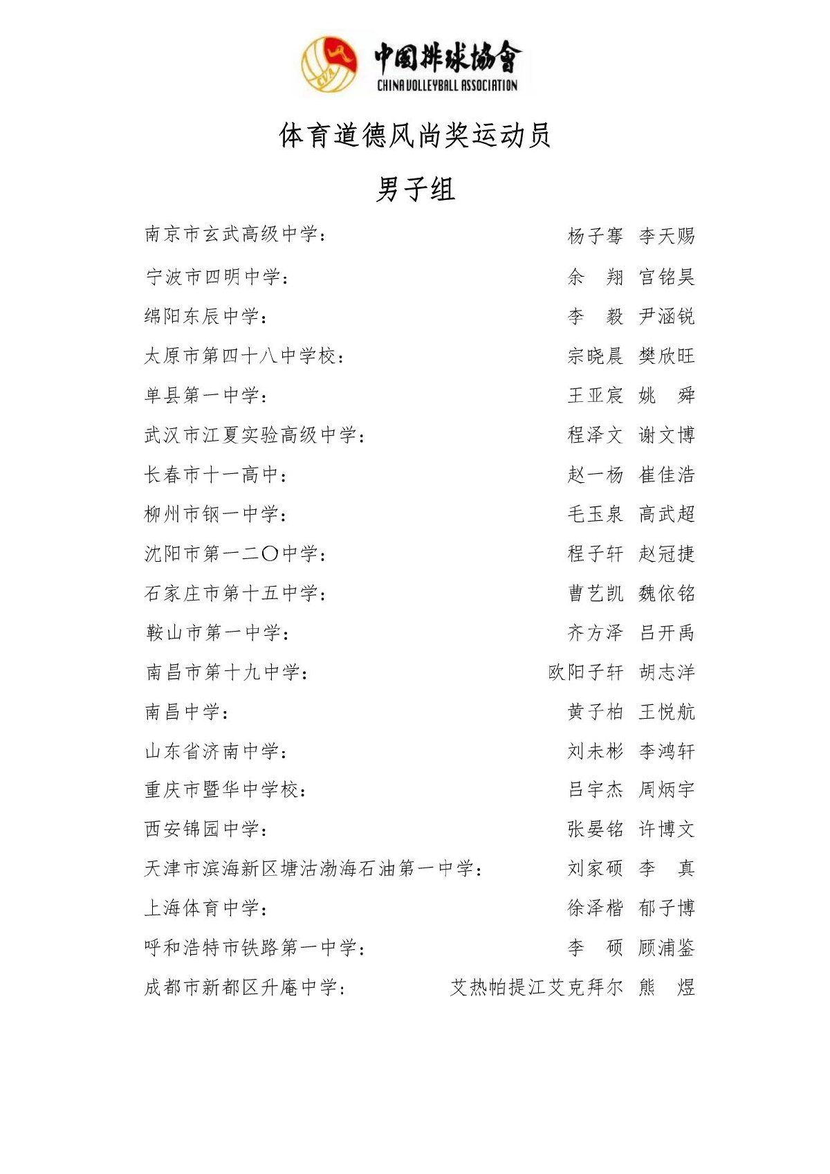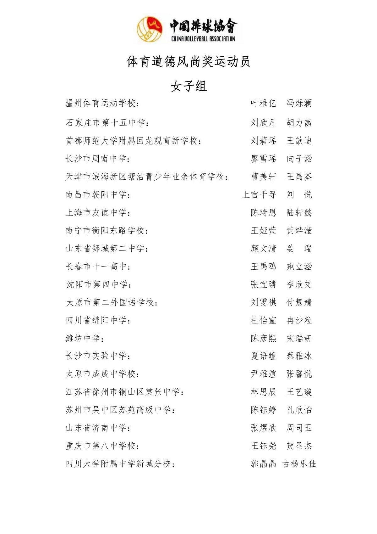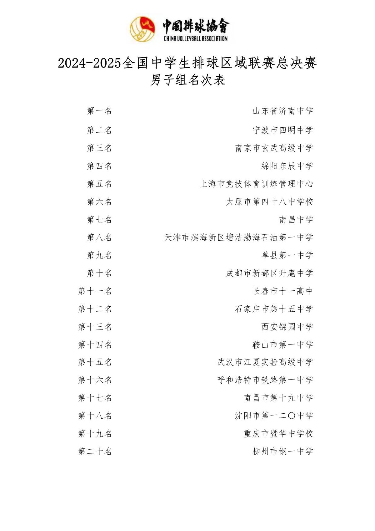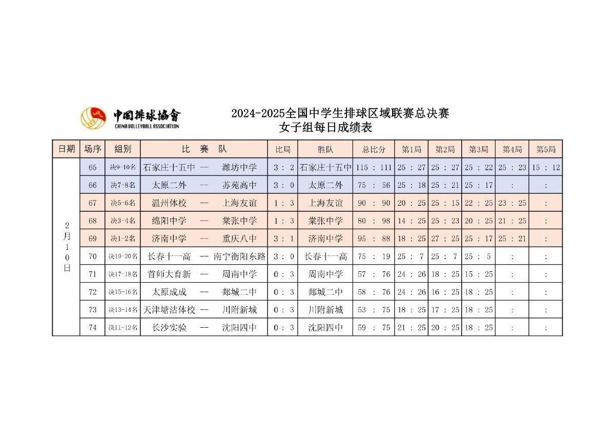 2024-2025全国中学生排球区域联赛总决赛成绩及奖项