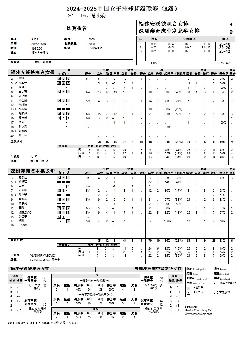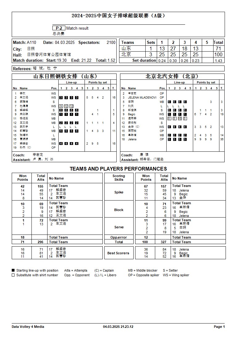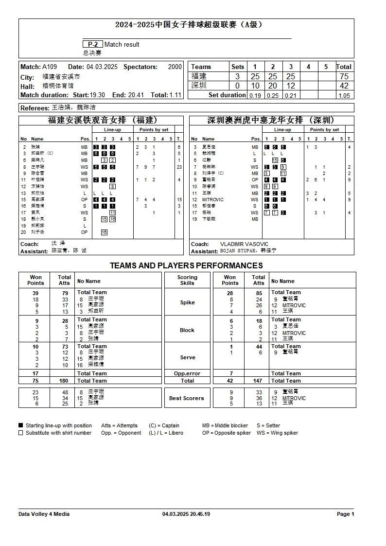 2024-2025中国女子排球超级联赛A级总决赛4号公告