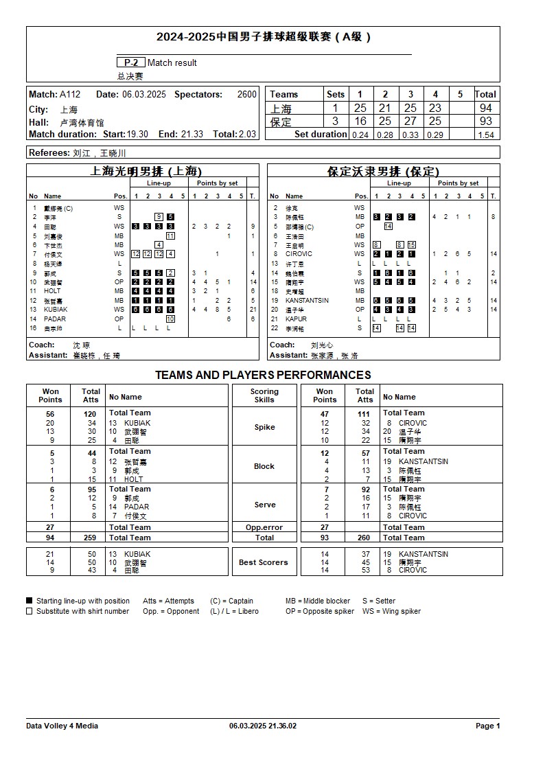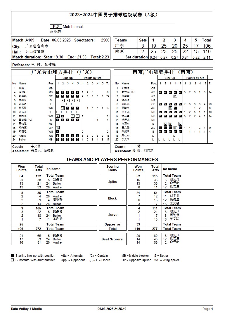 2024-2025中国男子排球超级联赛A级总决赛4号公告