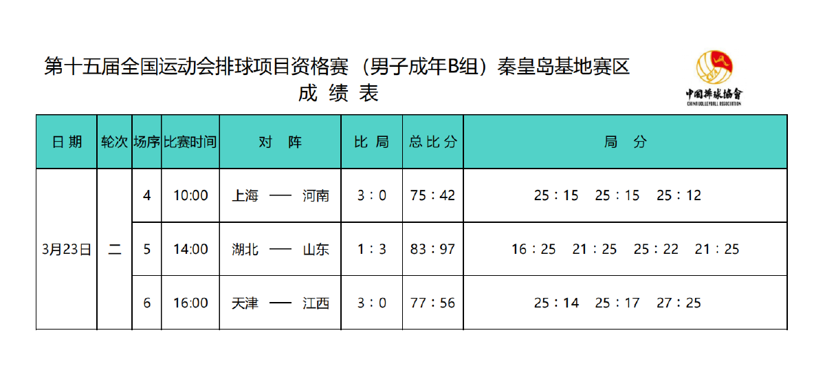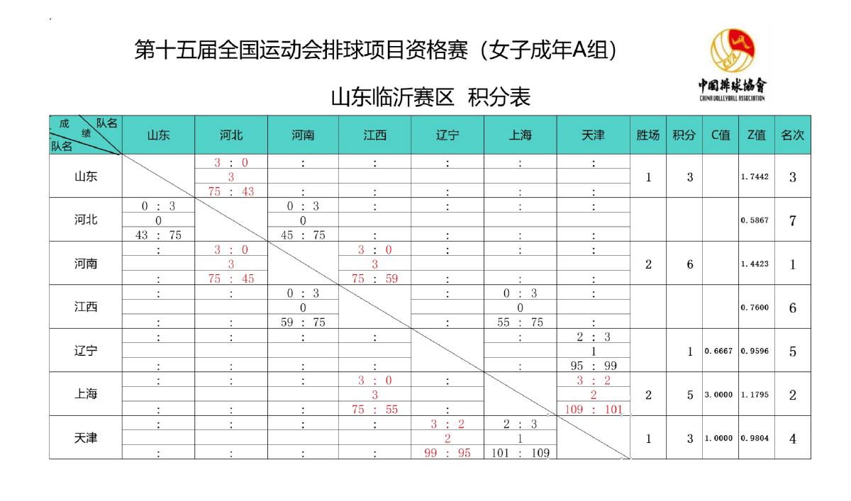 第十五届全国运动会排球项目资格赛成年组3号公告