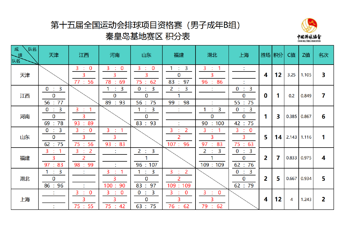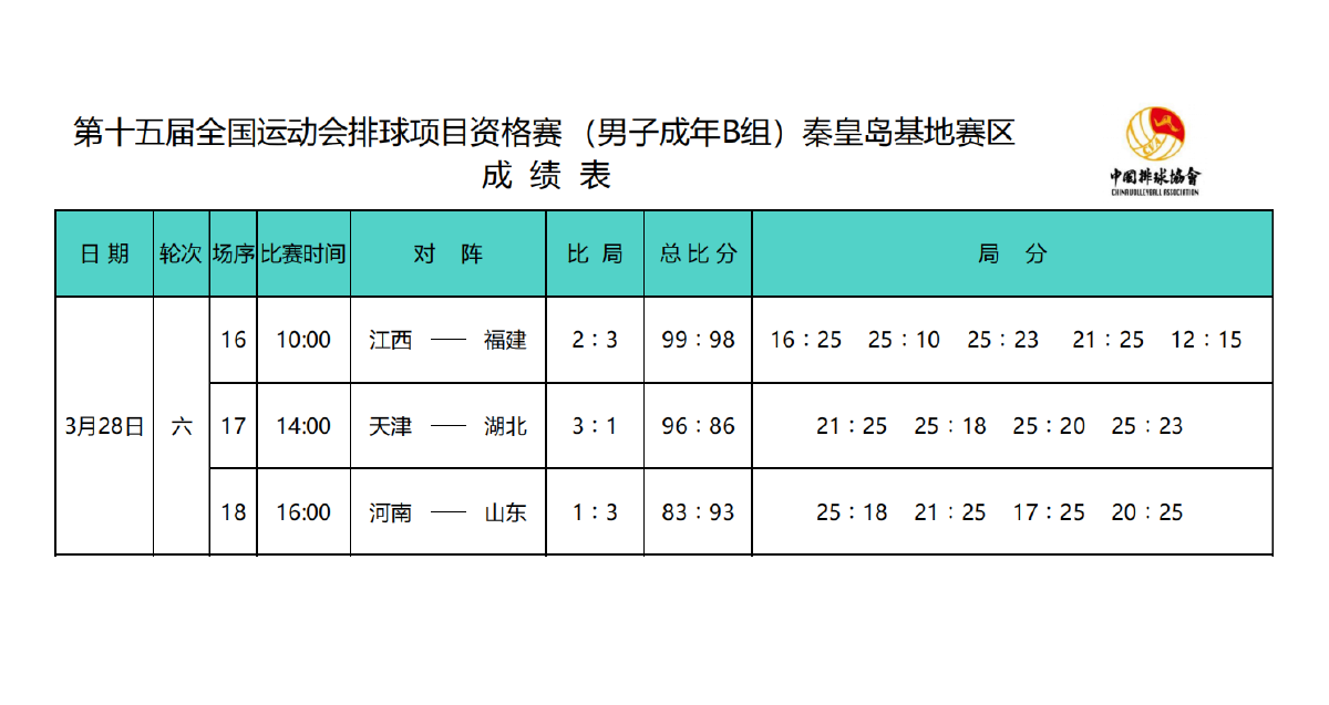 第十五届全国运动会排球项目资格赛成年组8号公告