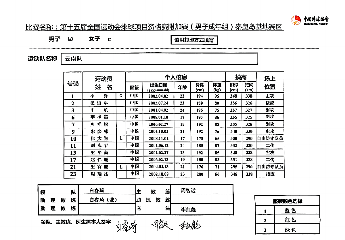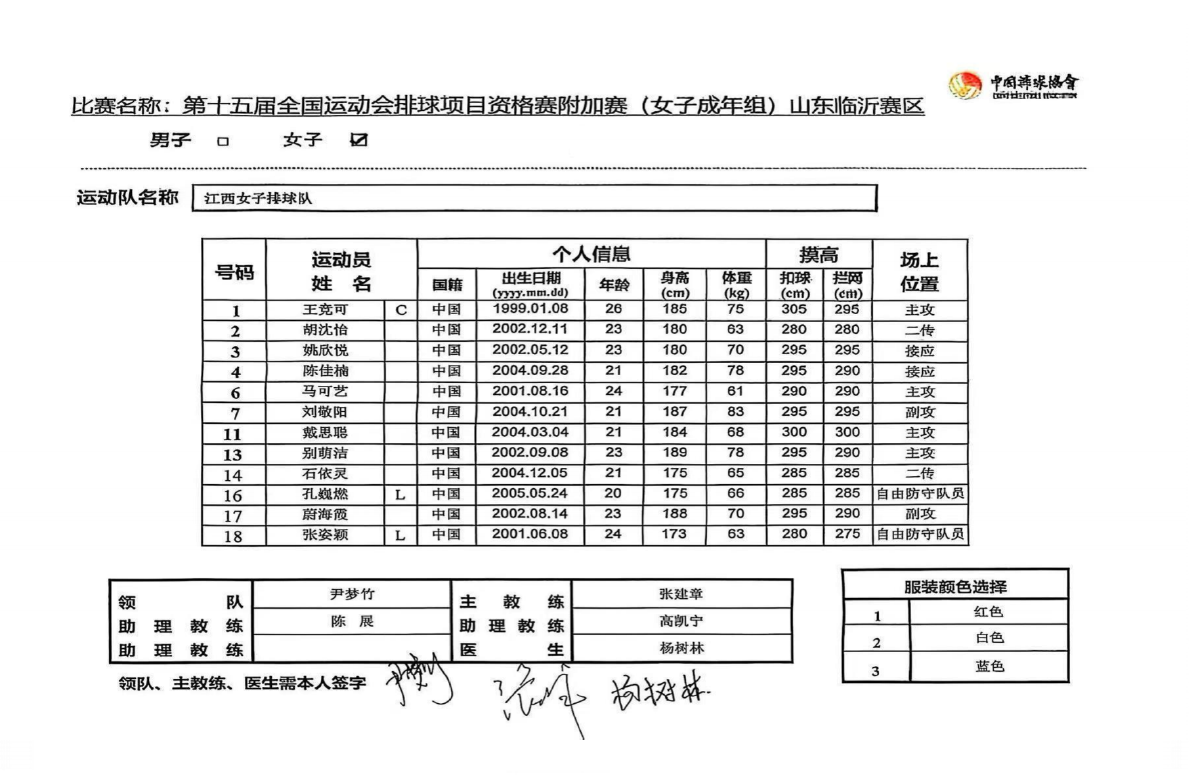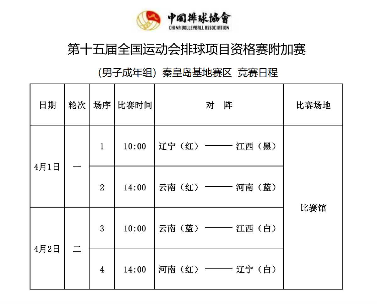 第十五届全国运动会排球项目资格赛附加赛成年组1号公告