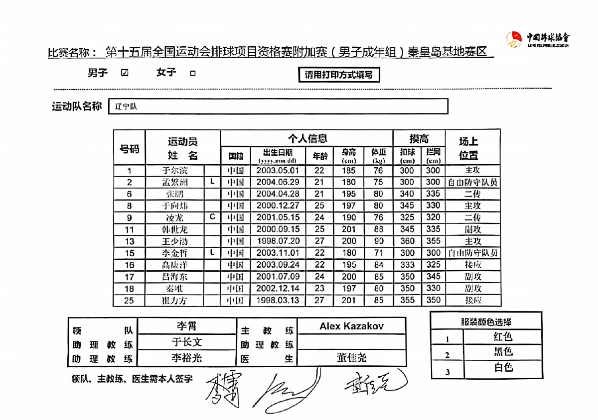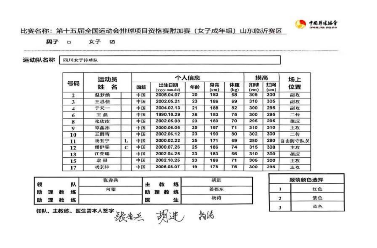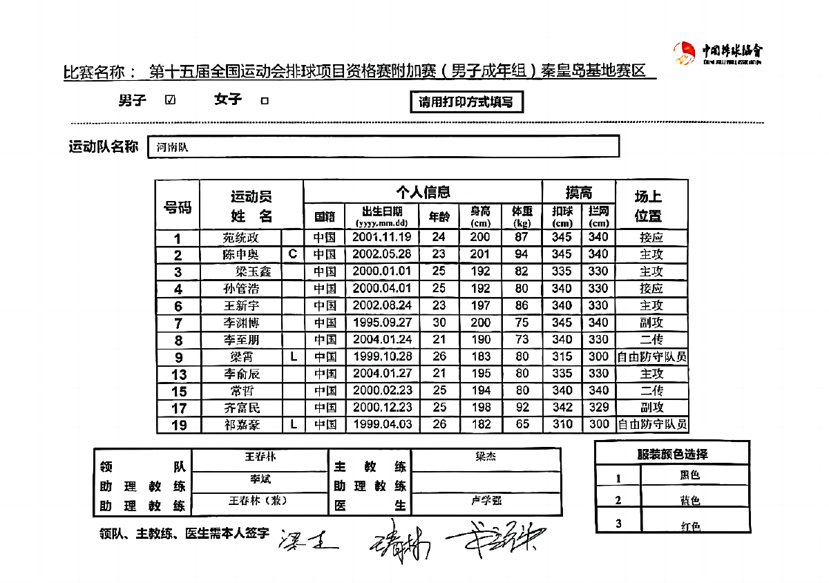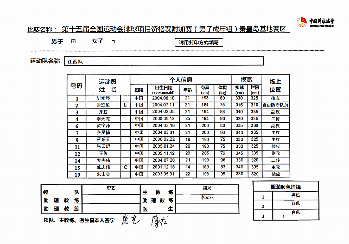 第十五届全国运动会排球项目资格赛附加赛成年组1号公告