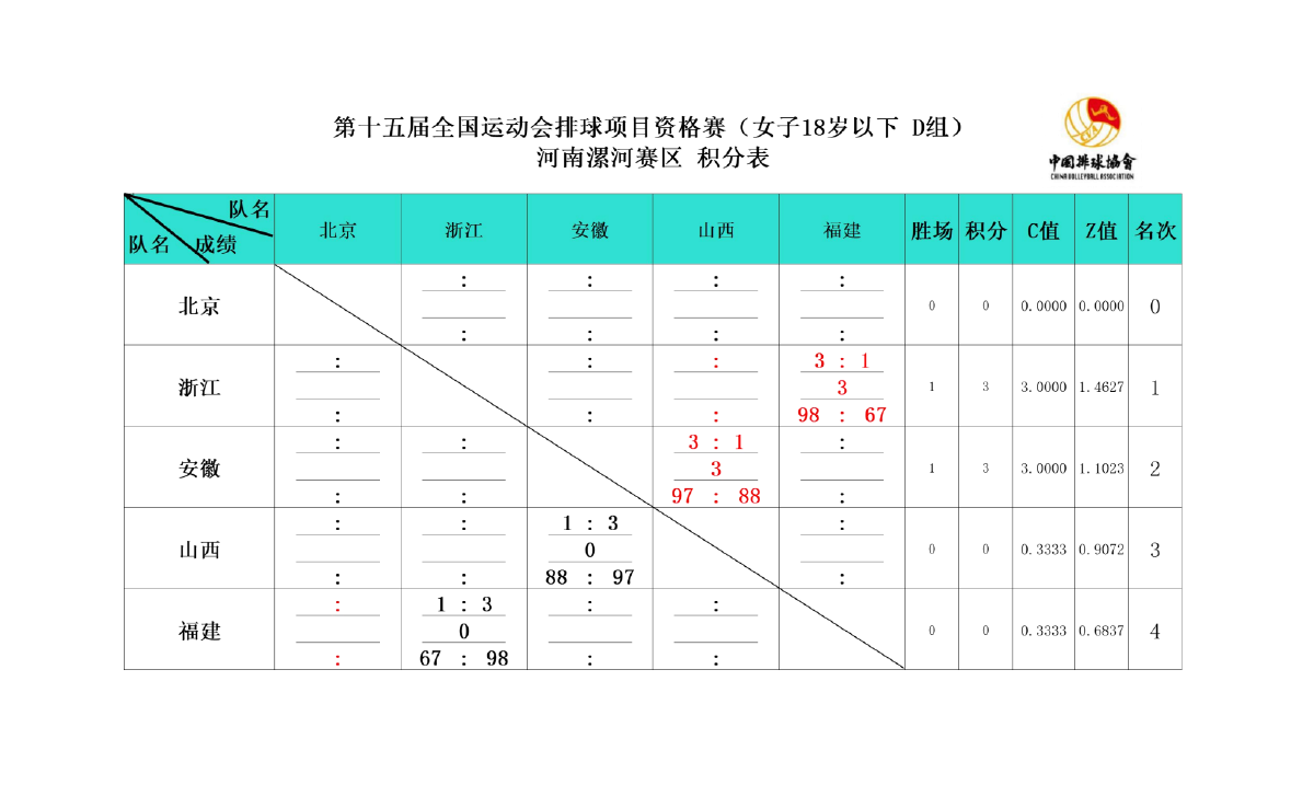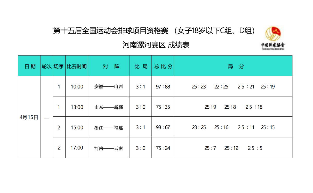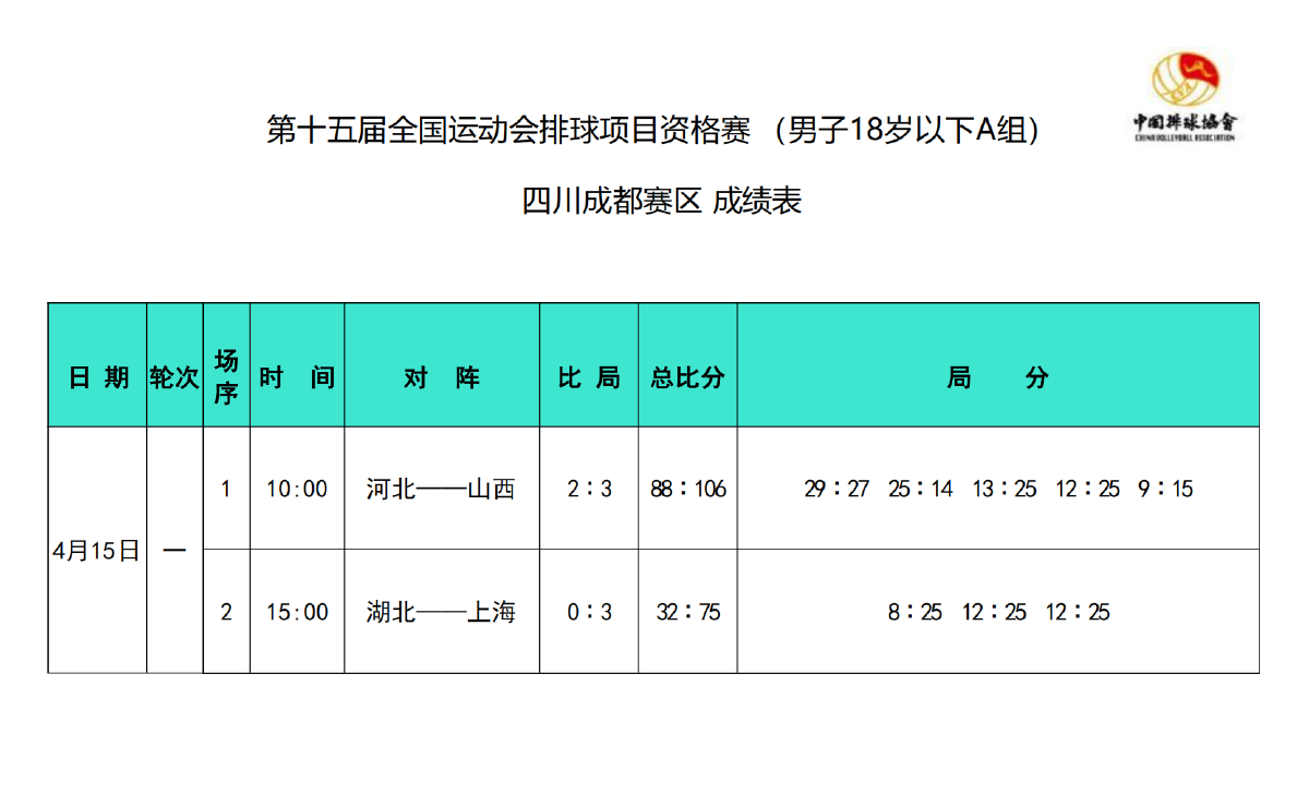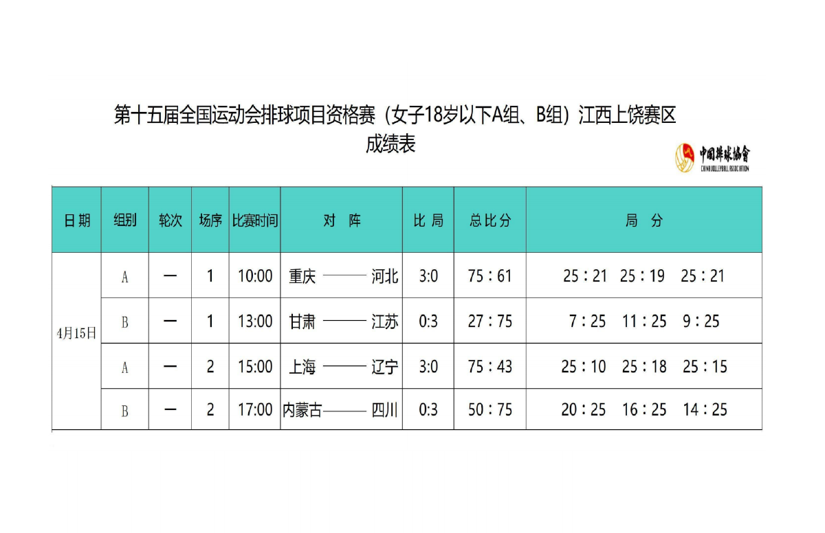 第十五届全国运动会排球项目资格赛18岁以下组2号公告