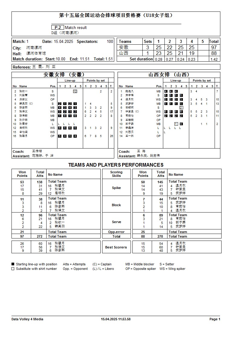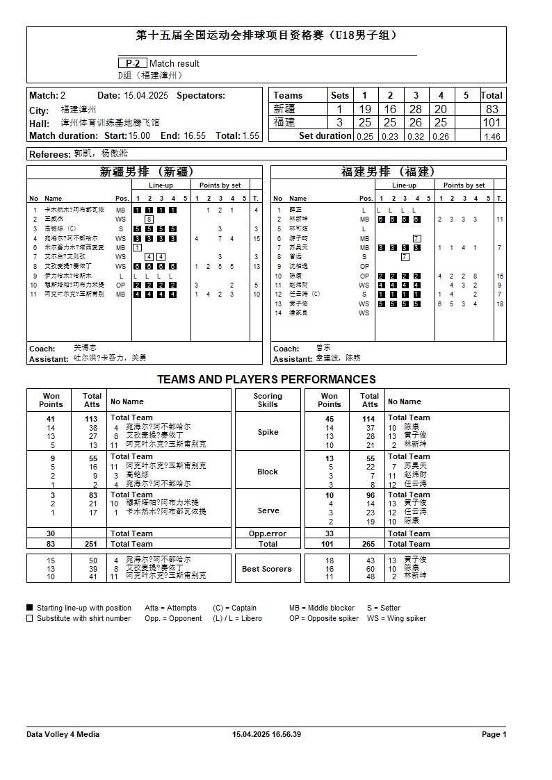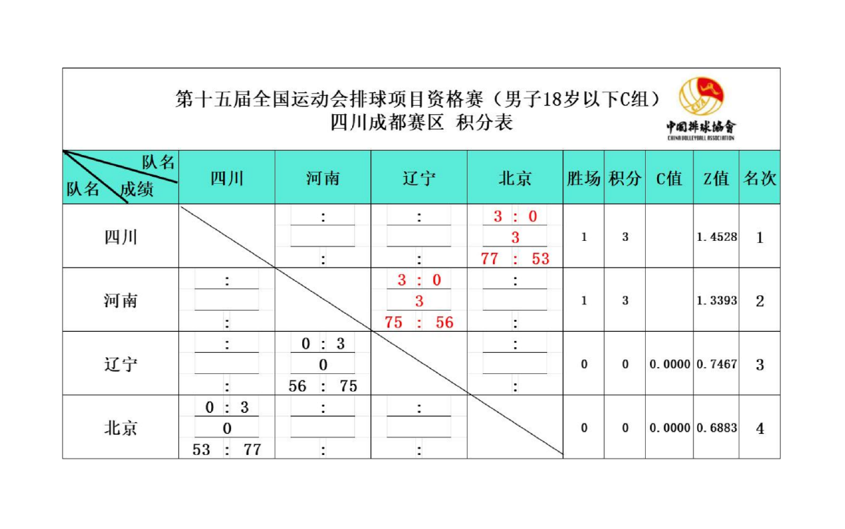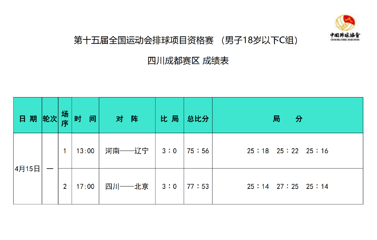 第十五届全国运动会排球项目资格赛18岁以下组2号公告