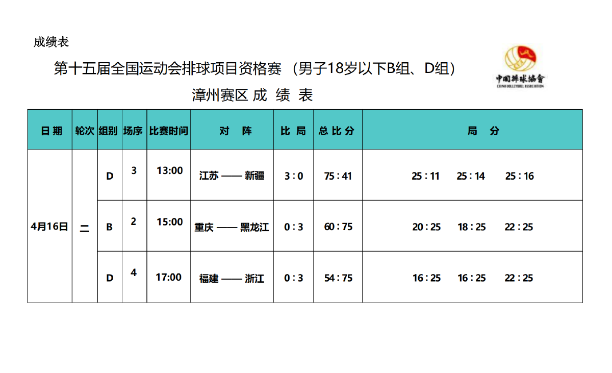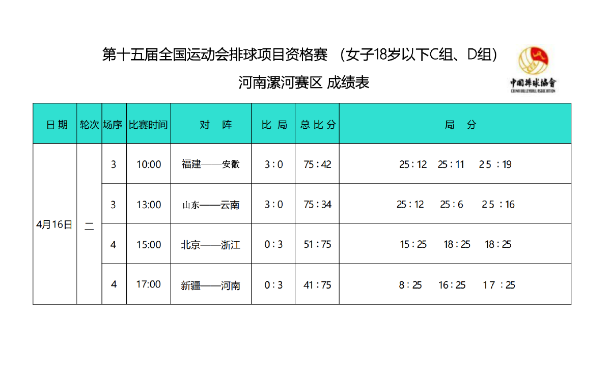 第十五届全国运动会排球项目资格赛18岁以下组3号公告