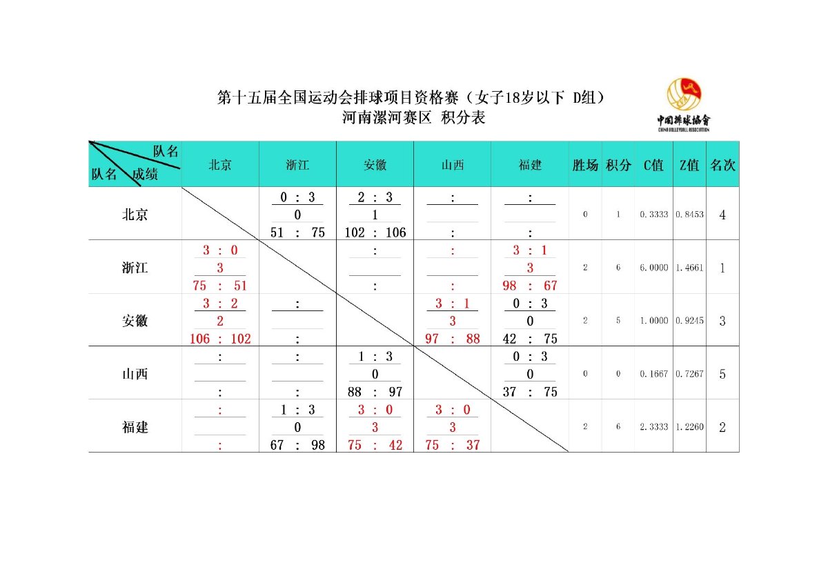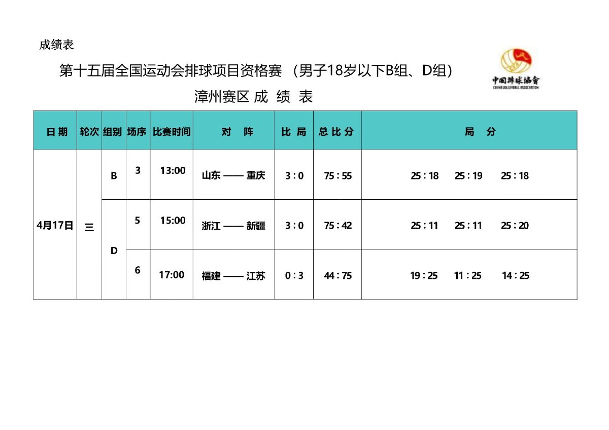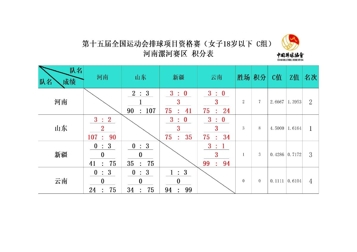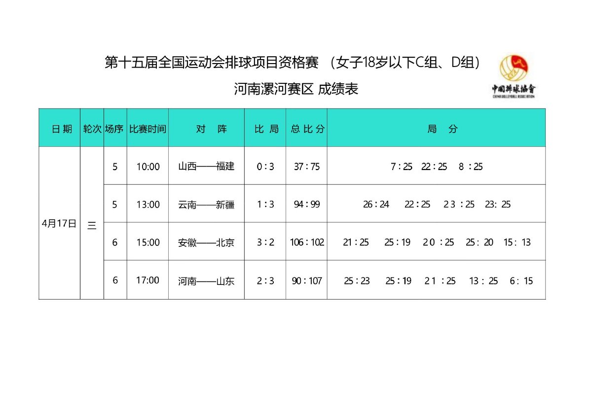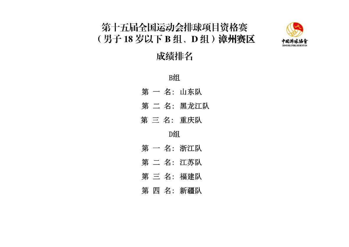 第十五届全国运动会排球项目资格赛18岁以下组4号公告