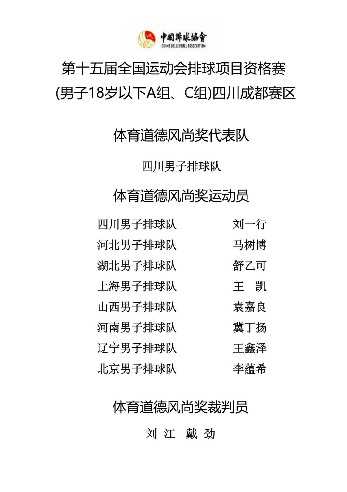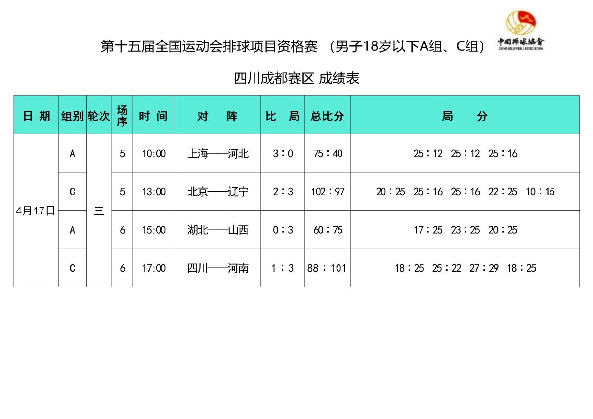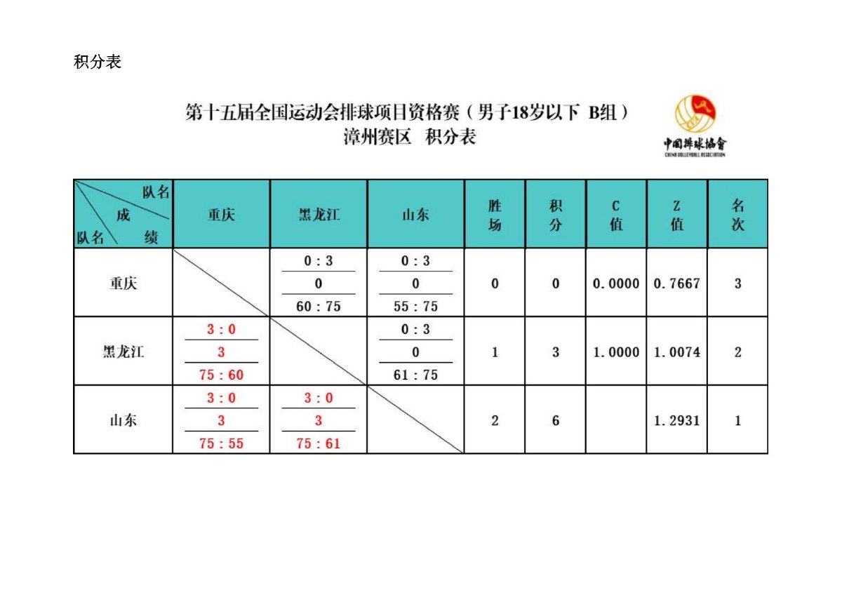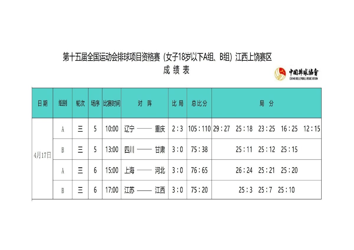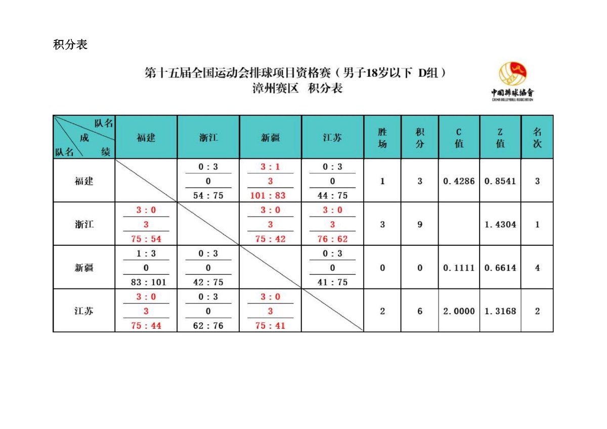 第十五届全国运动会排球项目资格赛18岁以下组4号公告