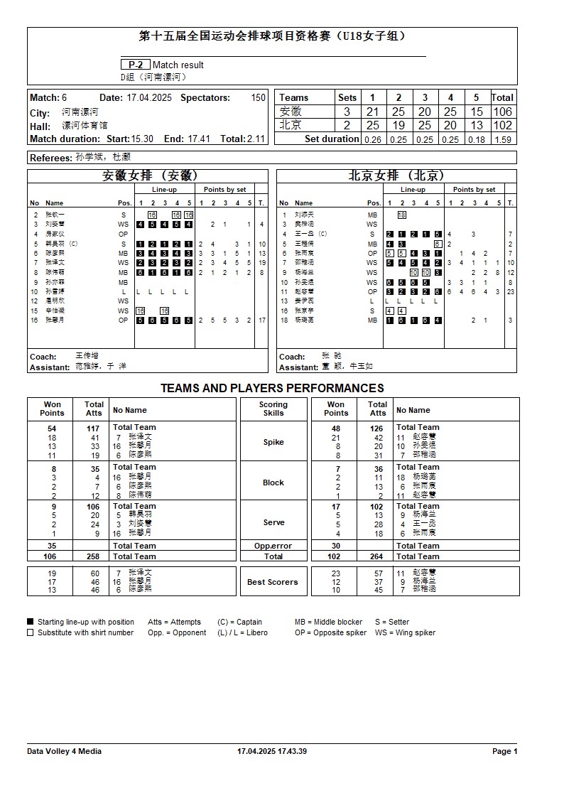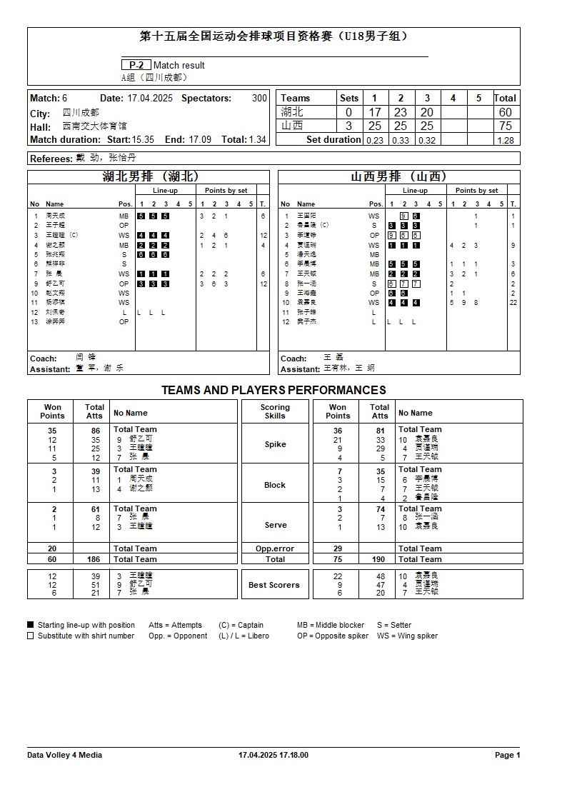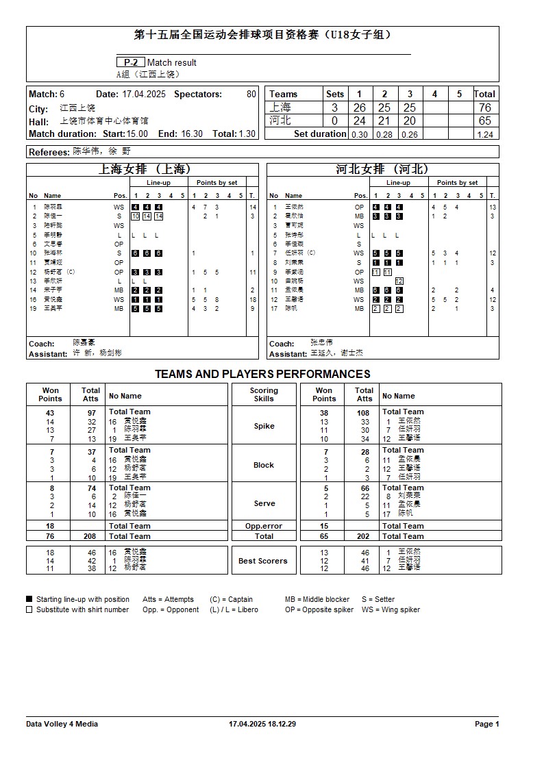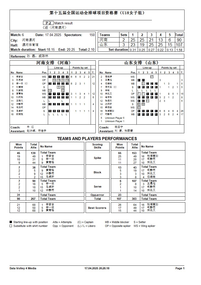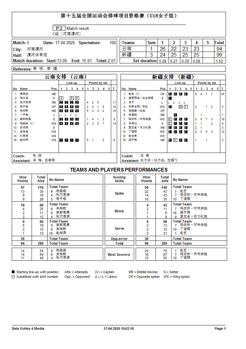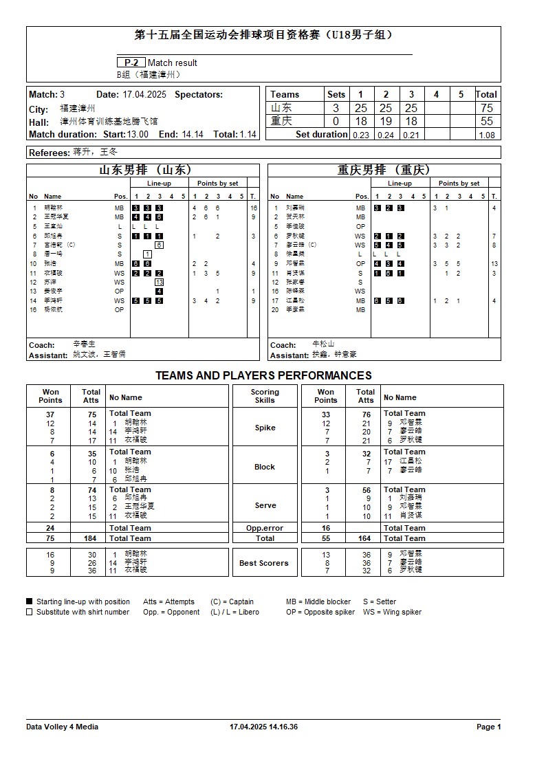 第十五届全国运动会排球项目资格赛18岁以下组4号公告