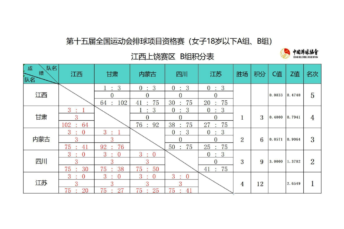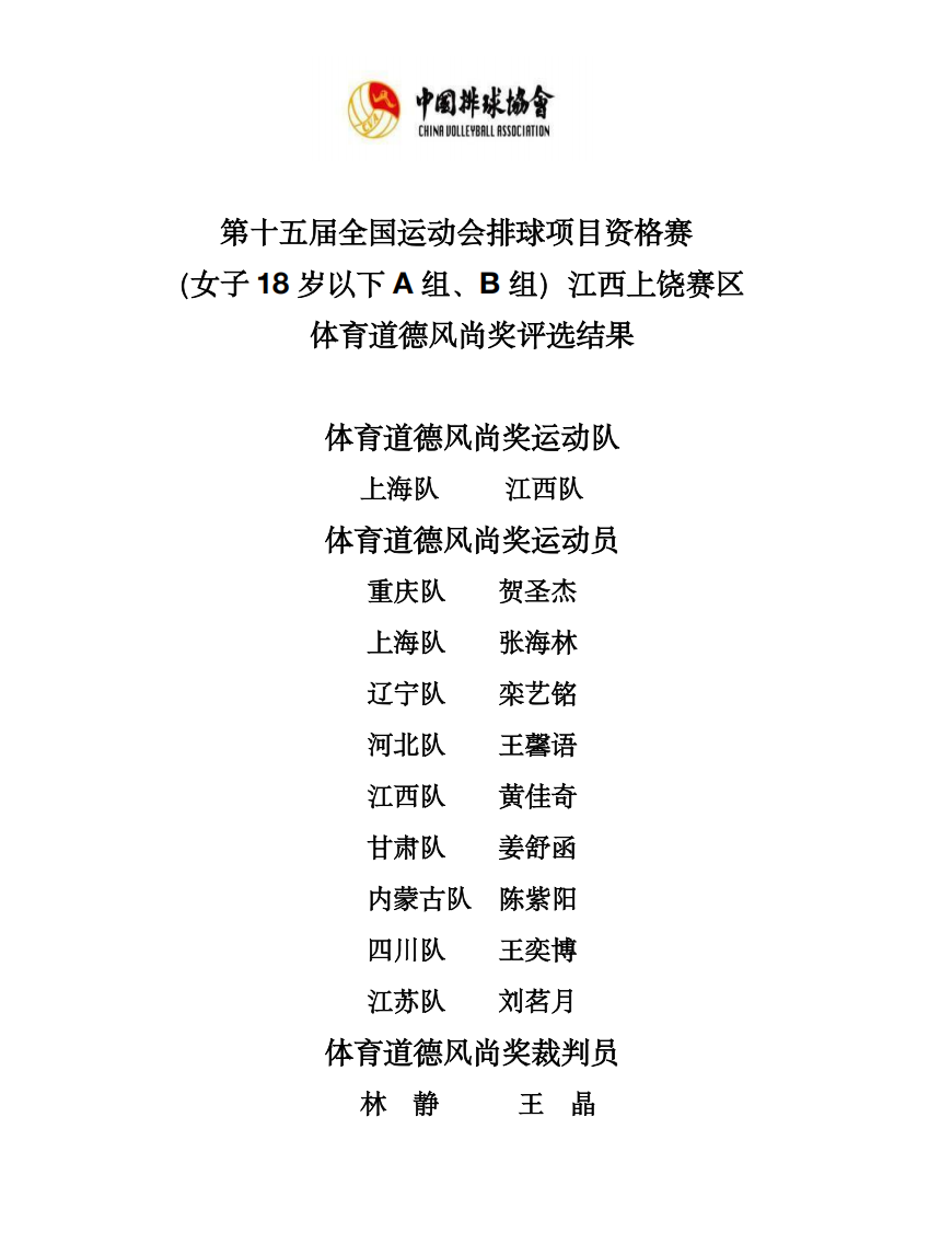 第十五届全国运动会排球项目资格赛18岁以下组6号公告