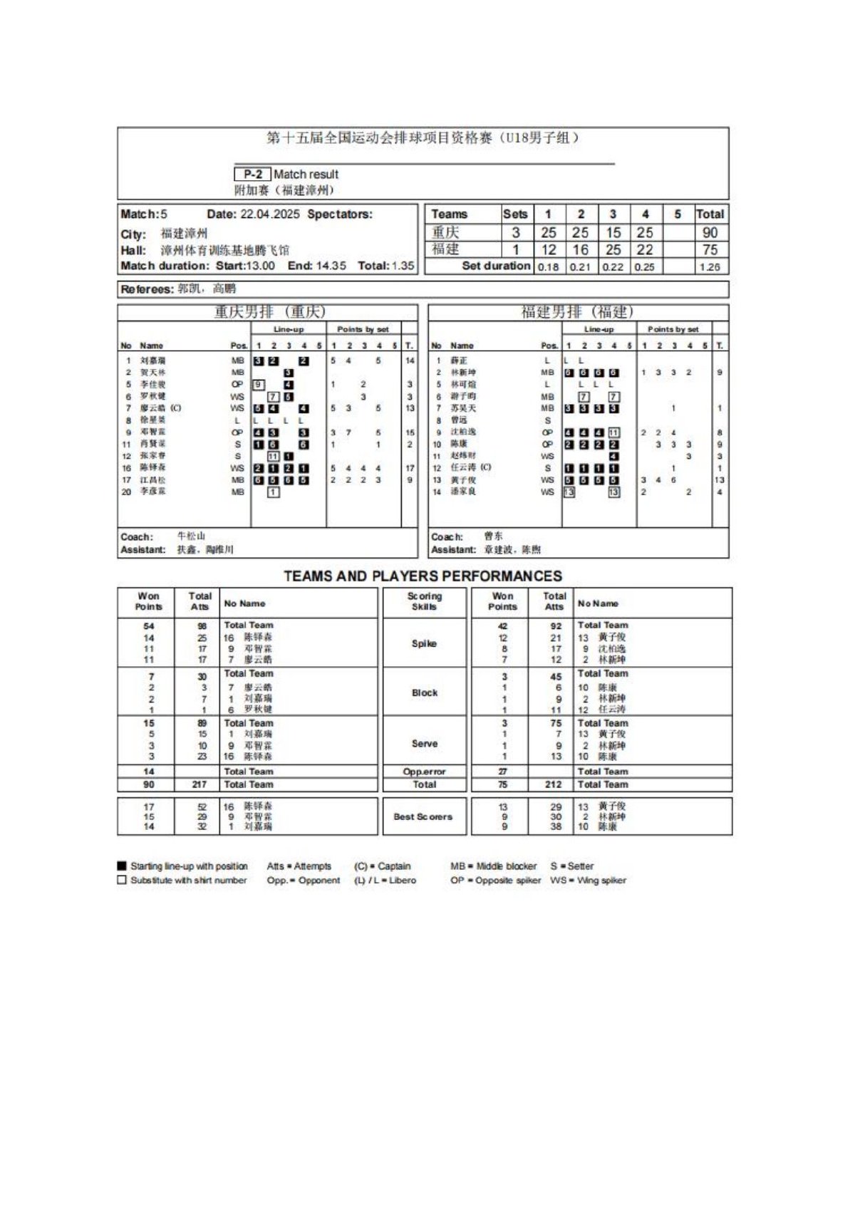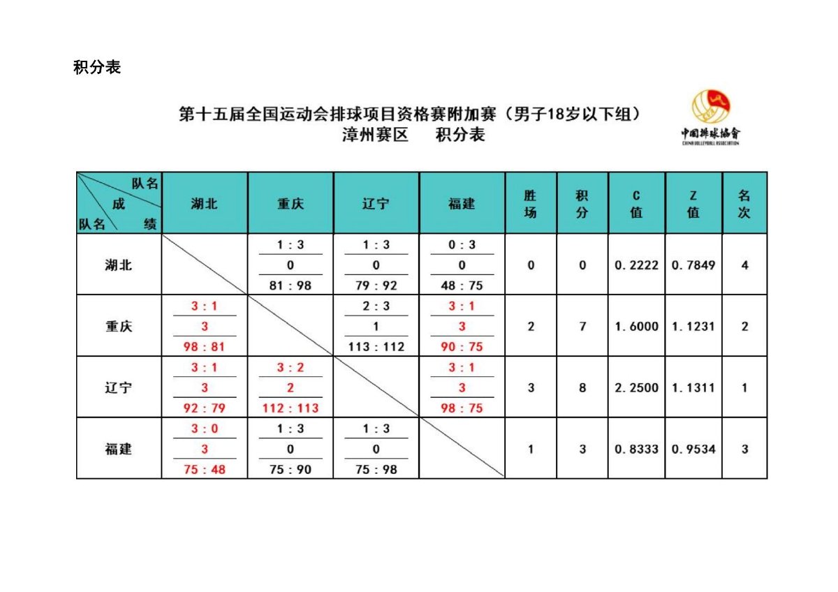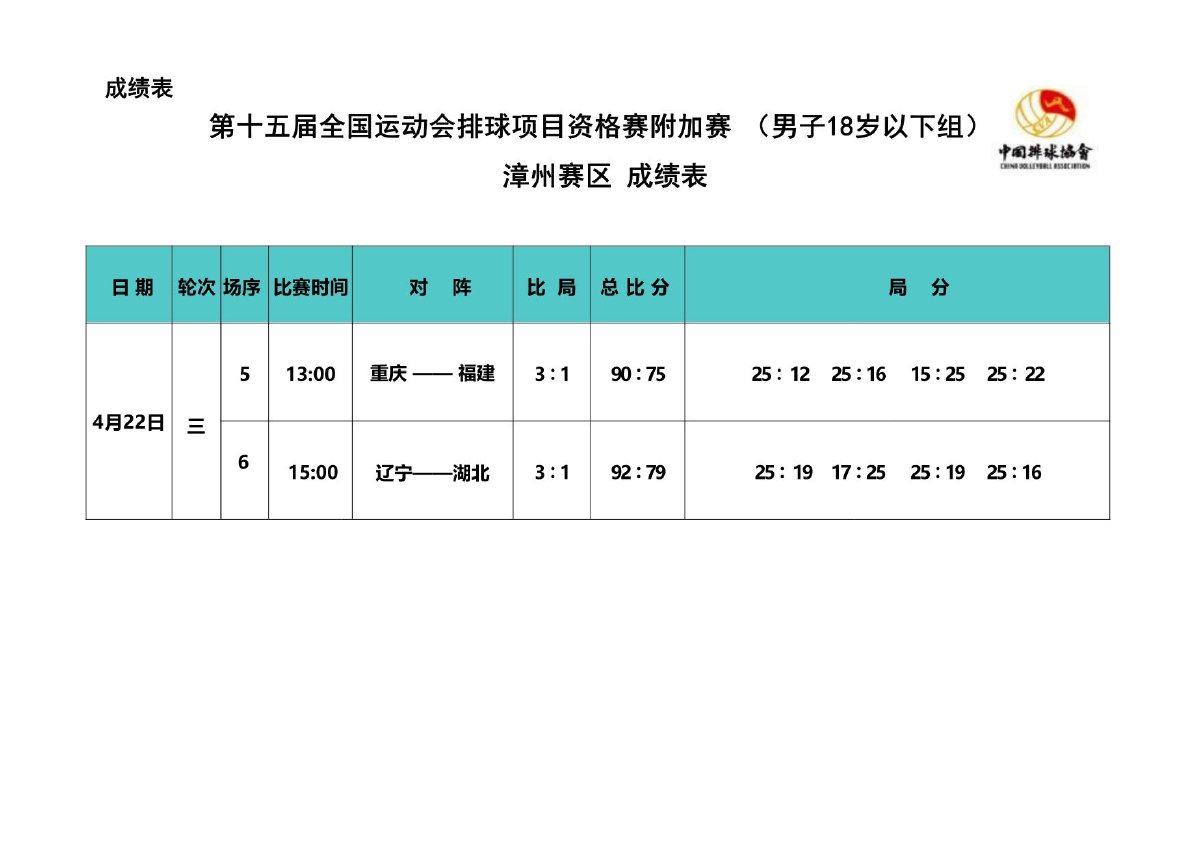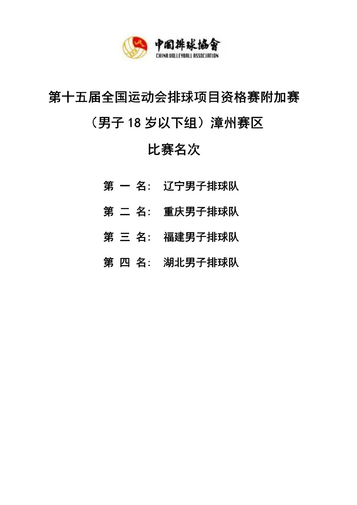 第十五届全国运动会排球项目资格赛附加赛男子18岁以下组4号公告