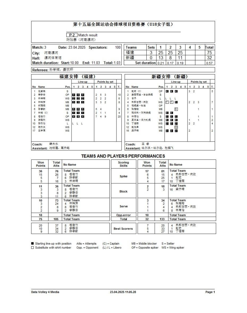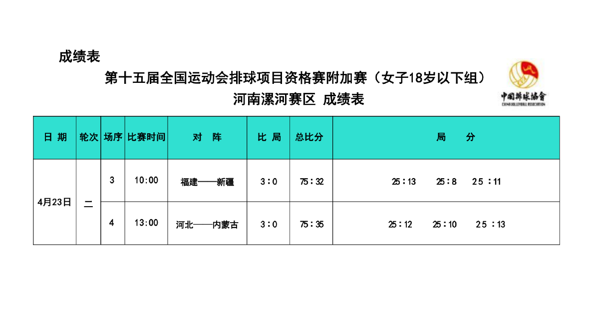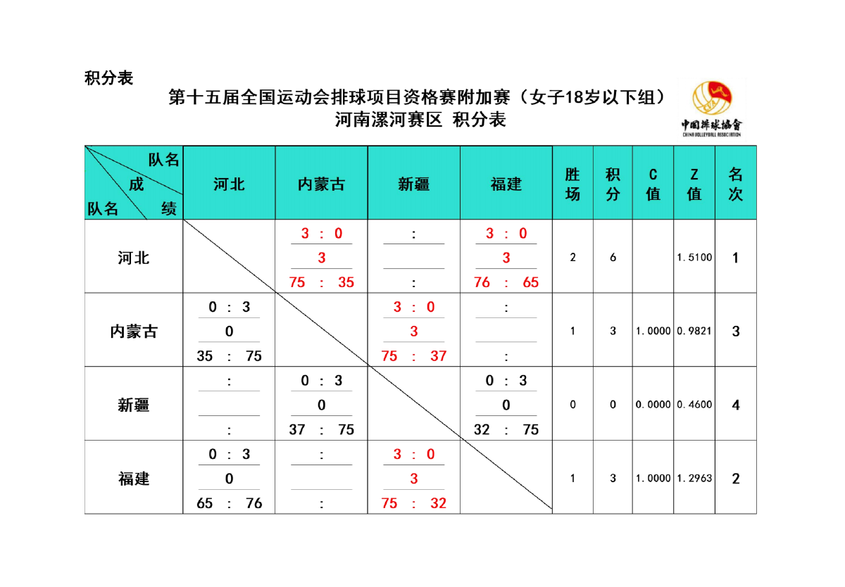 第十五届全国运动会排球项目资格赛附加赛女子18岁以下组3号公告