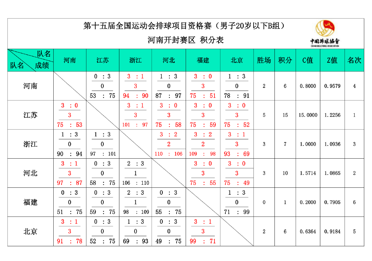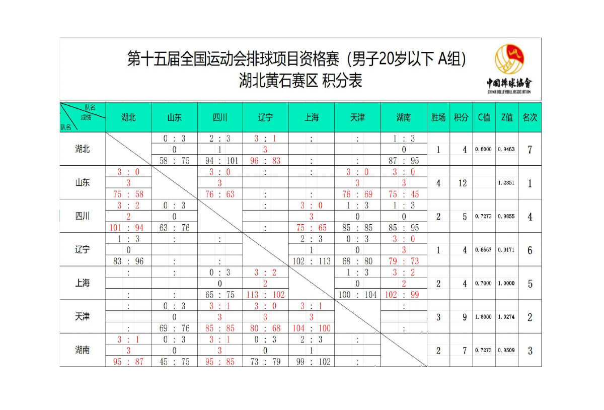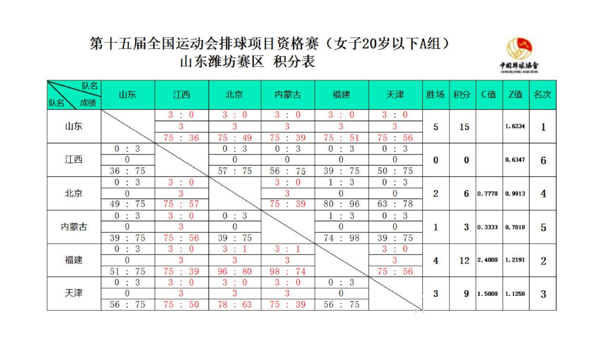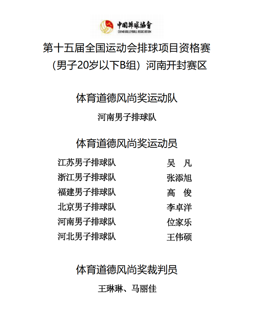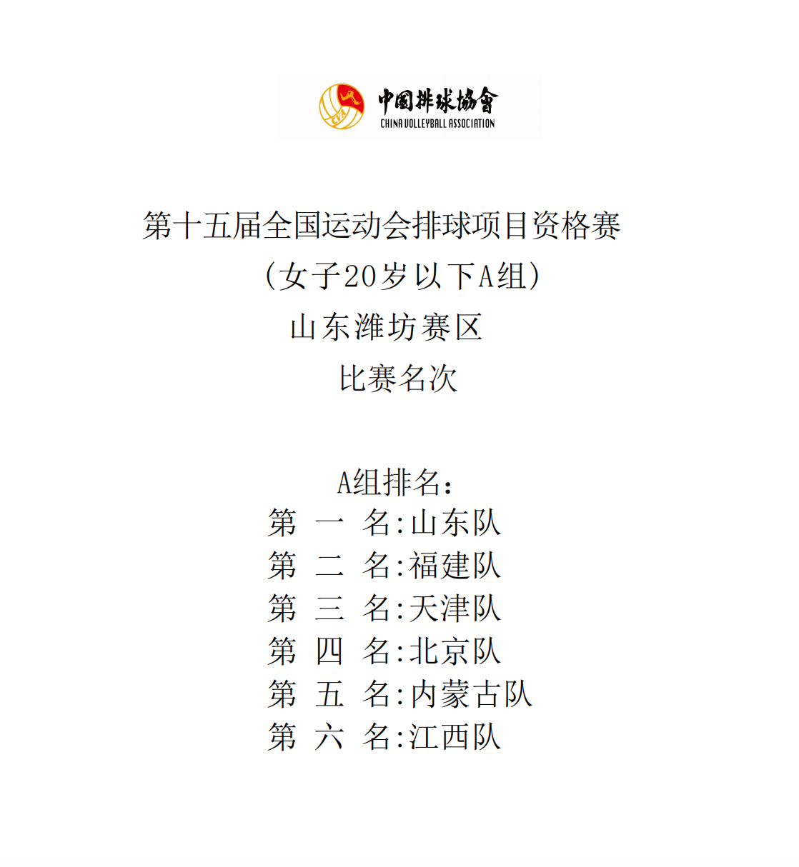 第十五届全国运动会排球项目资格赛20岁以下组7号公告