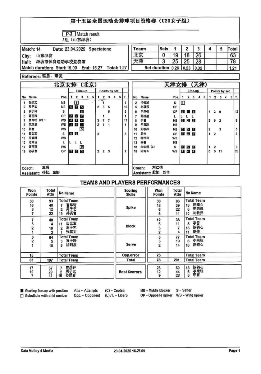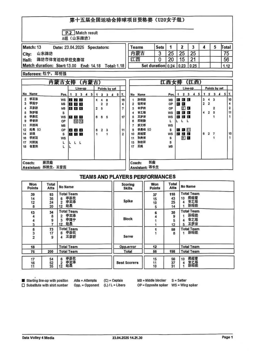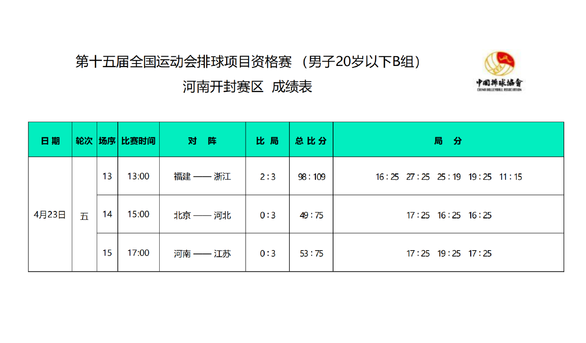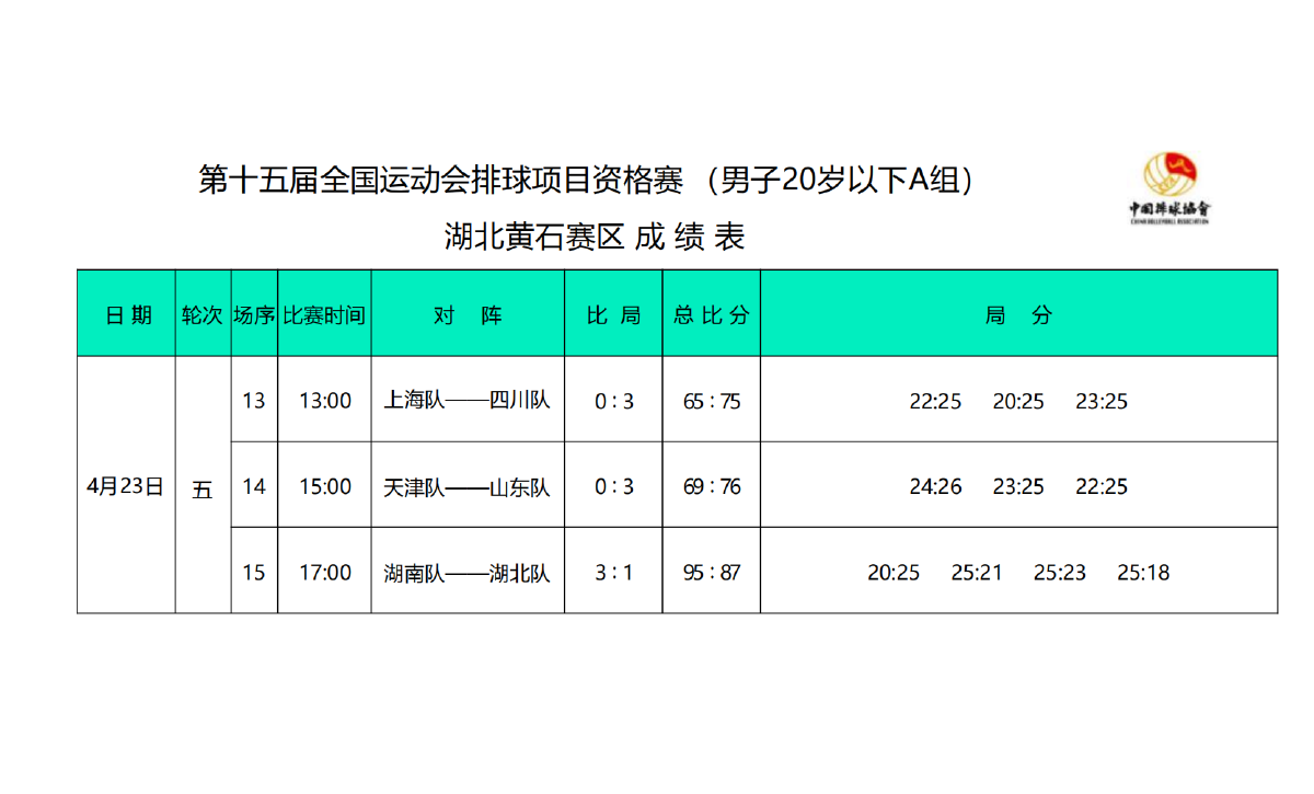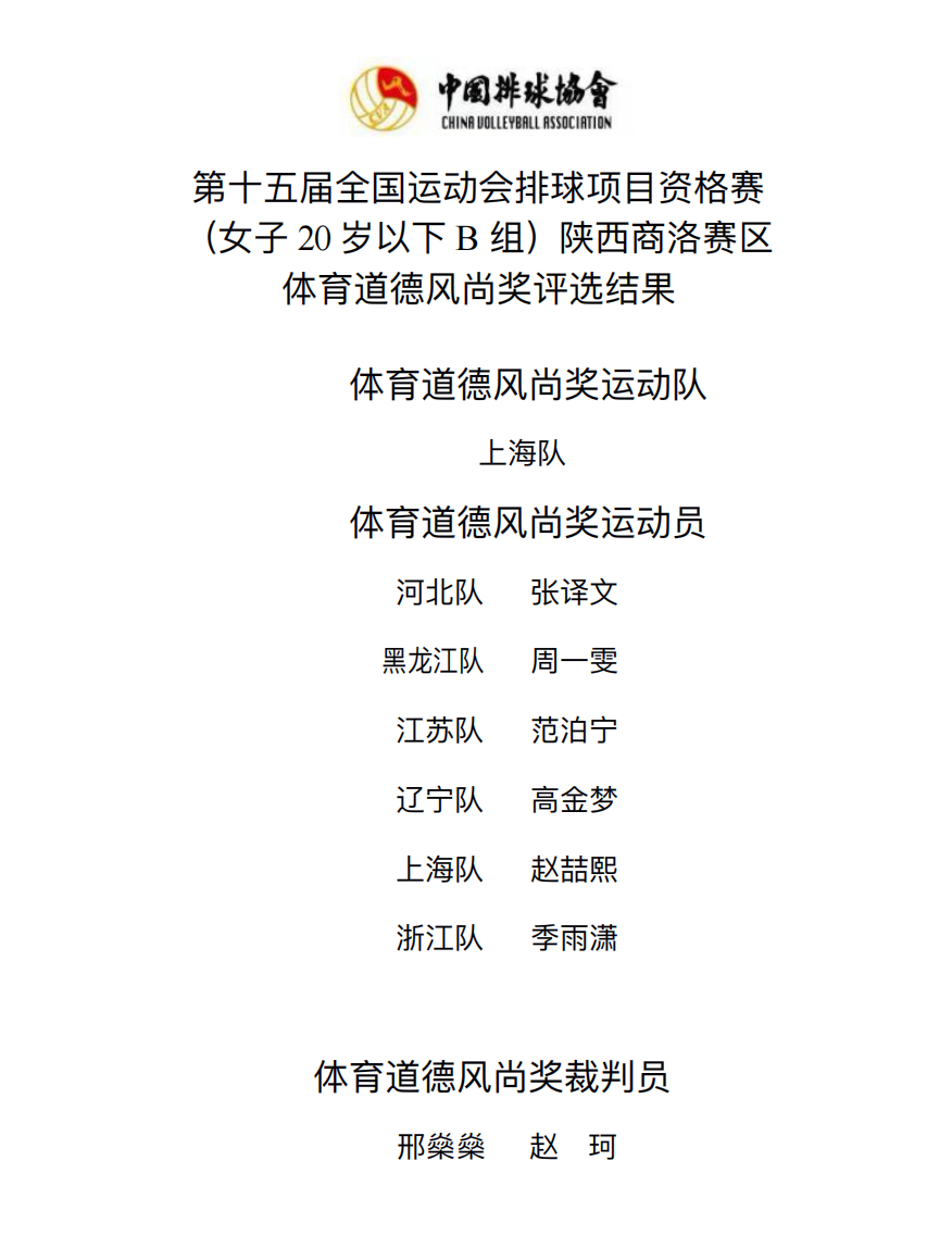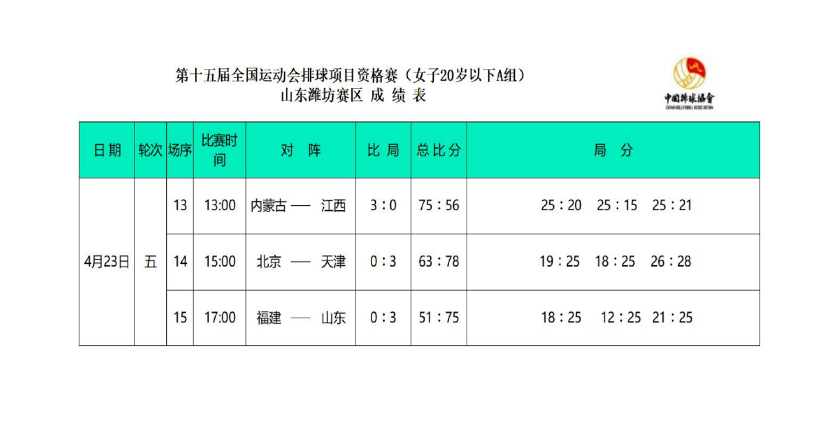第十五届全国运动会排球项目资格赛20岁以下组7号公告