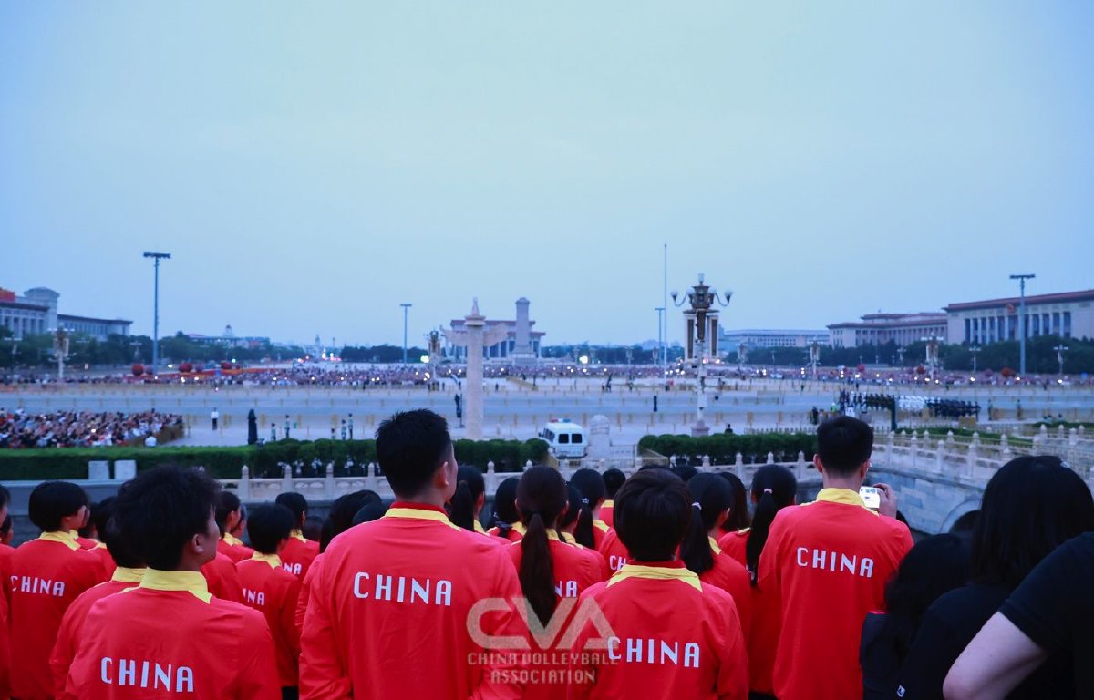 为深化爱国主义教育,凝聚奋进力量,国家女排、U16国家女排全体成员以及国家体育总局排球中心全体工作人员于2025年5月22日清晨前往天安门广场观礼升国旗仪式。