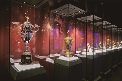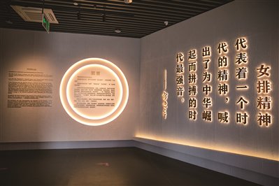 十次世界冠军纪念金章、排球运动纪念徽章、数代中国女排姑娘和教练员们的签名排球所组成的奥运五环、奥运会冠军领奖服、国手印模墙……展厅中,一件件珍贵的展品和影像,勾勒出了中国女排从筚路蓝缕到一次次登上世界巅峰的宏伟画卷。