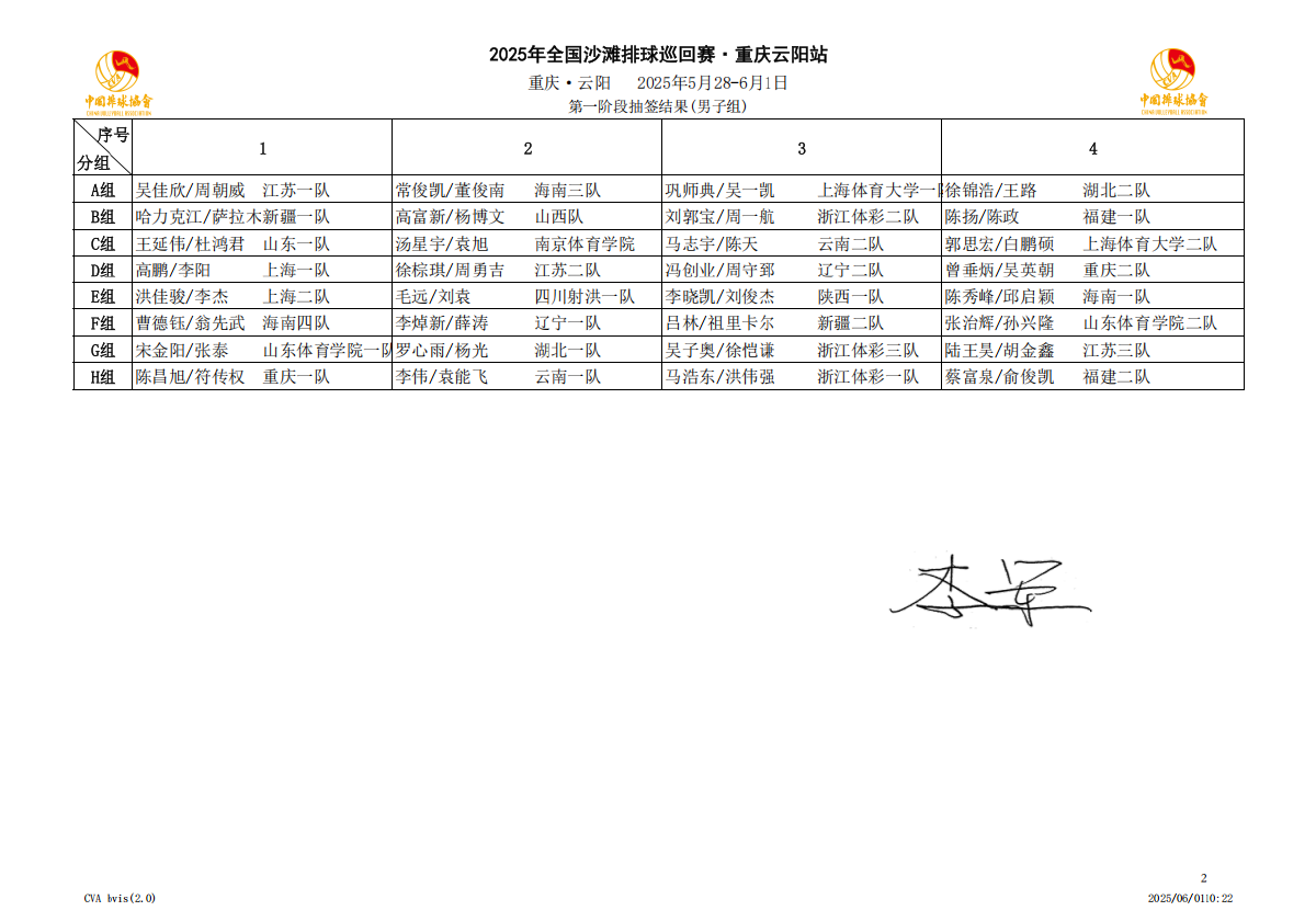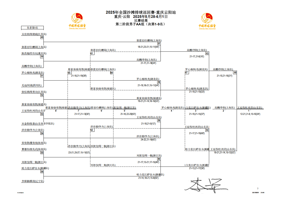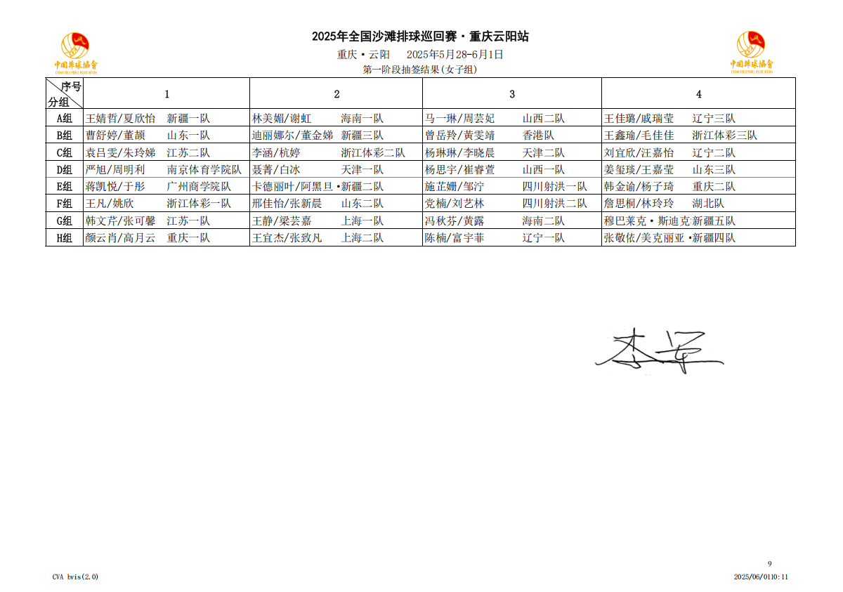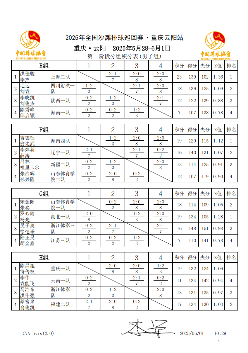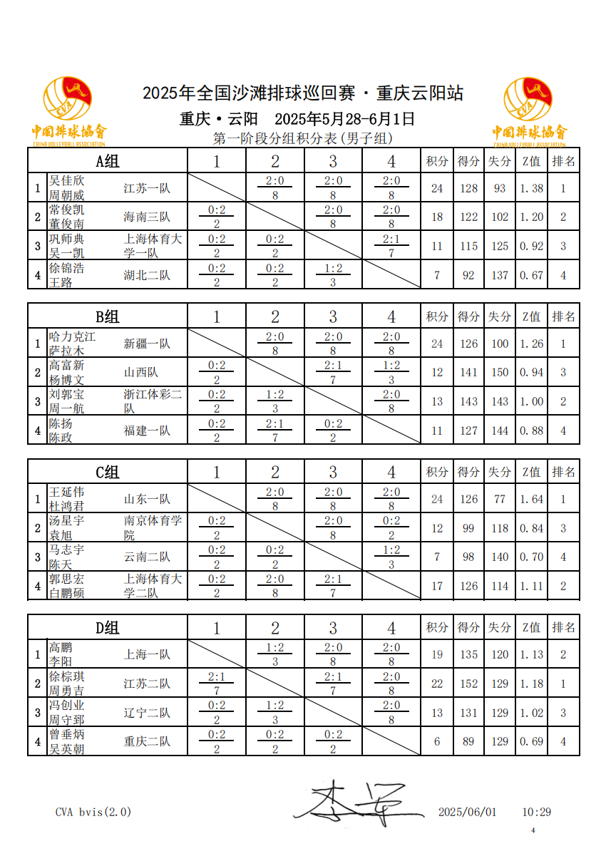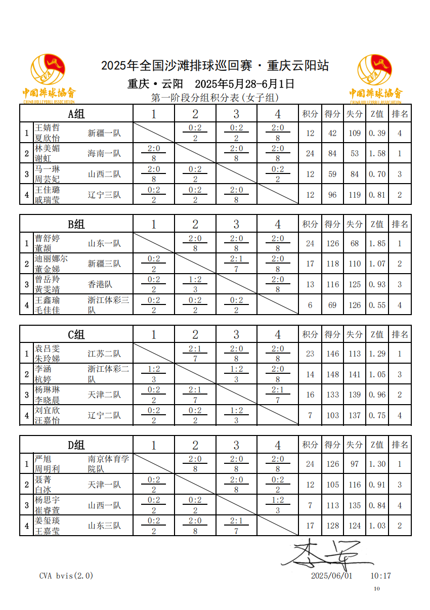 2025年全国沙滩排球巡回赛重庆云阳站成绩