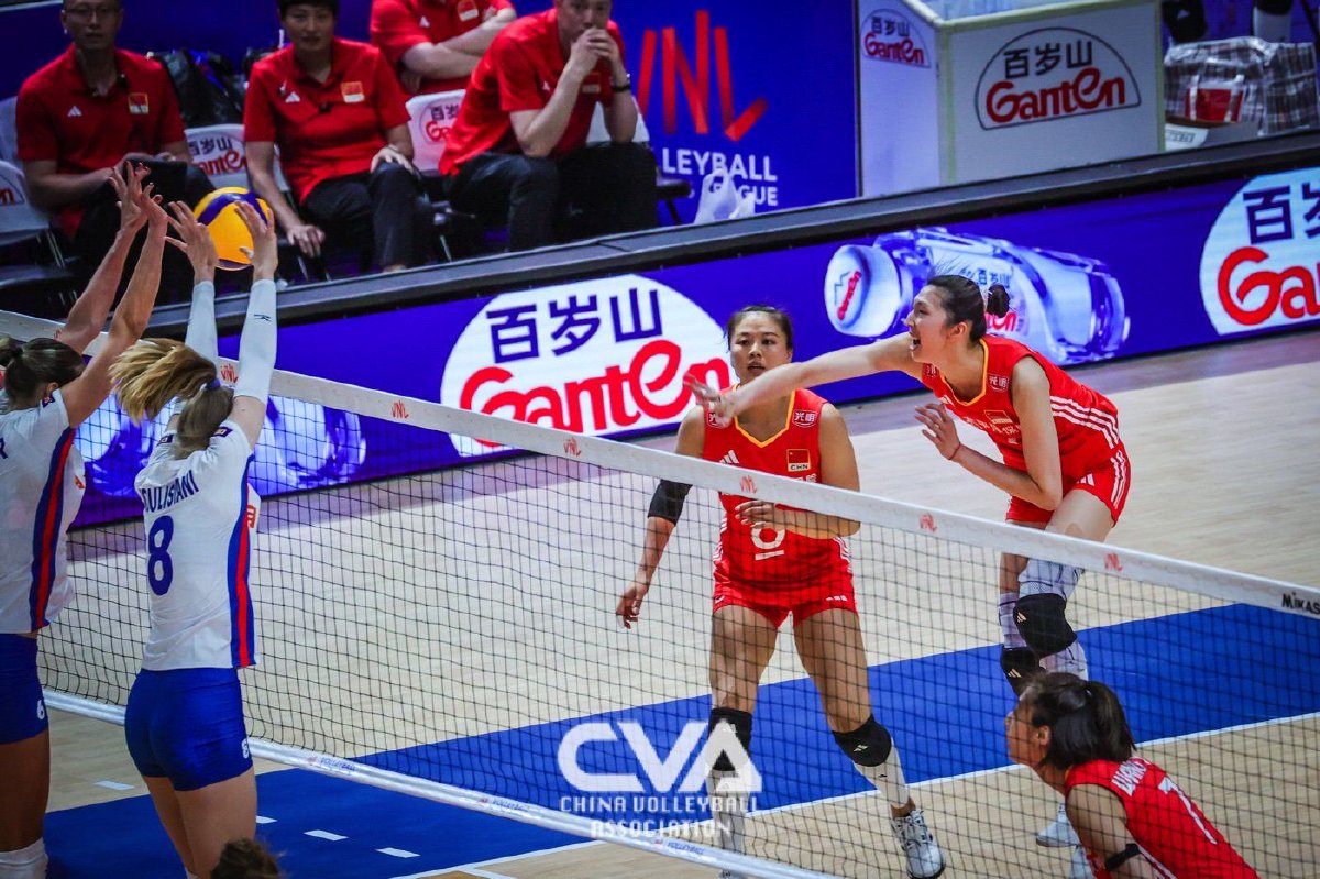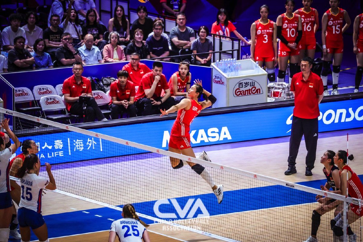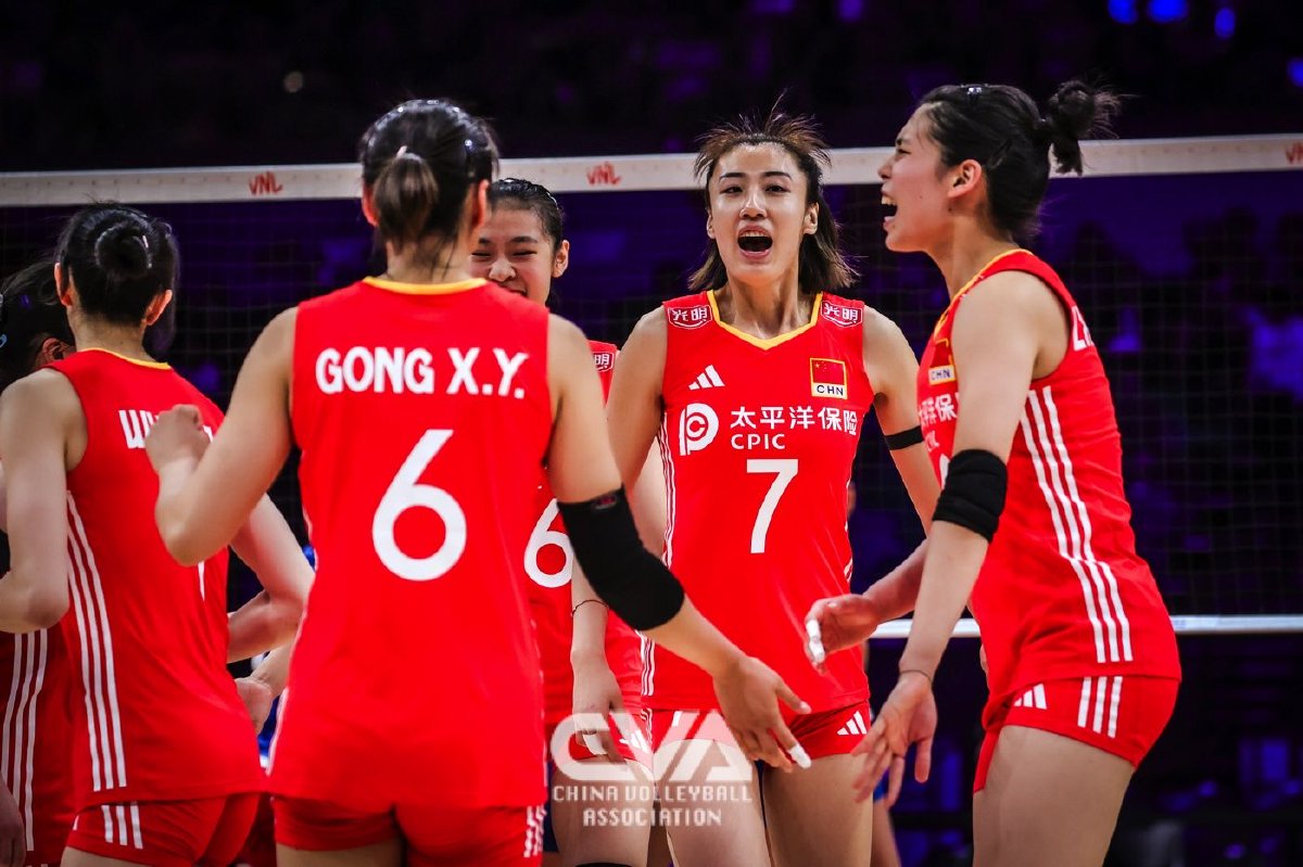 6月18日晚,2025年世界女排联赛中国香港站在启德体艺馆结束首日的争夺。东道主中国女排3比1战胜捷克女排,四局比分为29比27、23比25、25比15、25比22。