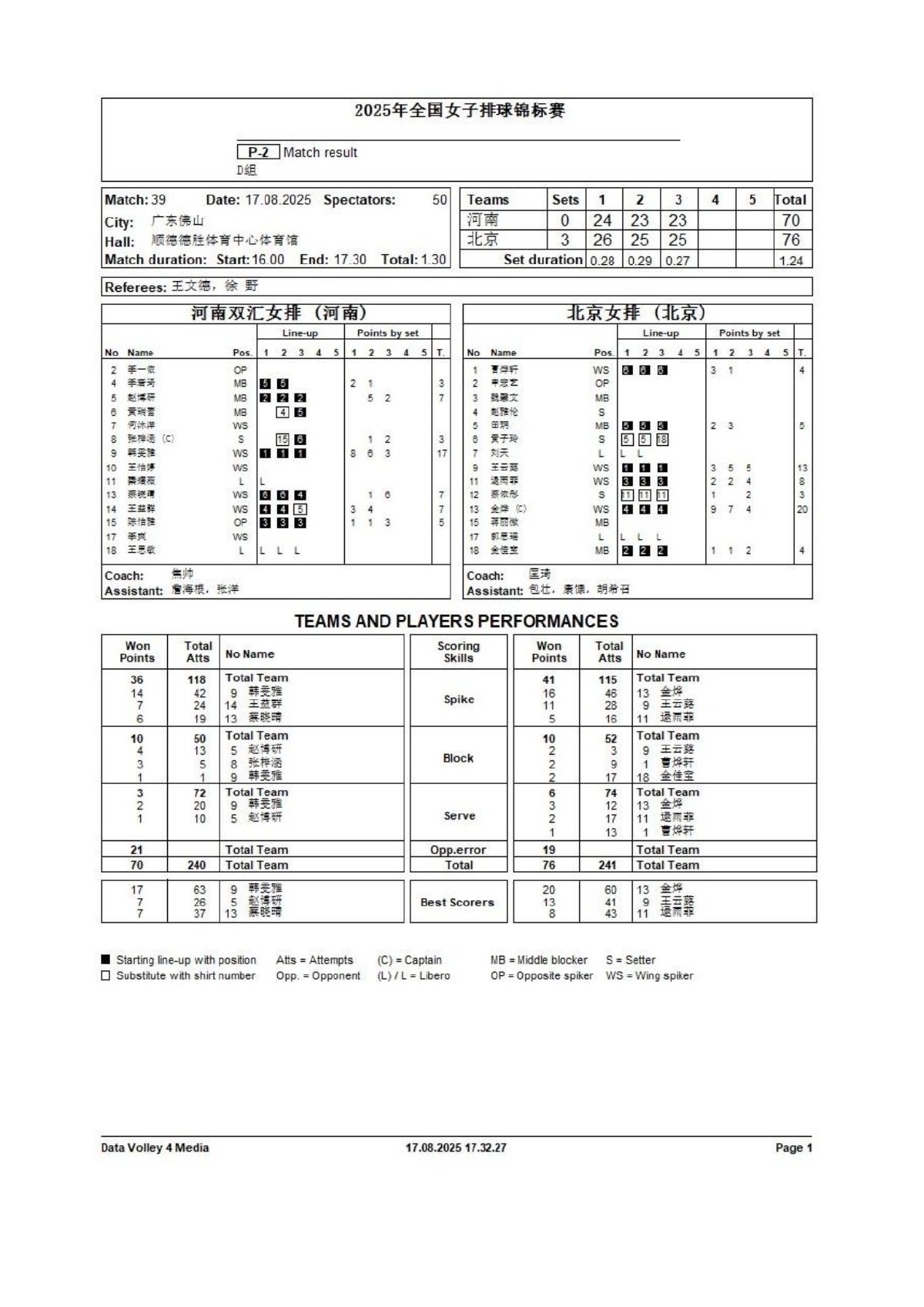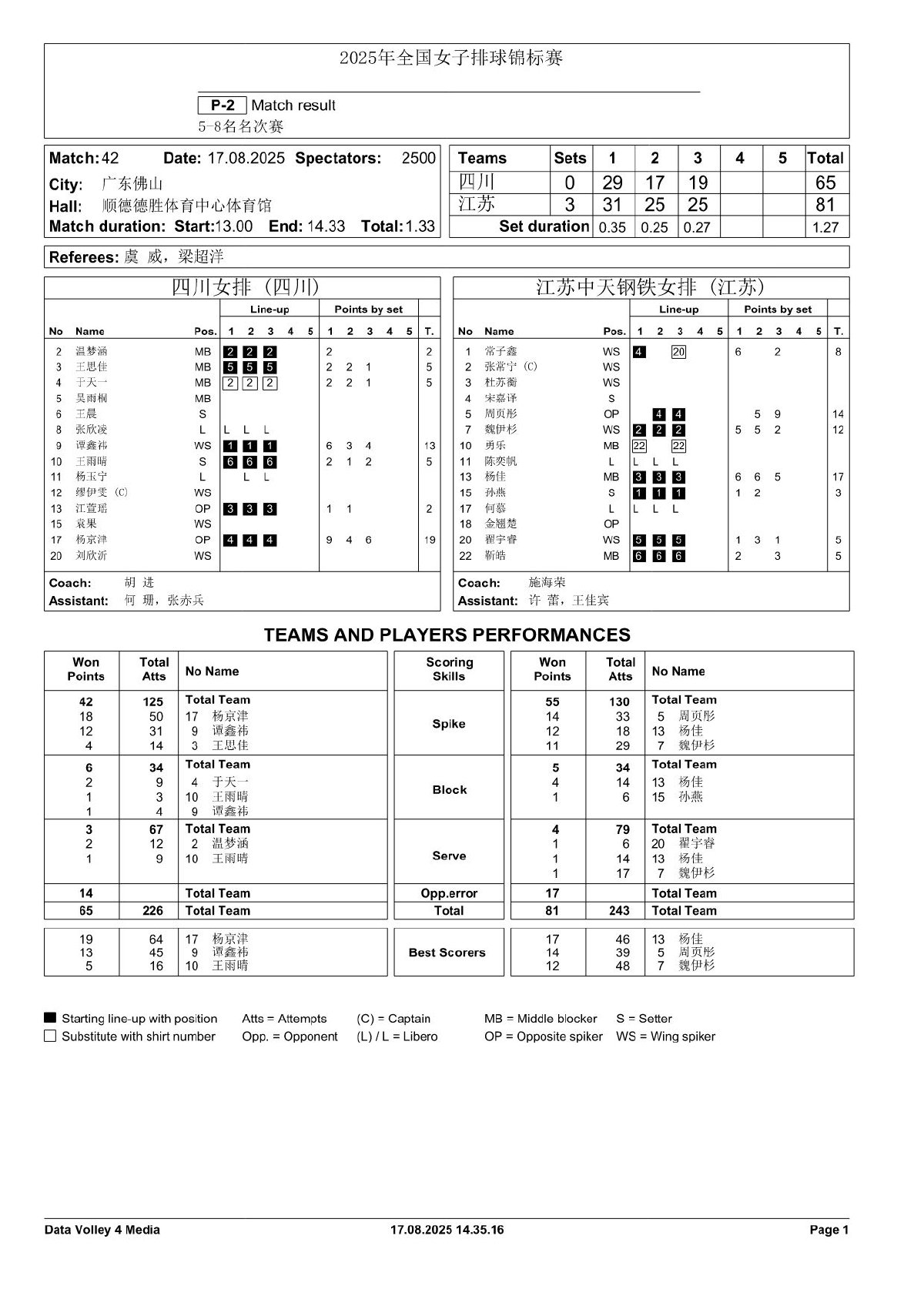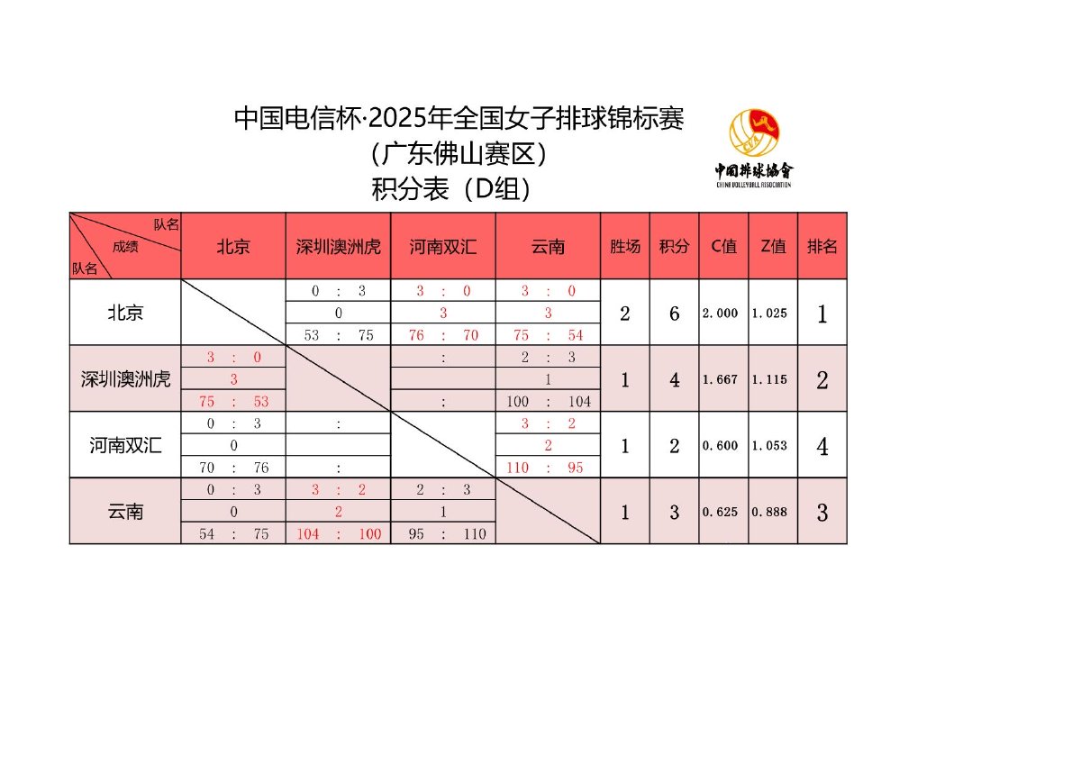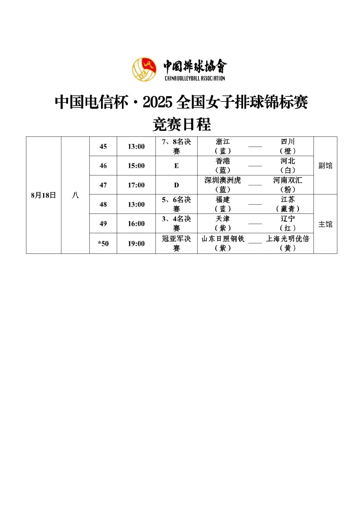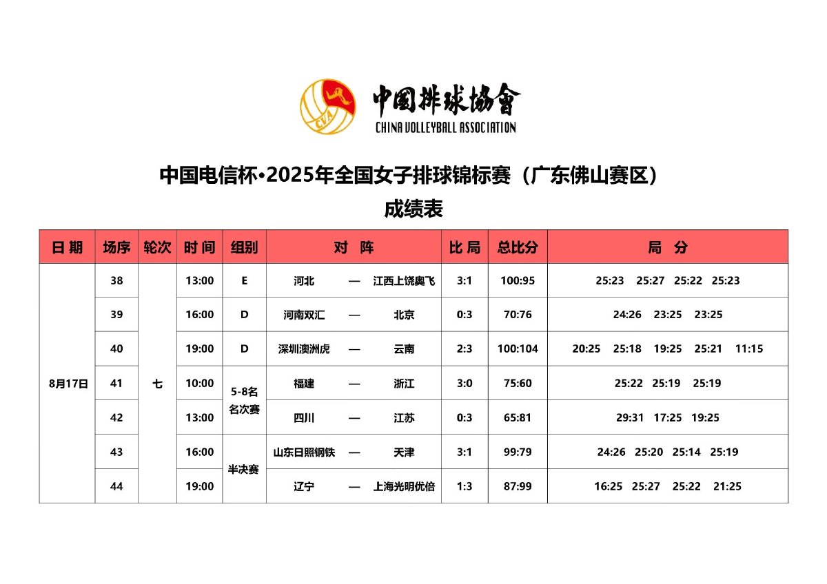 2025年全国女子排球锦标赛8号公告