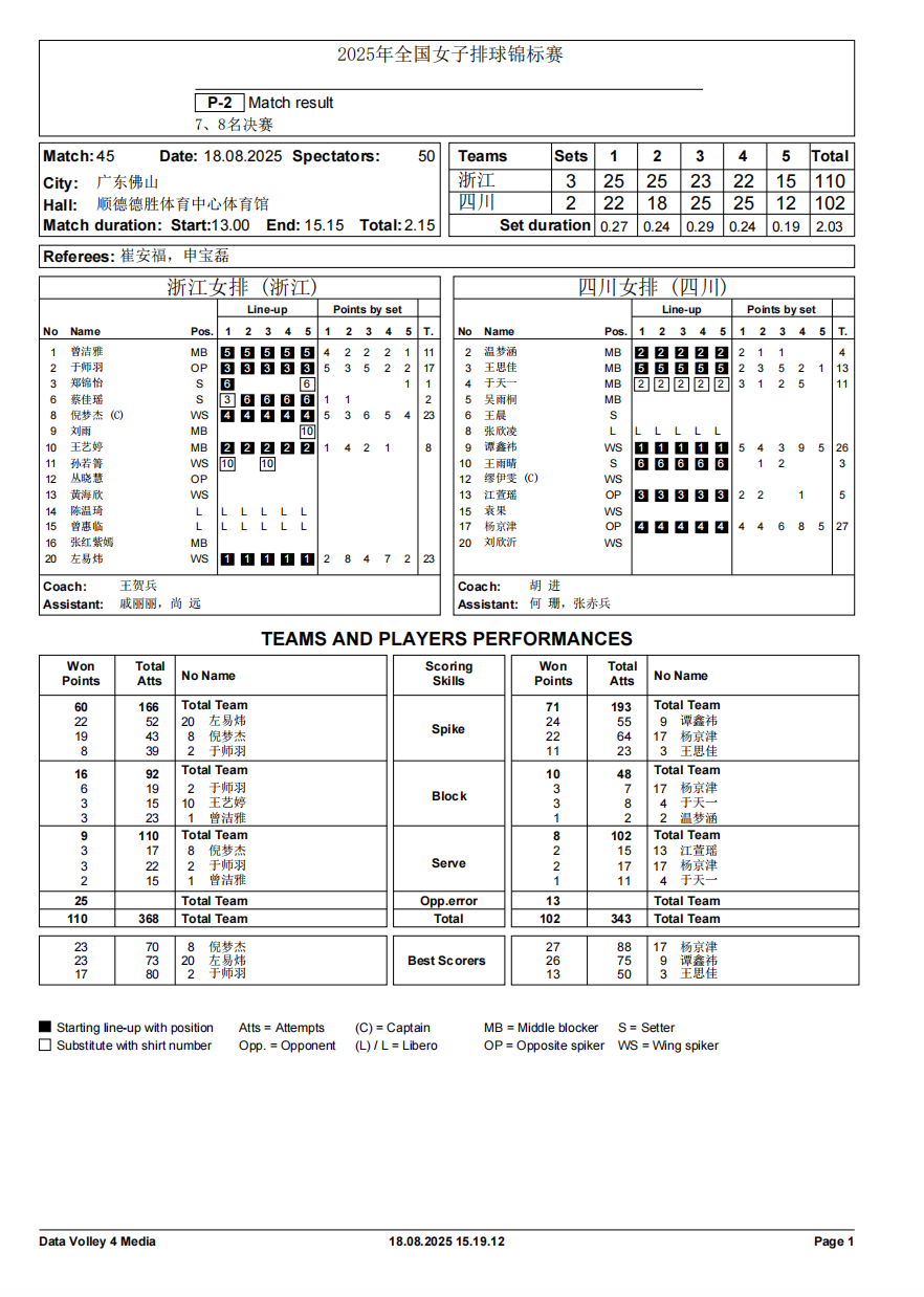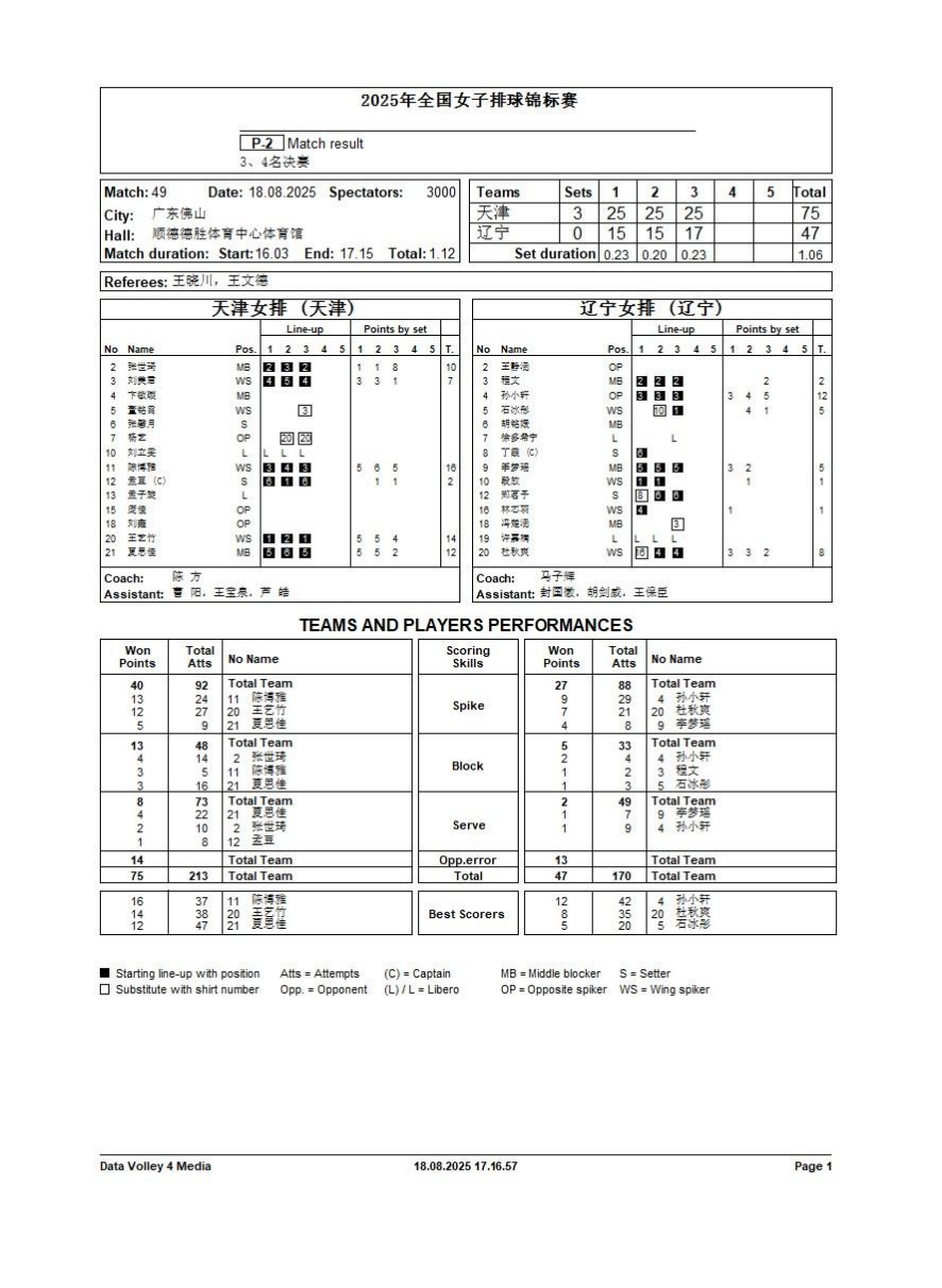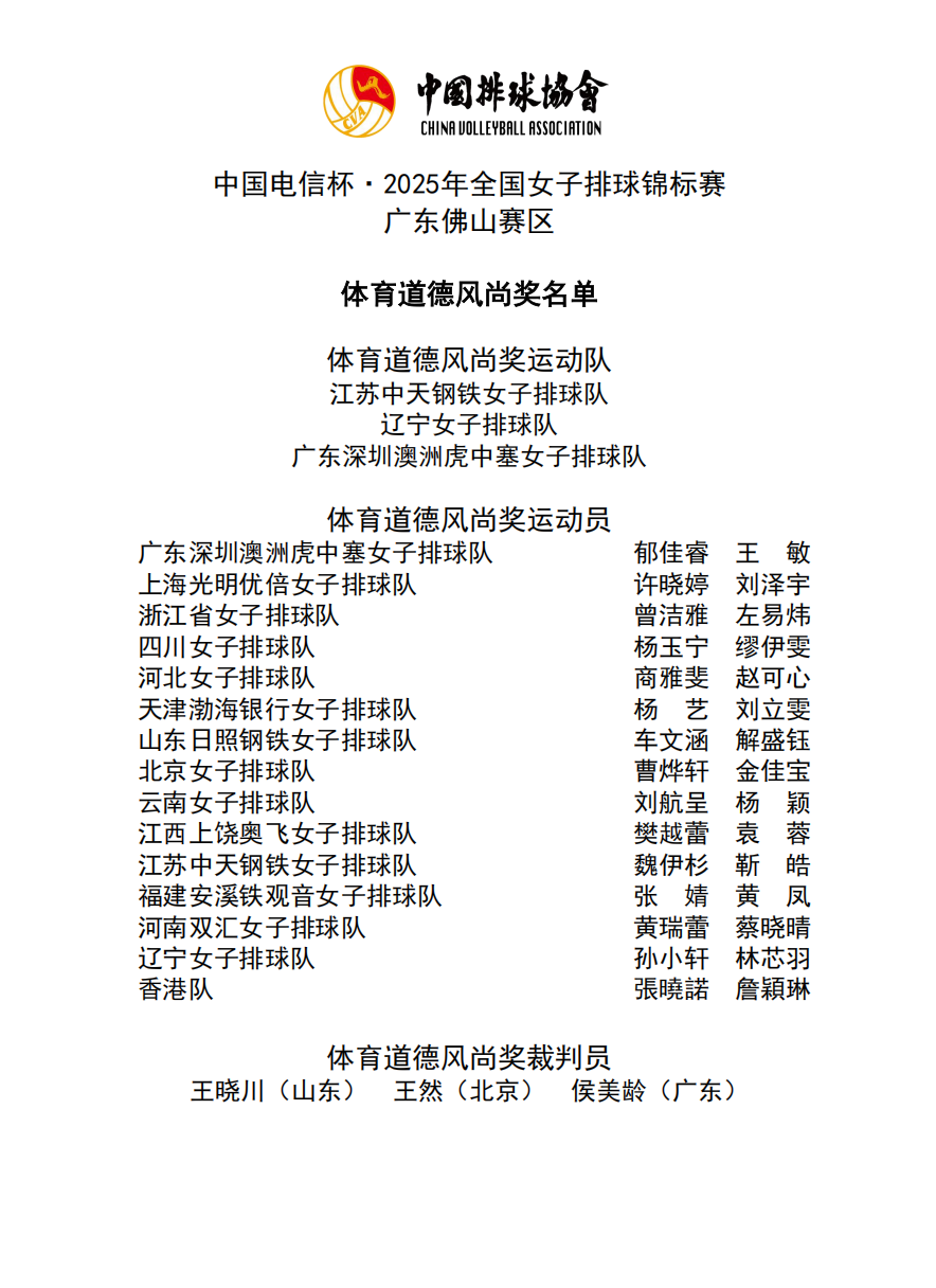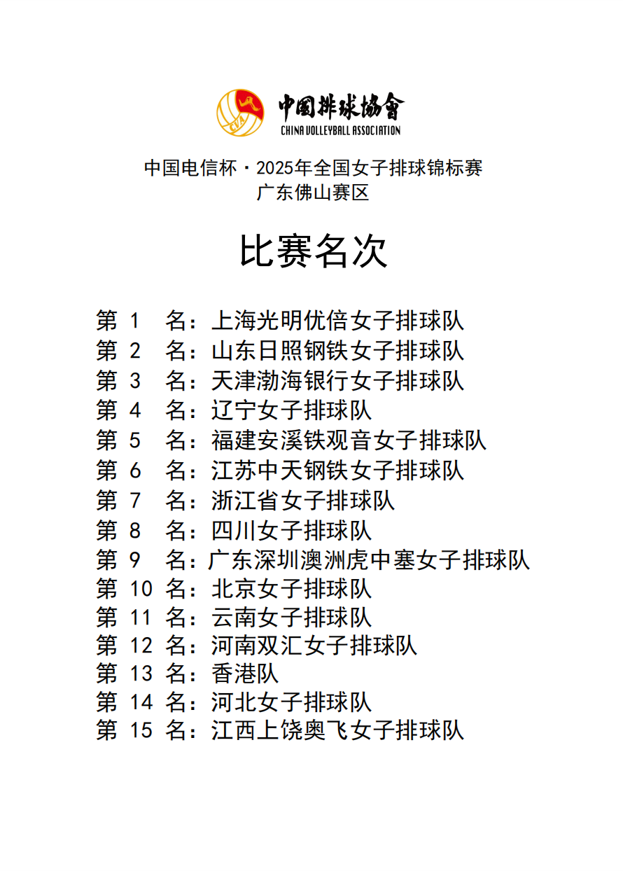 2025年全国女子排球锦标赛9号公告