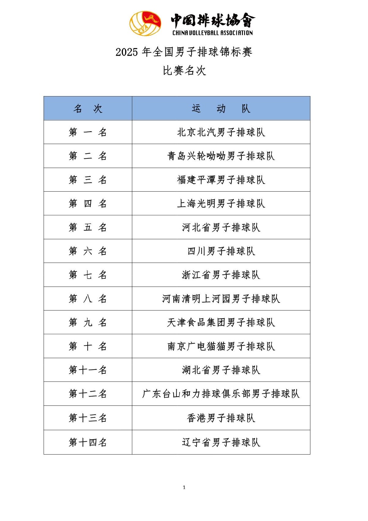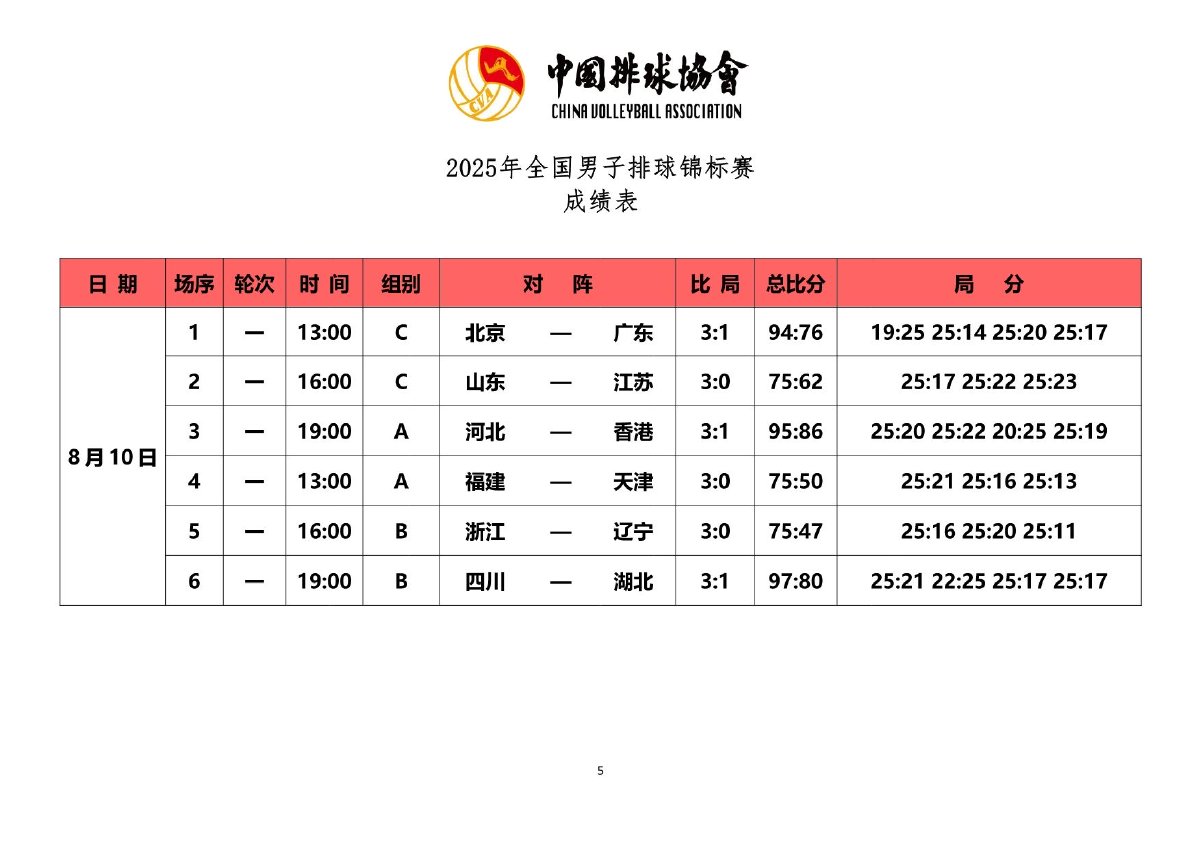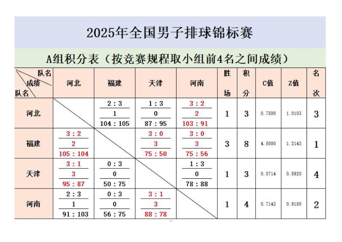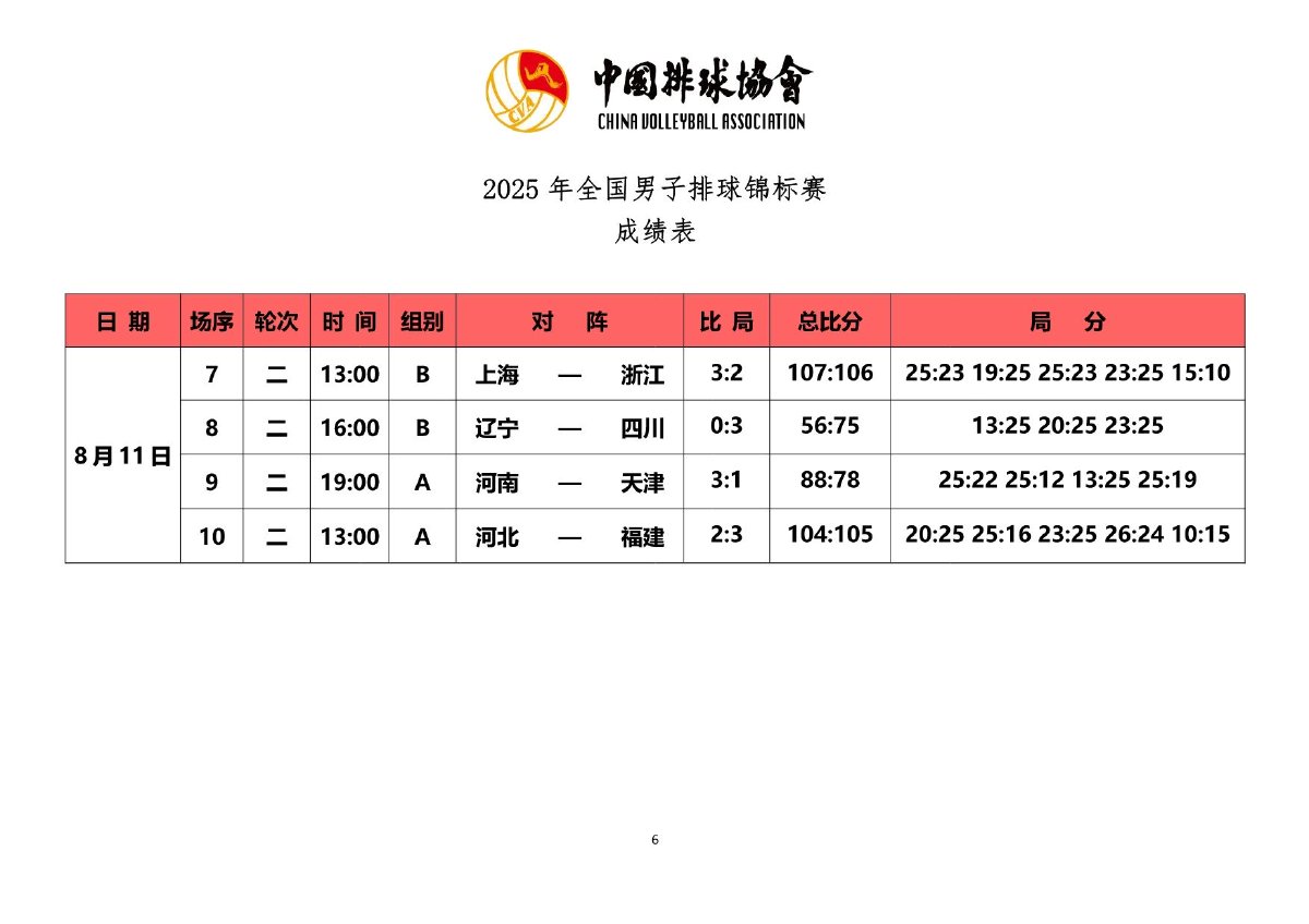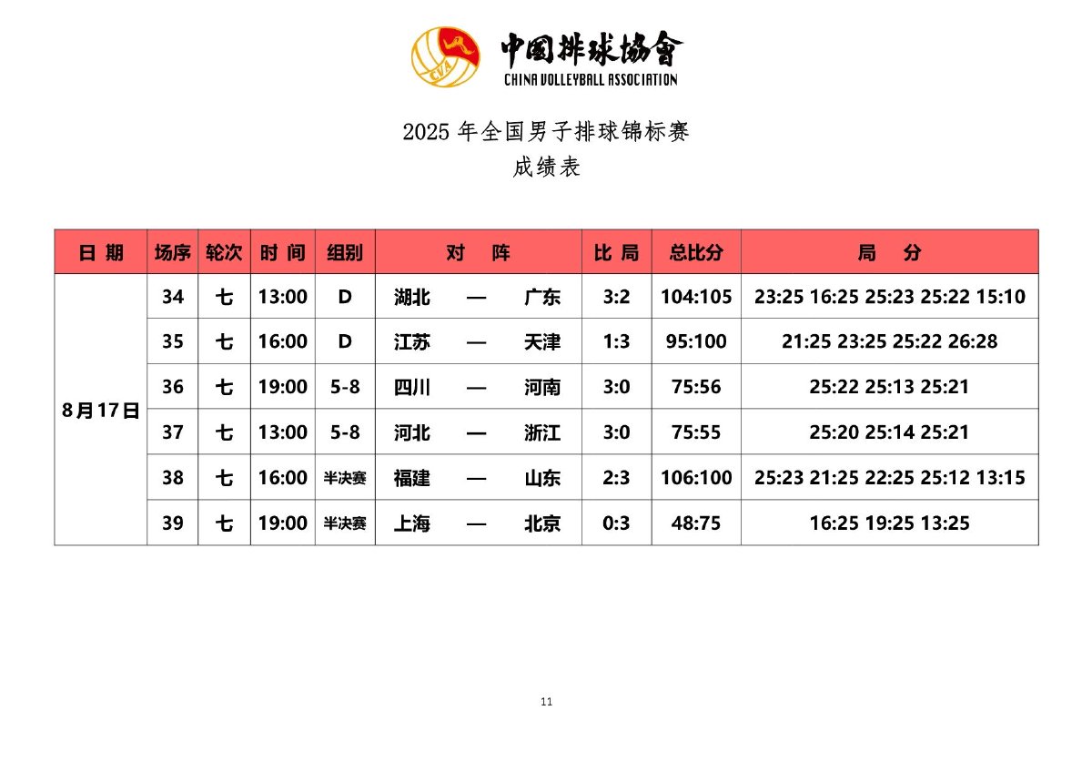 2025年全国男子排球锦标赛成绩