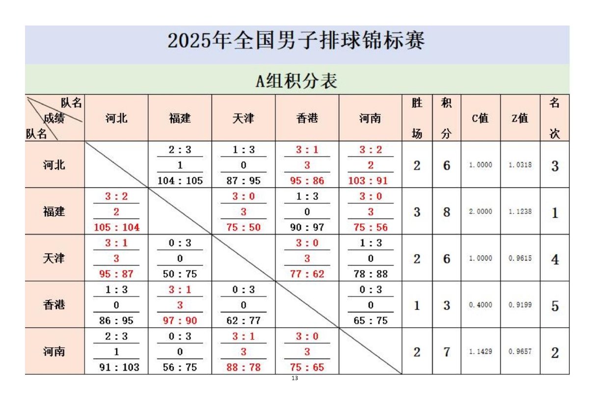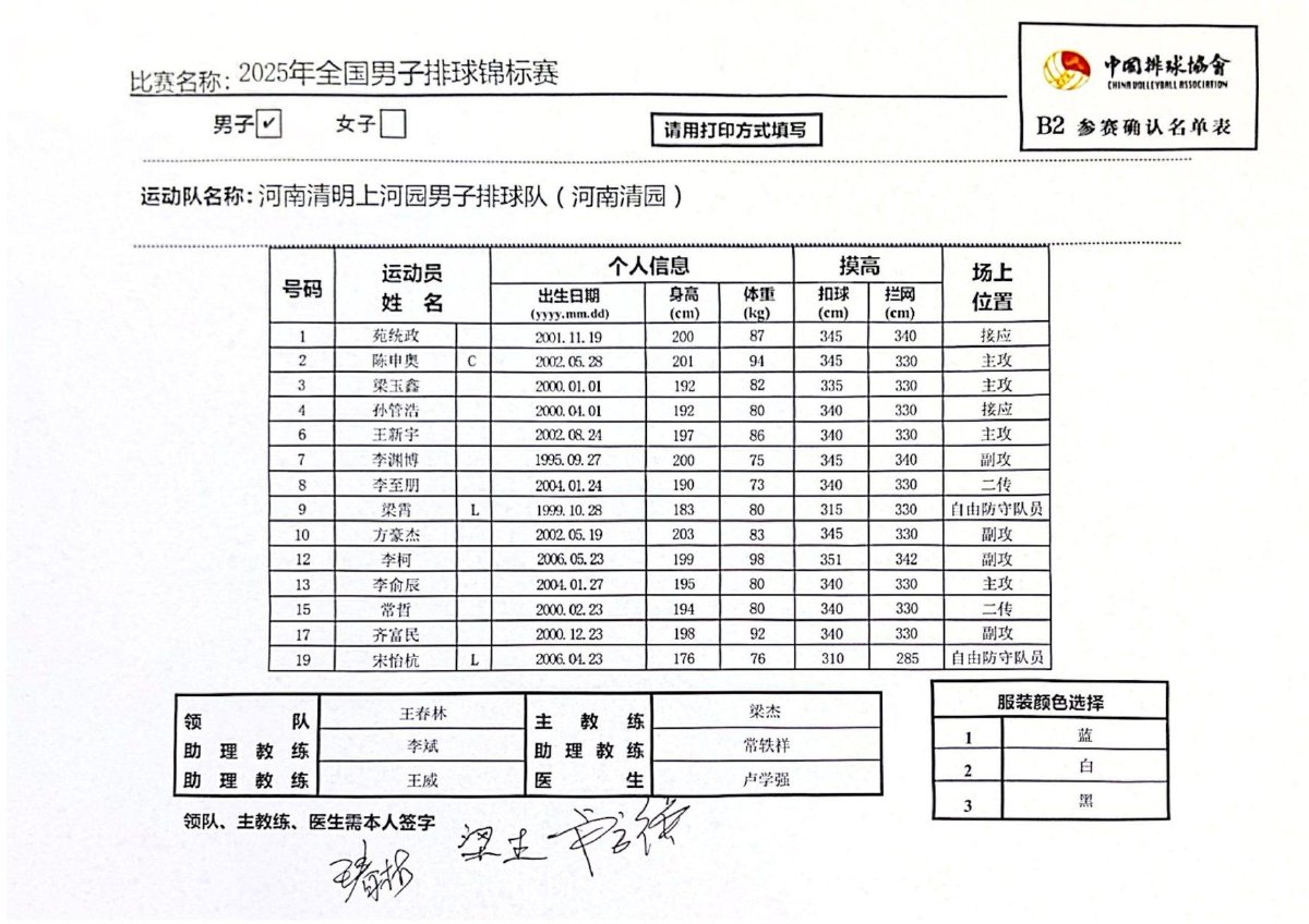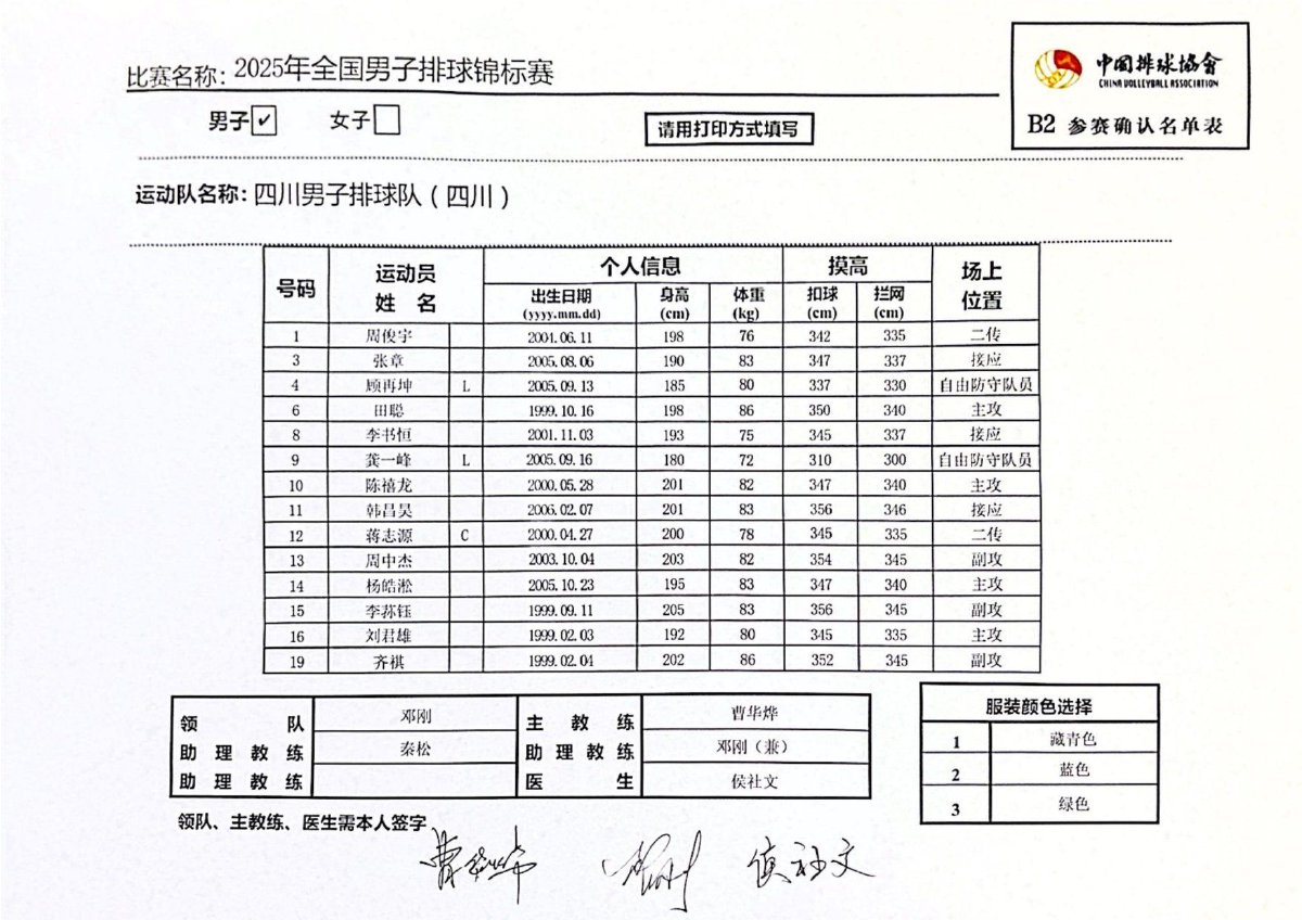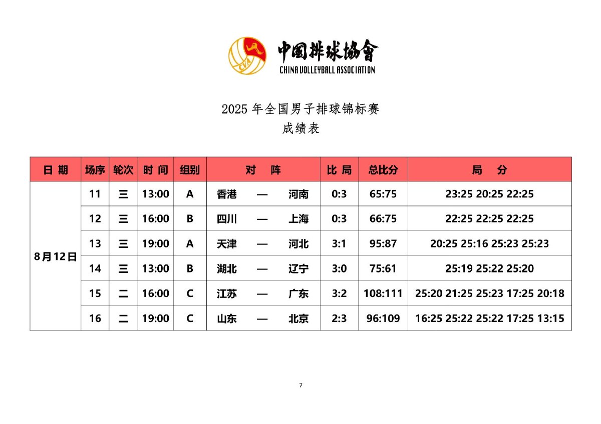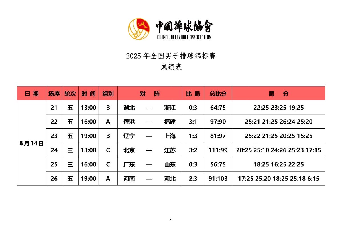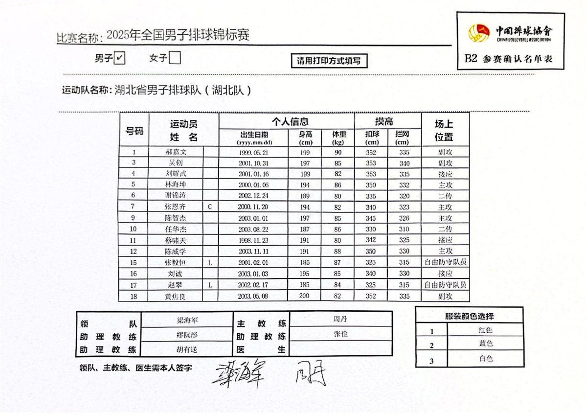 2025年全国男子排球锦标赛成绩