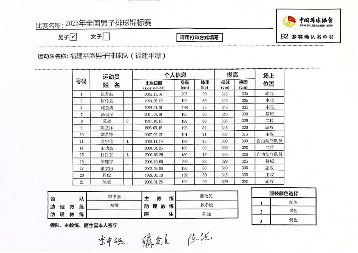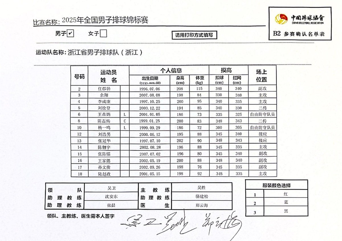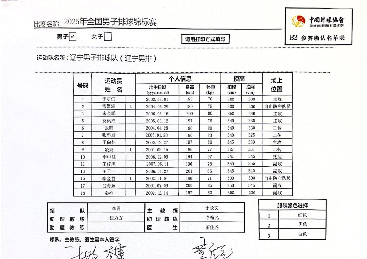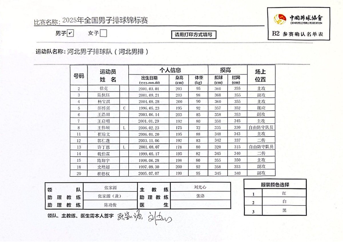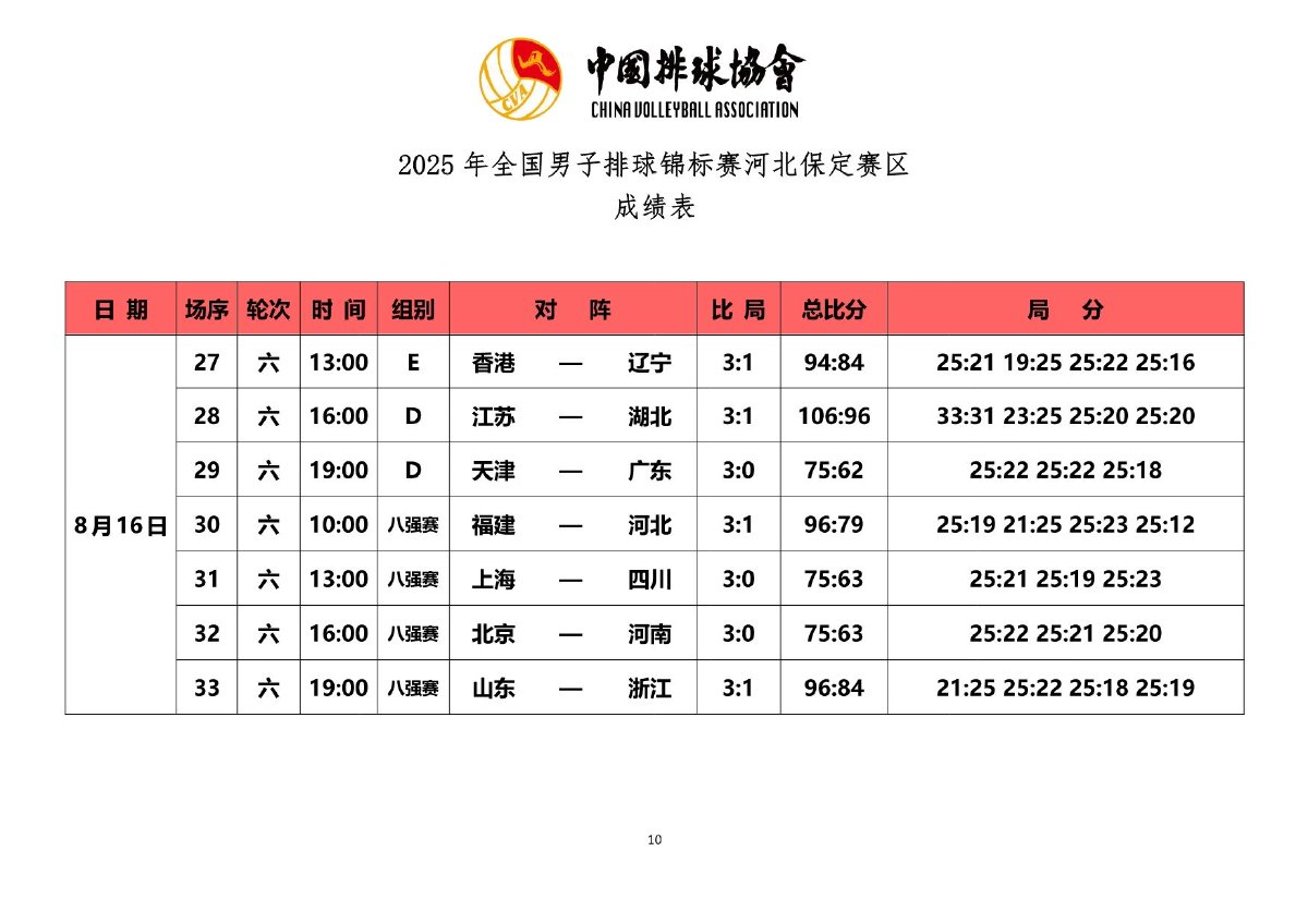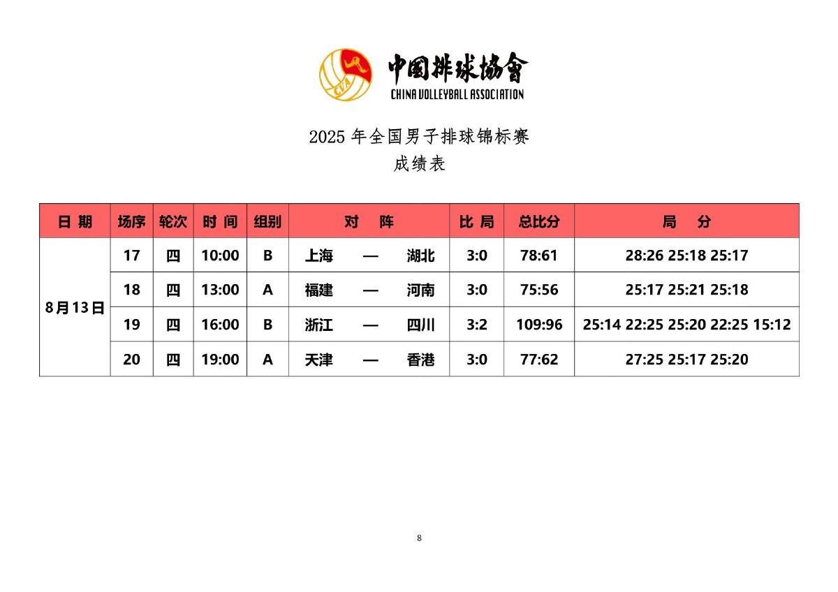 2025年全国男子排球锦标赛成绩