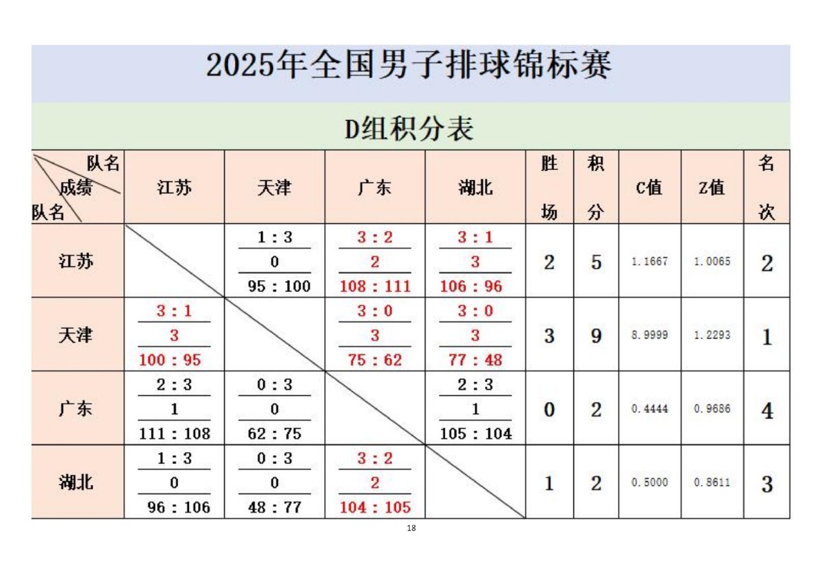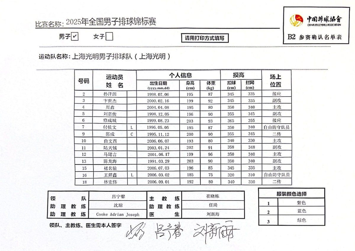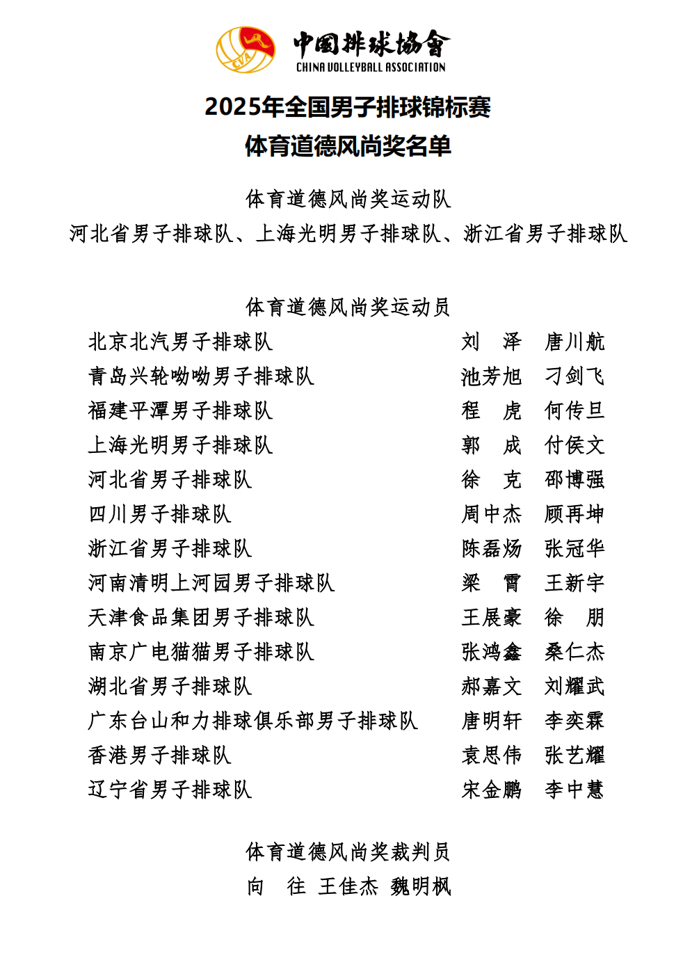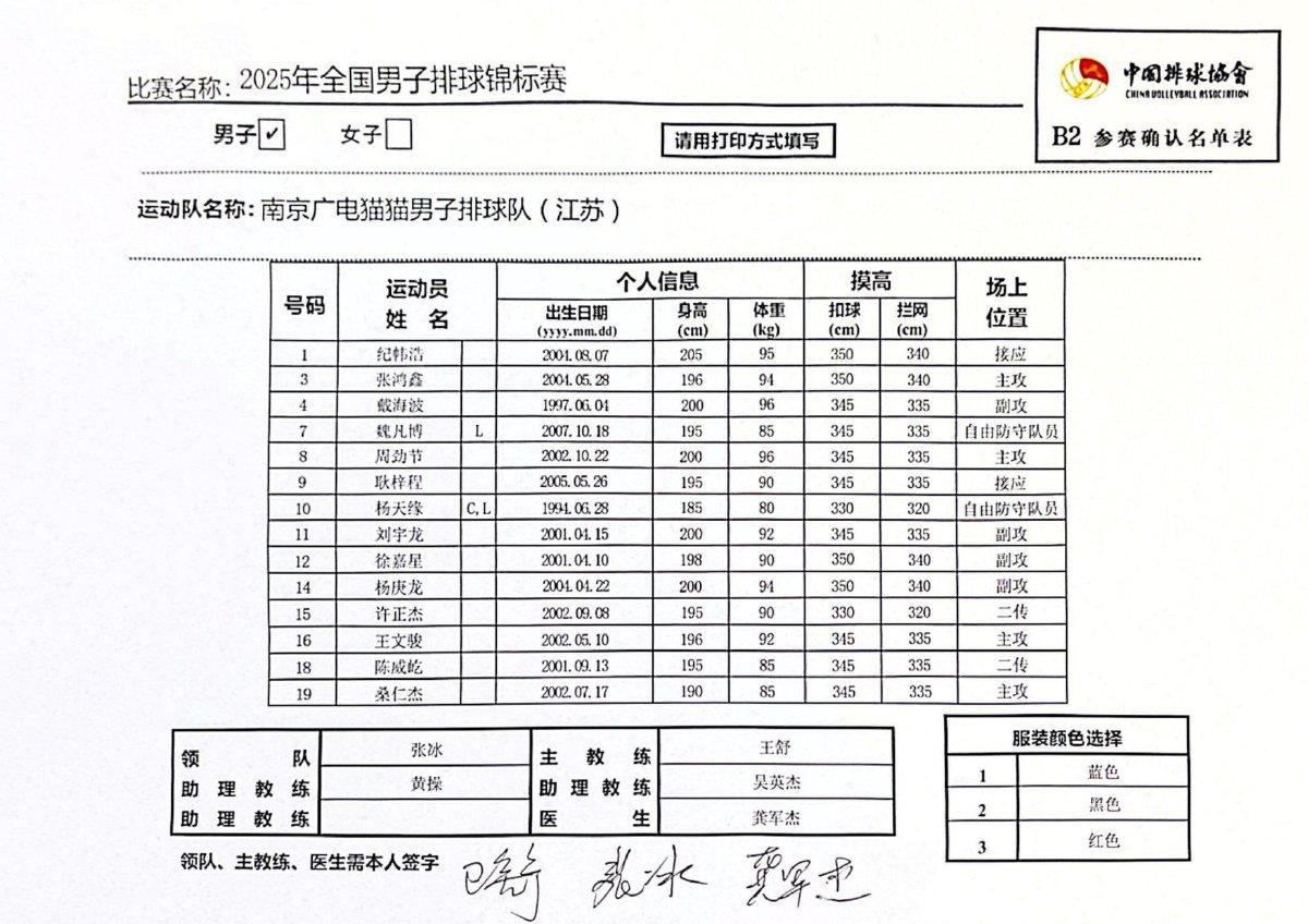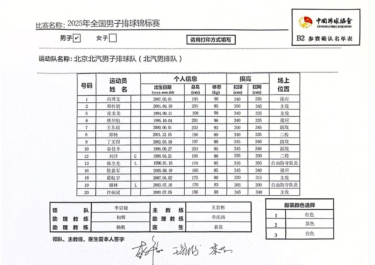 2025年全国男子排球锦标赛成绩