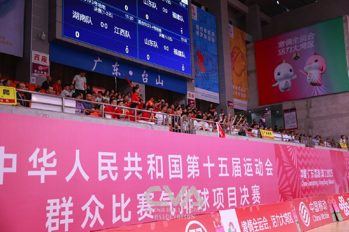 2025年8月25日,中华人民共和国第十五届运动会群众比赛气排球项目决赛在广东省台山圆满落幕。福建队表现最为出色,包揽了男子中年组、女子中年组及男女混合组三项冠军。其他组别方面,湖南队夺得男子青年组冠军,吉林队收获女子青年组冠军;山东队和浙江队分别在男子老将组和女子老将组中夺魁。