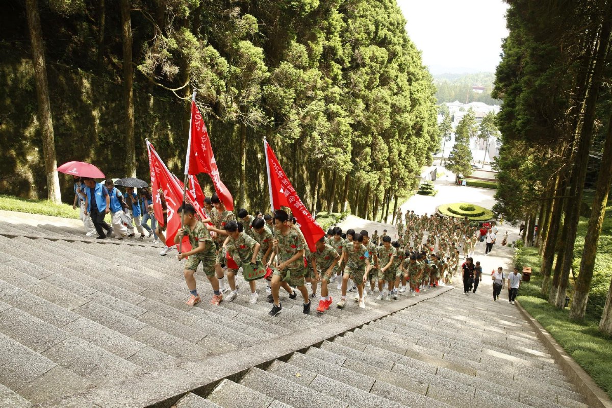当天,小队员们身着统一迷彩制服,肩挎军绿色背包,组成17个连队方阵,以昂扬姿态列队进驻中国革命摇篮井冈山。在庄严肃穆的井冈山革命烈士陵园,小队员们集体默哀致敬革命先烈,通过讲解员讲述的井冈山斗争故事,深刻感悟革命先辈的崇高精神。随后,在茨坪景区毛主席旧居内,队员们驻足于当年的书桌、军械工具前,聆听讲解员详述毛泽东同志在此撰写《井冈山的斗争》时的艰苦岁月,进一步坚定了理想信念,增强了爱国情怀。