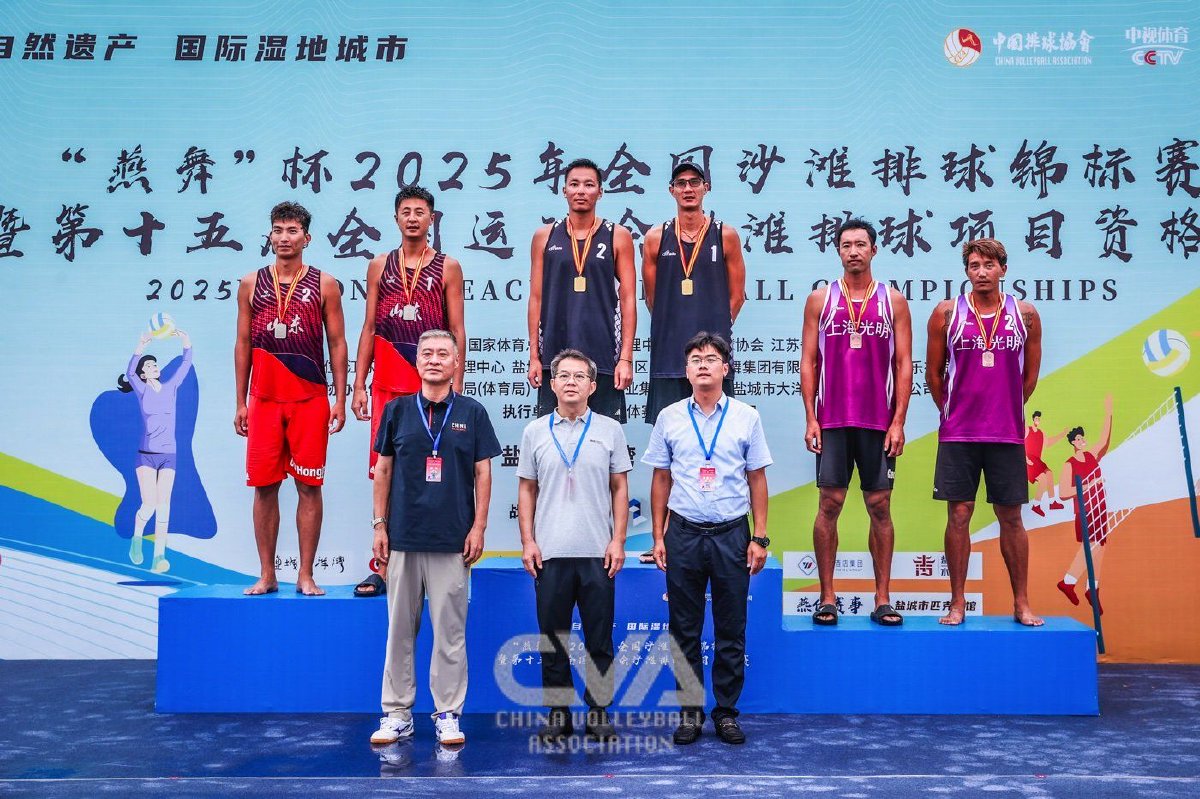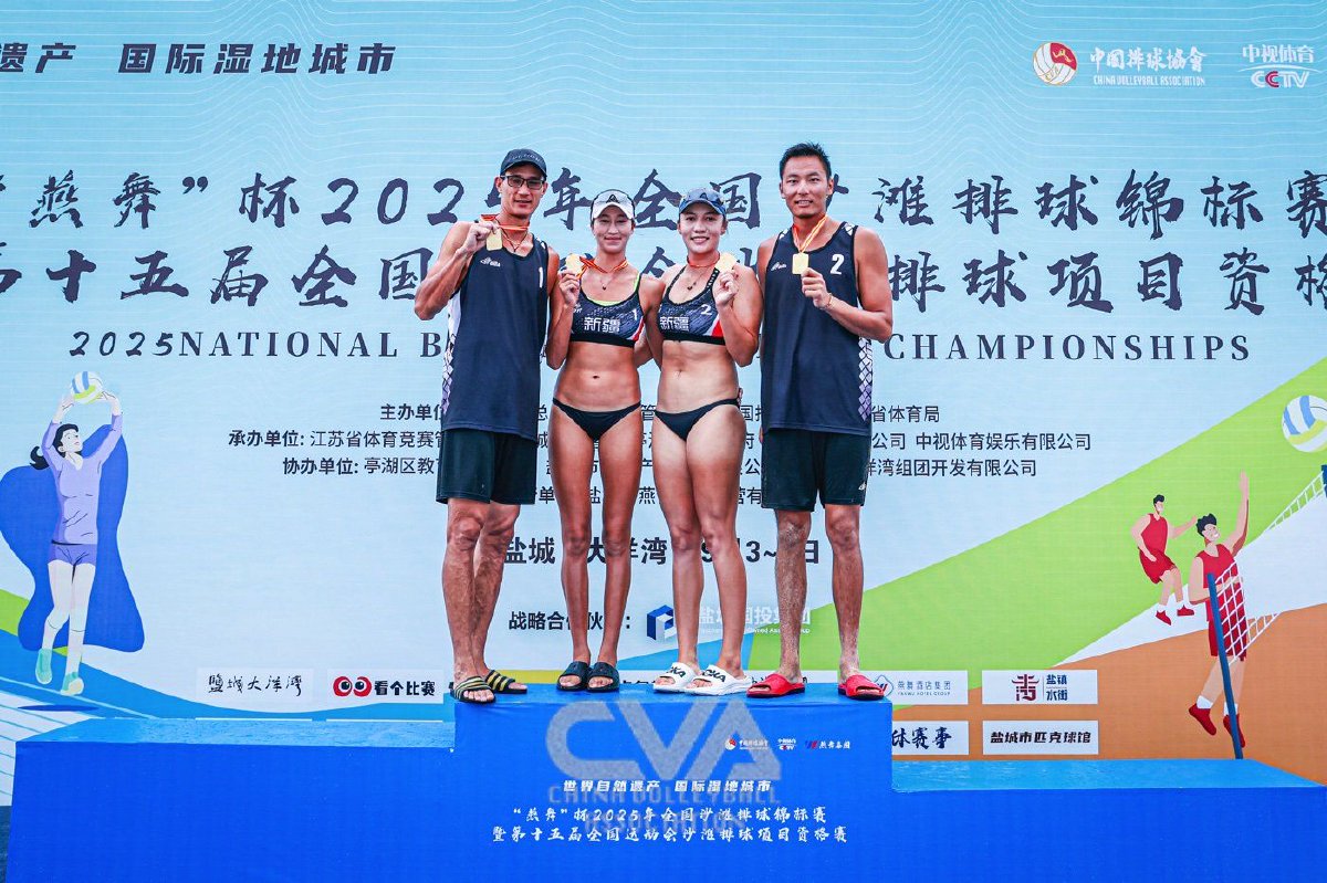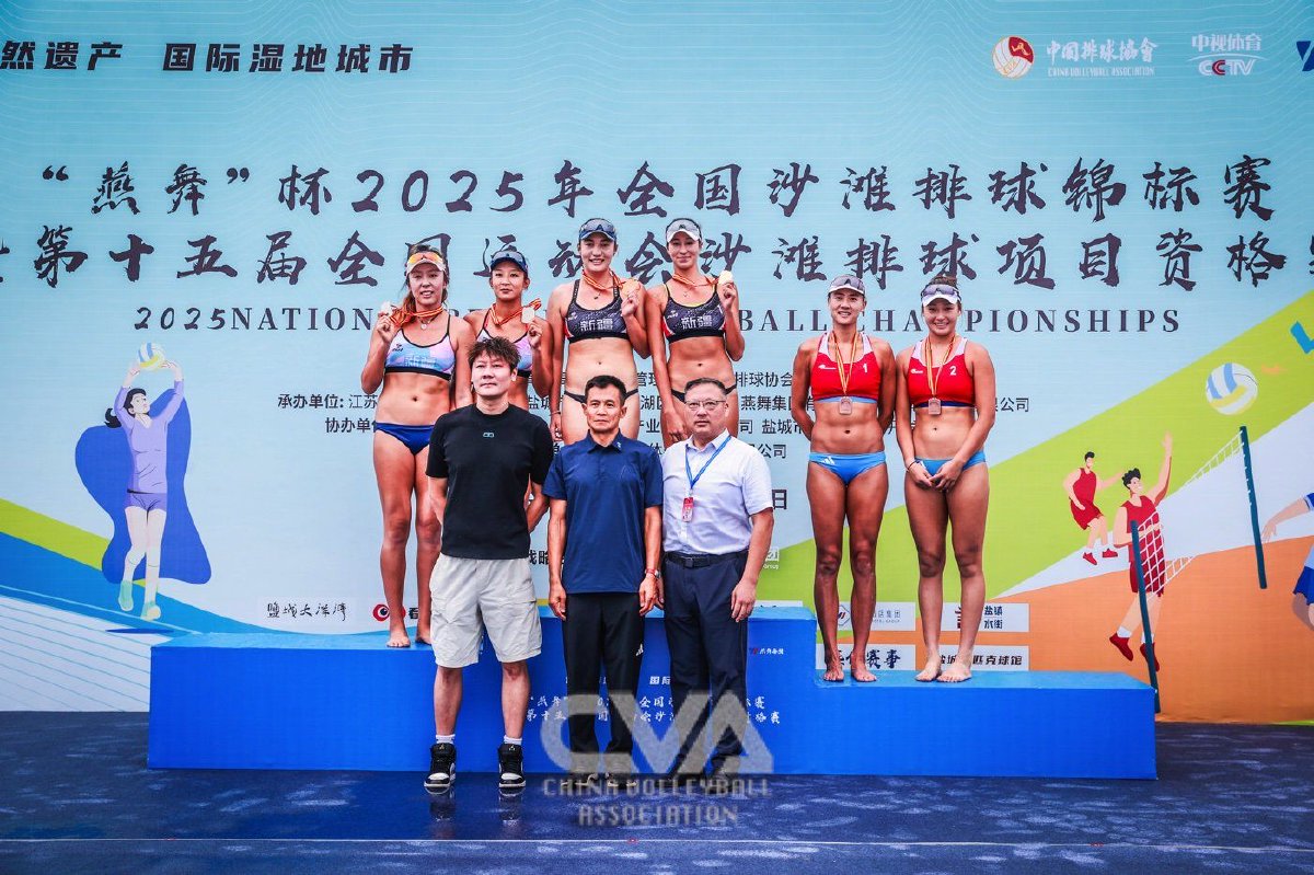 9月7日,“燕舞”杯2025年全国沙滩排球锦标赛暨第十五届全国运动会沙滩排球项目资格赛在江苏盐城收官。经过五天的争夺,江苏一队吴佳欣/周朝威斩获男子组冠军,新疆二队卡德丽叶/阿黑旦获得女子组冠军。