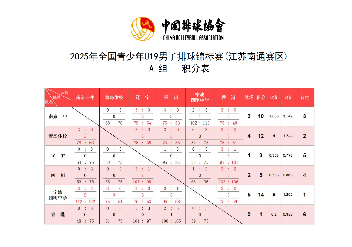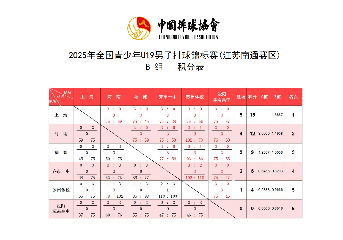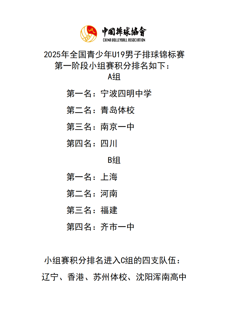 2025年全国青少年U19男子排球锦标赛6号公告