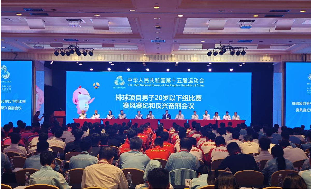 10月31日,赛区相继召开了赛风赛纪和反兴奋剂会议、技术会议。会议传达了体育总局办公厅关于进一步加强第十五届全国运动会赛风赛纪工作的通知、第十五届全国运动会赛风赛纪违规处理规定,参赛队代表、技术官员代表、教练员代表、竞委会工作人员代表进行宣誓并递交了赛风赛纪和反兴奋剂承诺书。国家体育总局排球运动管理中心副主任盖洋代表排球中心对本次比赛提出了要求,参赛的全体人员要正确认识本次赛事的重要意义,进一步提升政治站位,坚决不能在赛场秩序、运动员参赛资格、裁判判罚、反兴奋剂等重要环节、关键点位出问题;要严守纪律底线,将全部精力放在备战参赛工作上,增强安全意识;要展现排球人的良好形象,做排球项目良好形象和优良作风的继承者、传播者。