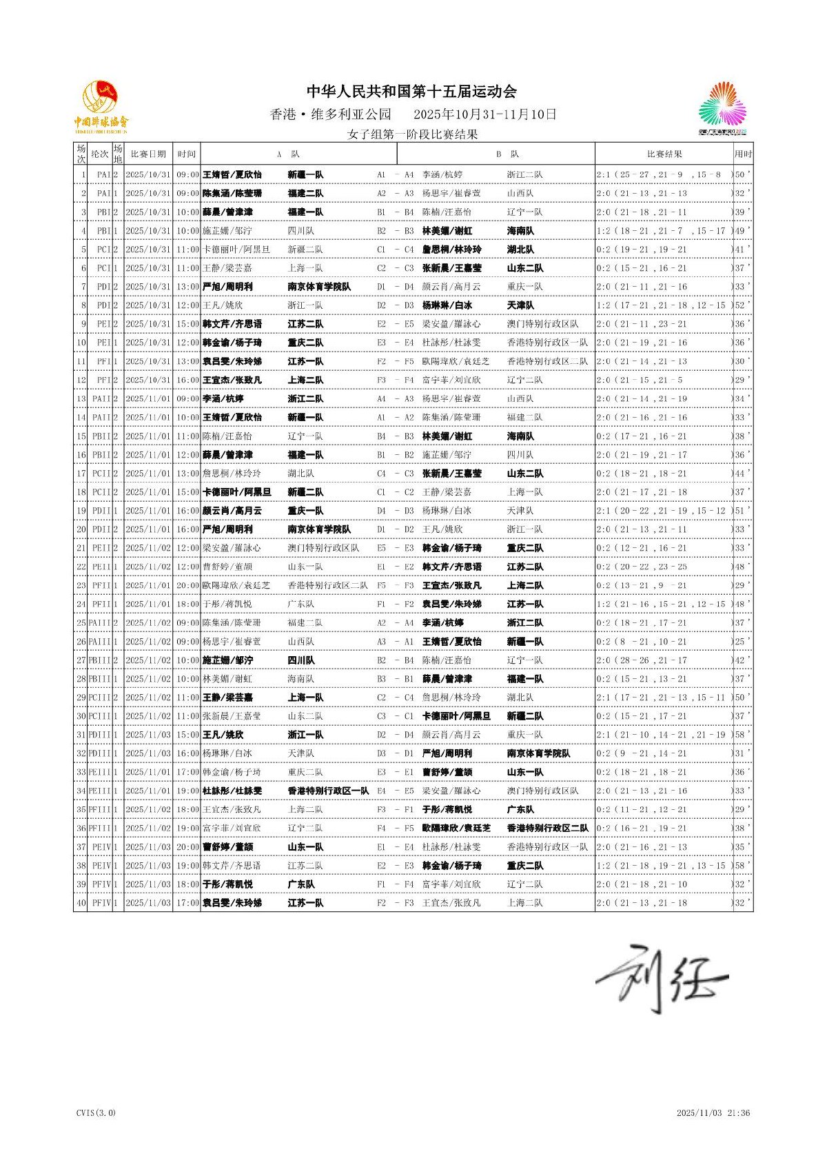 中华人民共和国第十五届运动会沙滩排球比赛5号公告