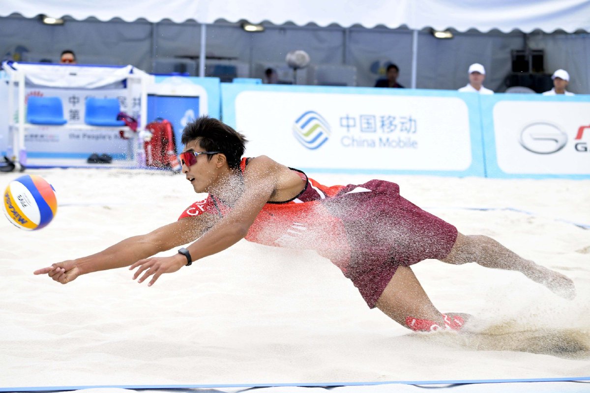 11月6日,本届全运会沙滩排球决赛阶段比赛男子组1/8决赛将在香港维多利亚公园主场地展开较量。
