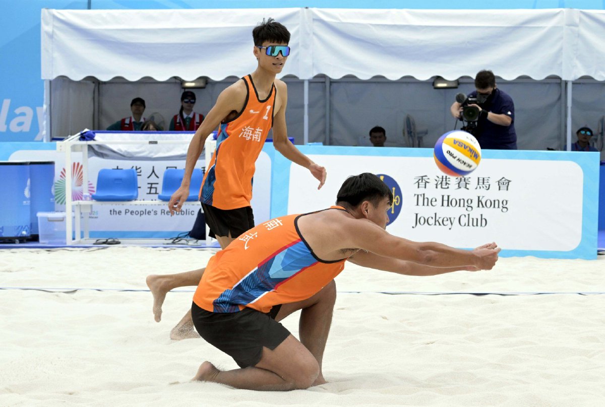 11月6日下午,中华人民共和国第十五届运动会沙滩排球决赛阶段比赛在香港维多利亚公园结束1/8决赛的争夺,男子组和女子组八强席位全部确定。吴佳欣/周朝威、王延伟/杜鸿君、王婧哲/夏欣怡、薛晨/曾津津等种子组合顺利晋级,上届亚军哈力克江/萨拉木无缘八强。