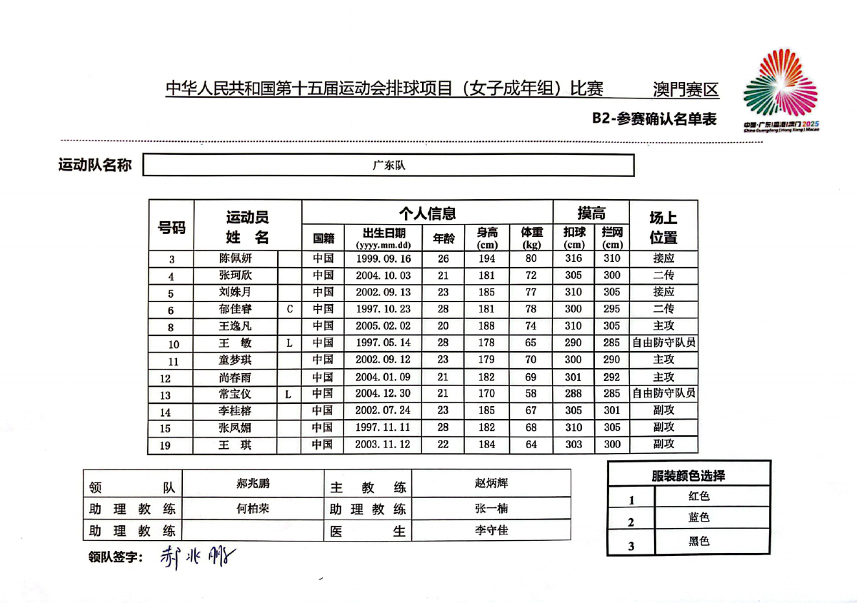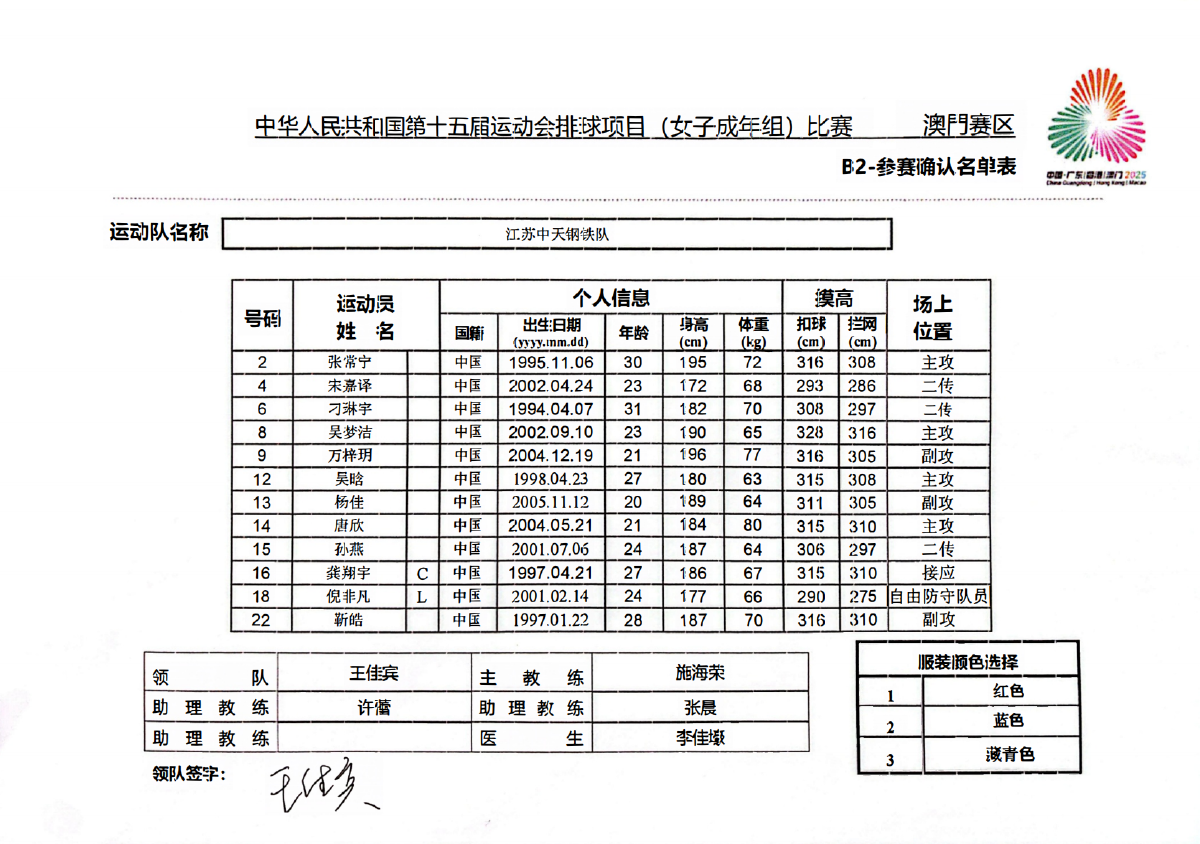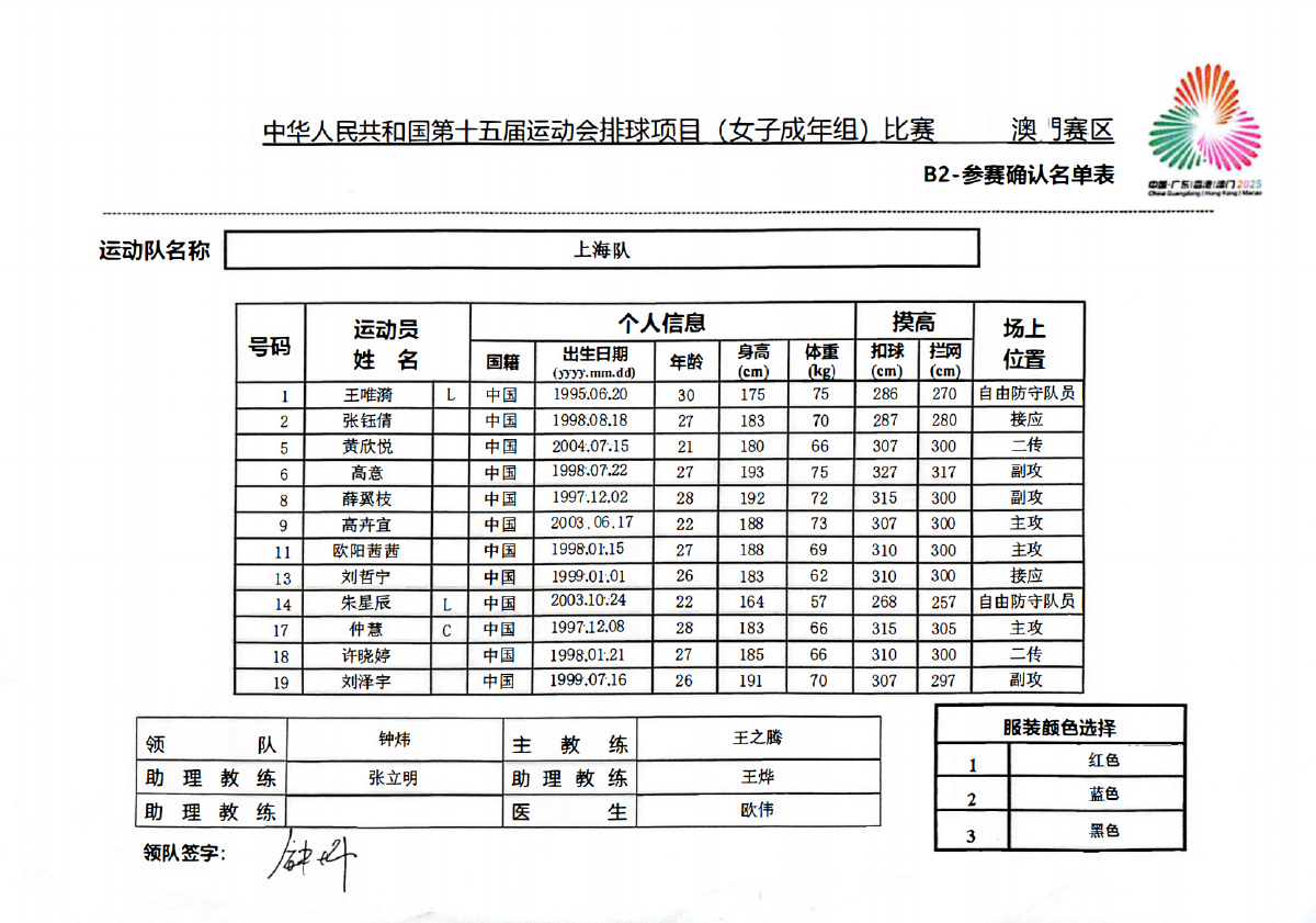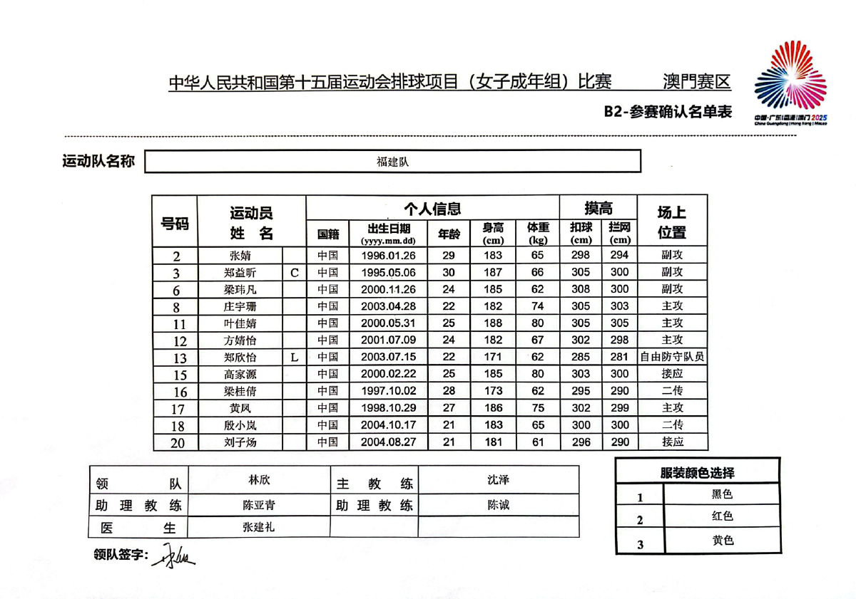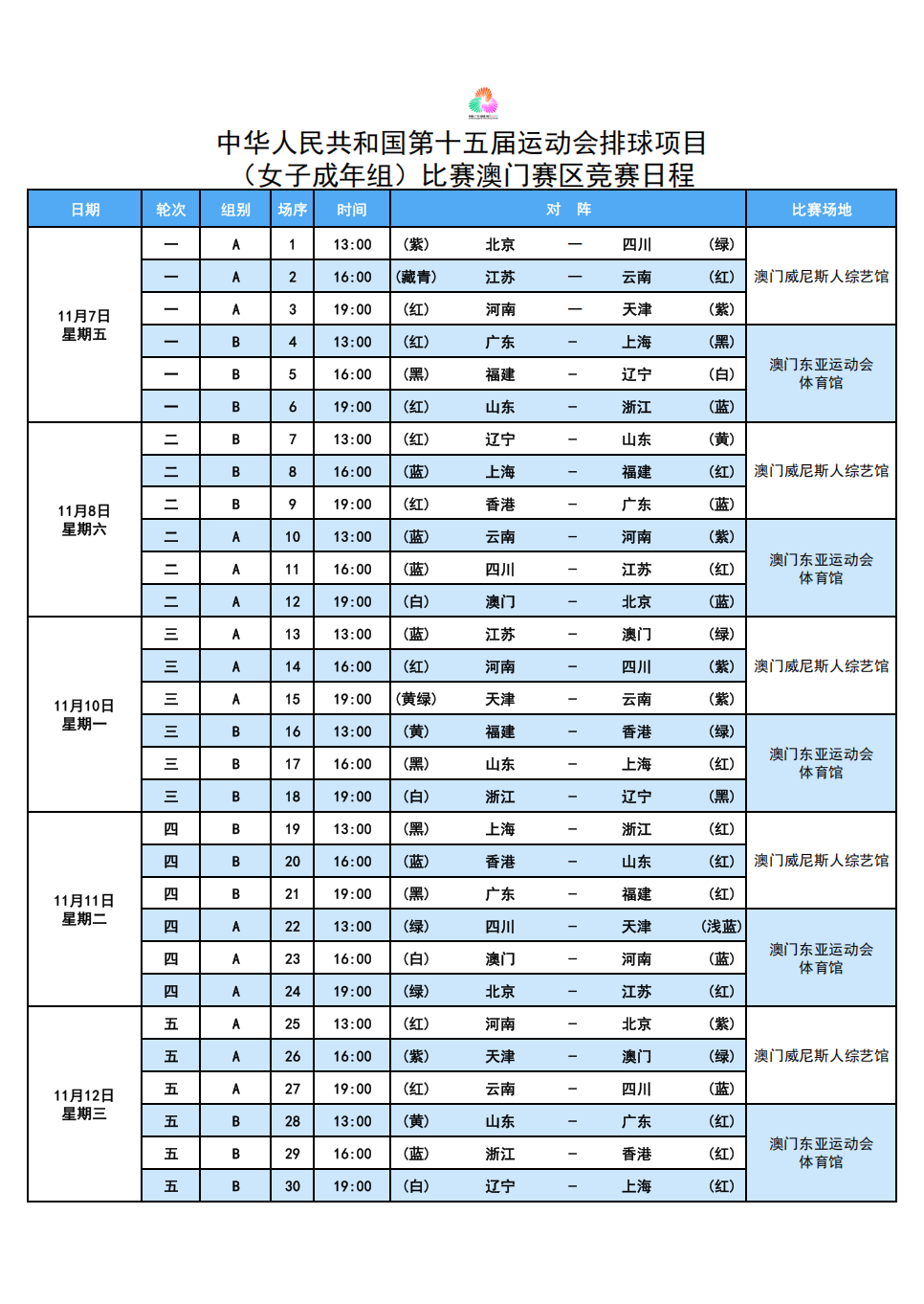 第十五届全国运动会排球项目(女子成年组)比赛1号公告