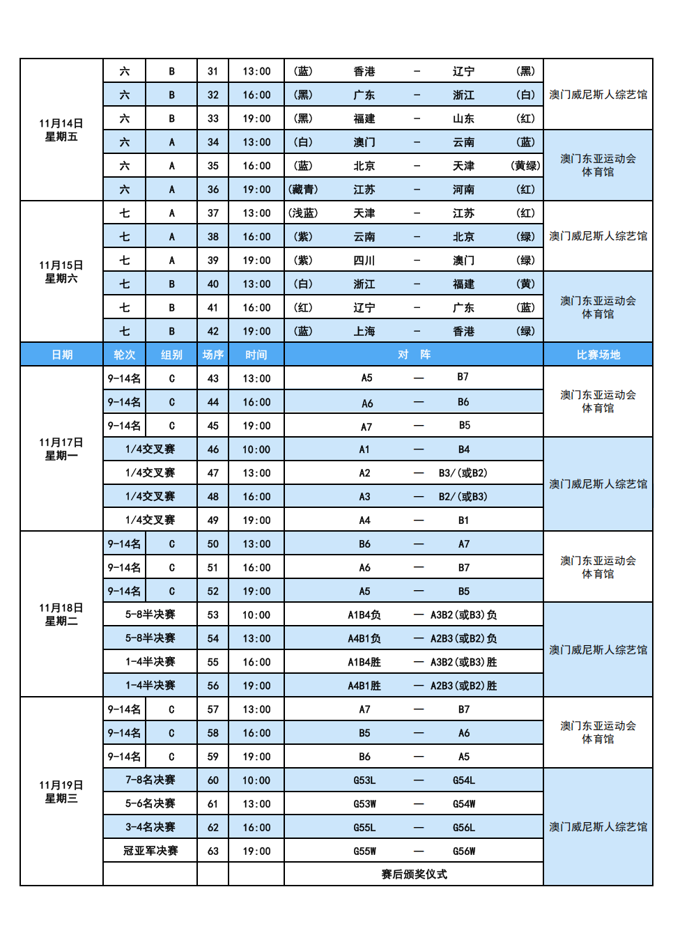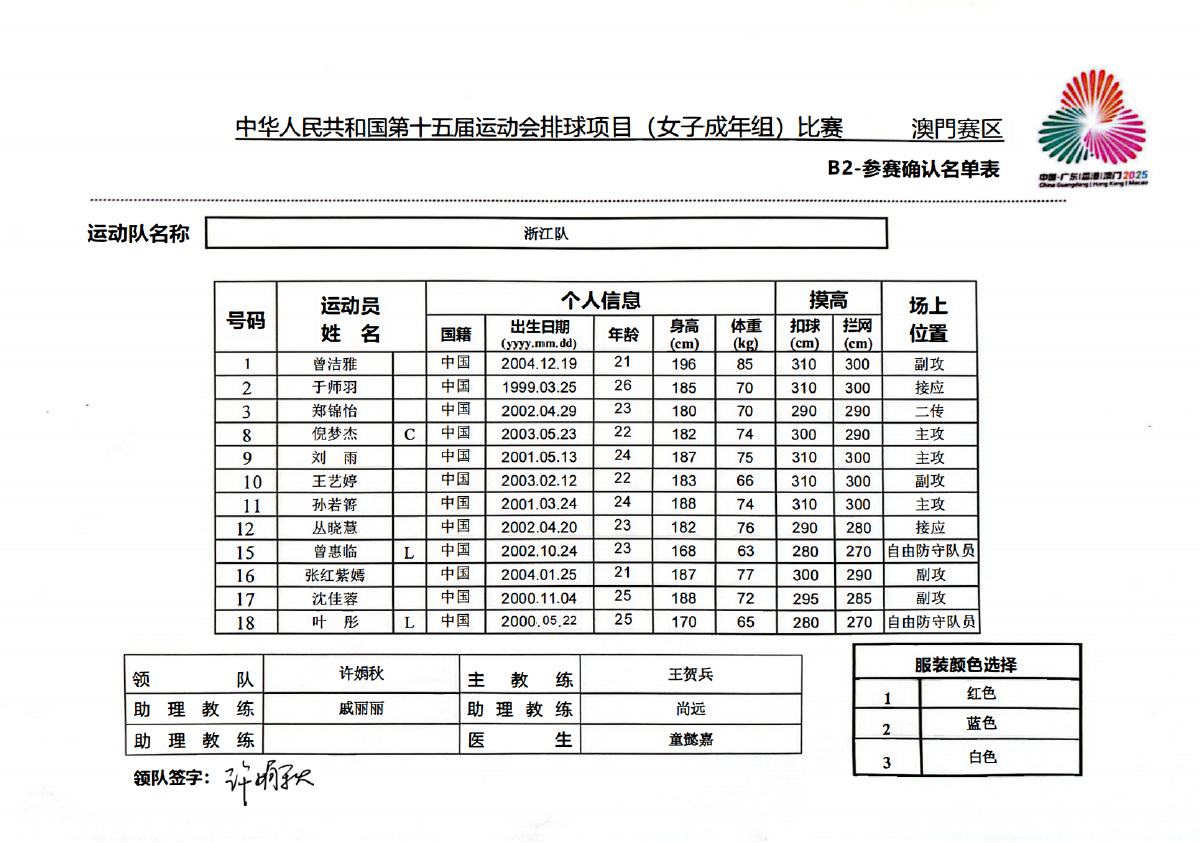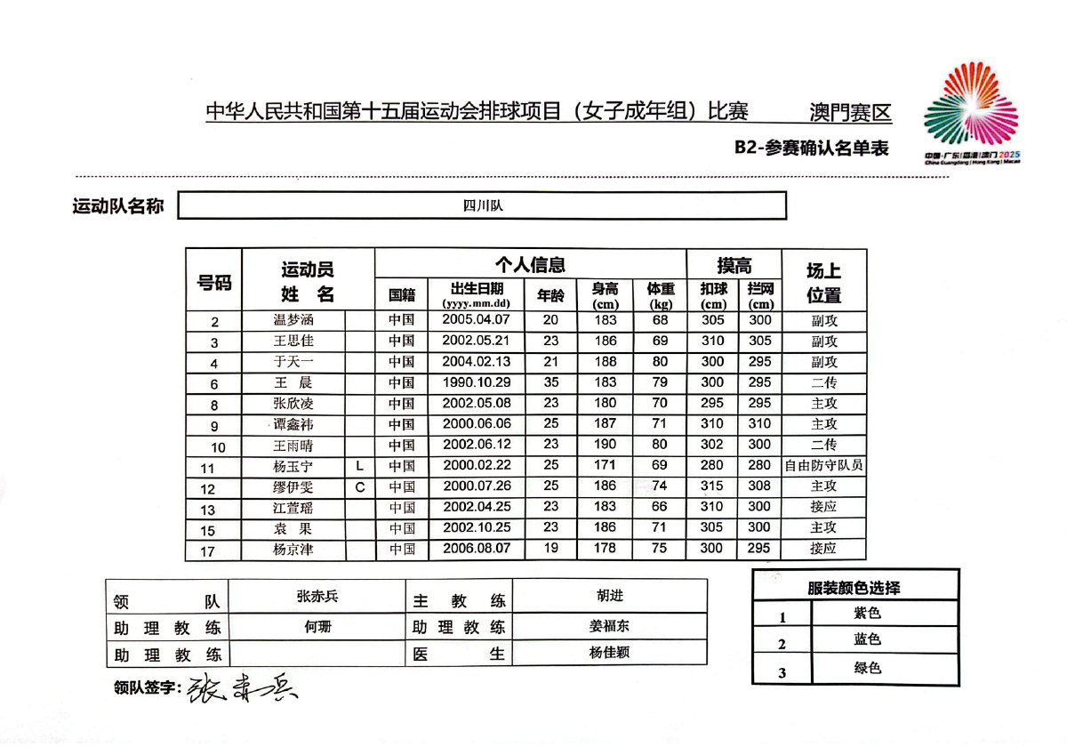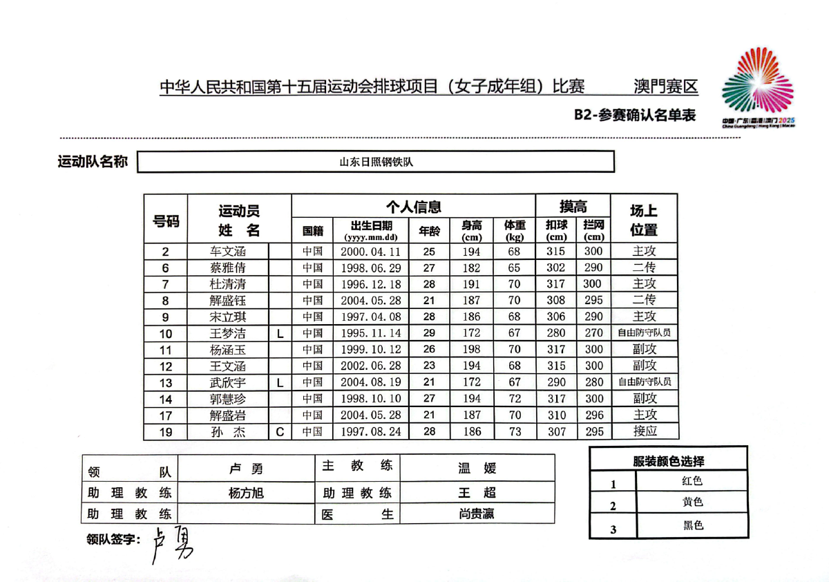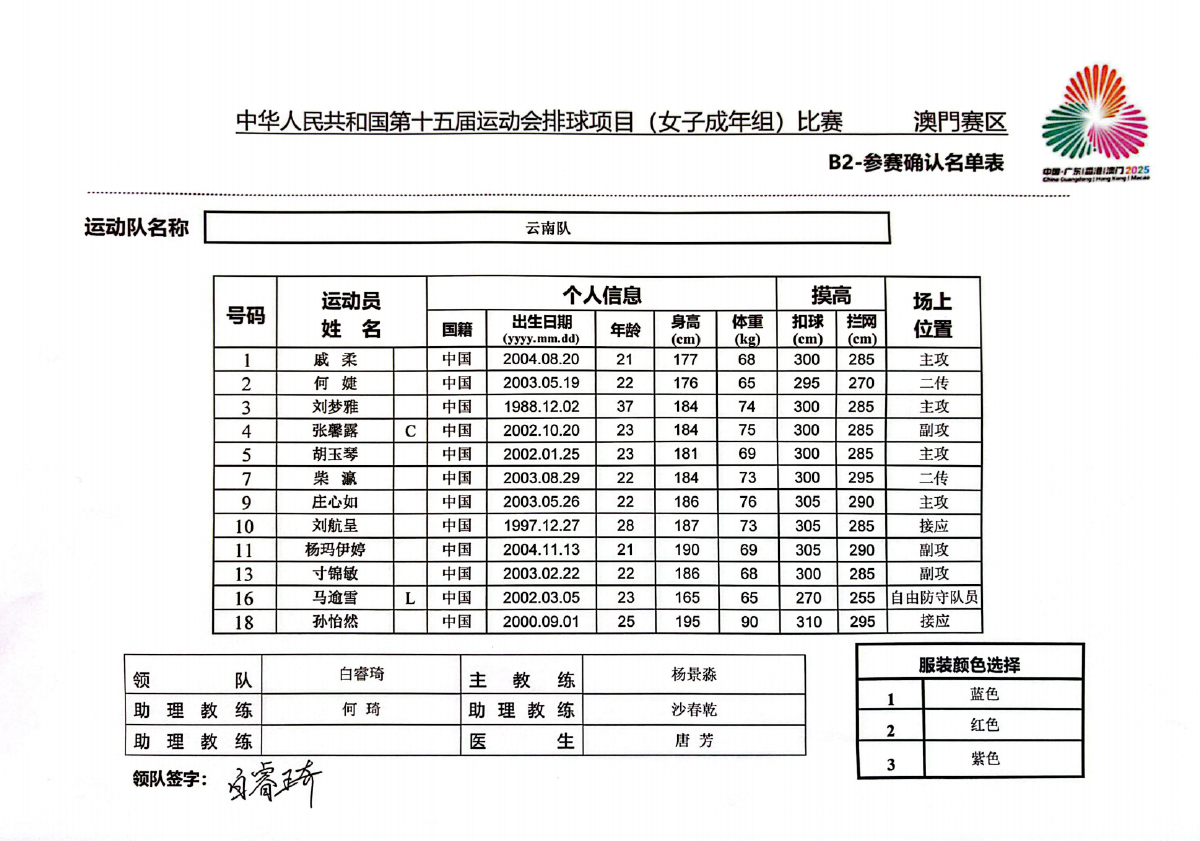第十五届全国运动会排球项目(女子成年组)比赛1号公告