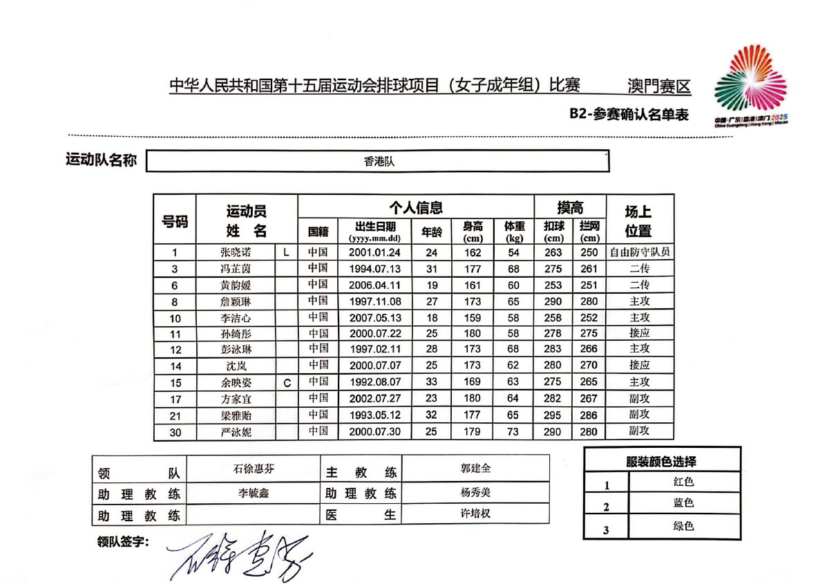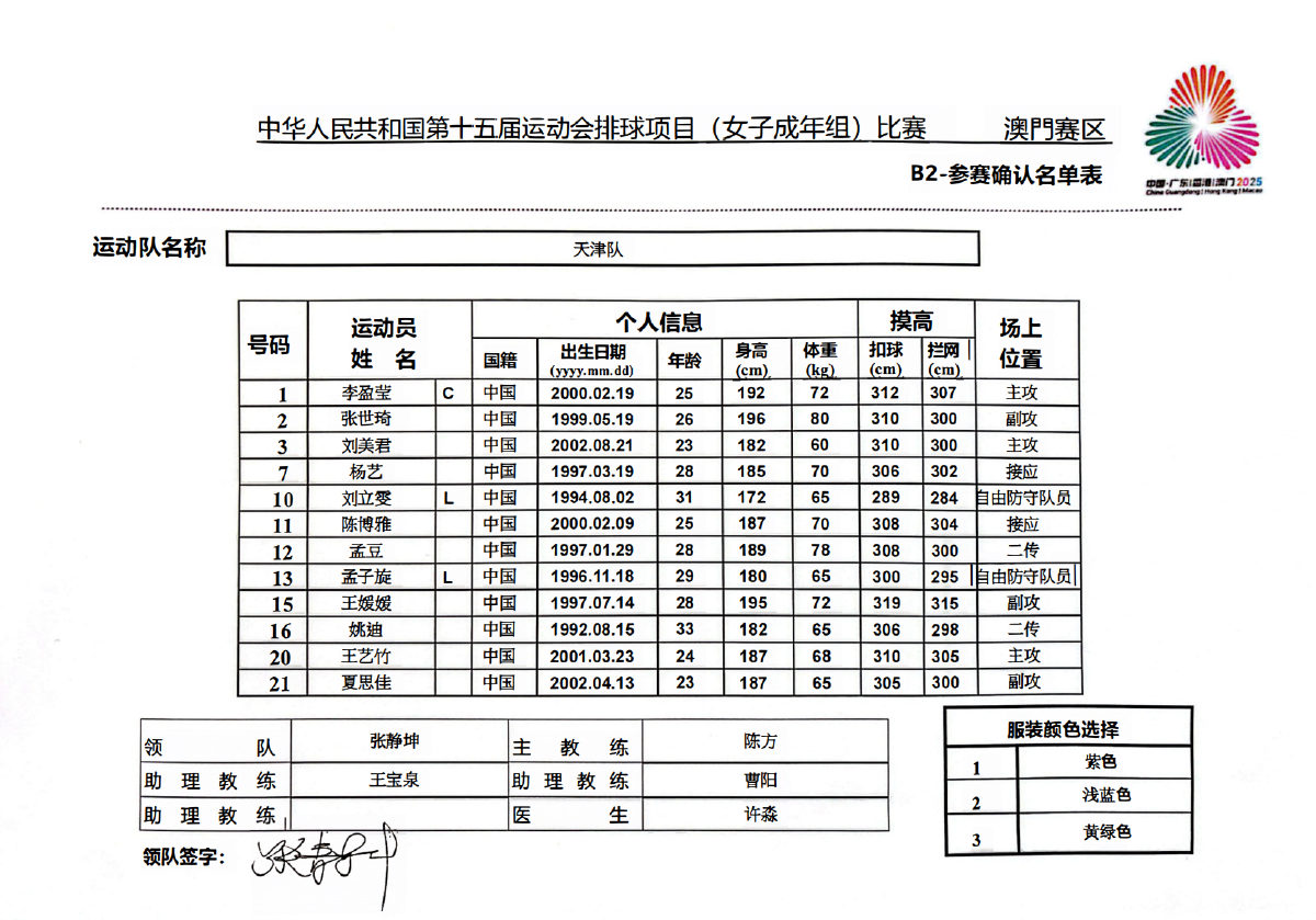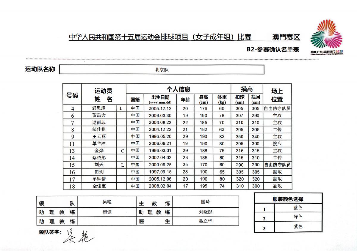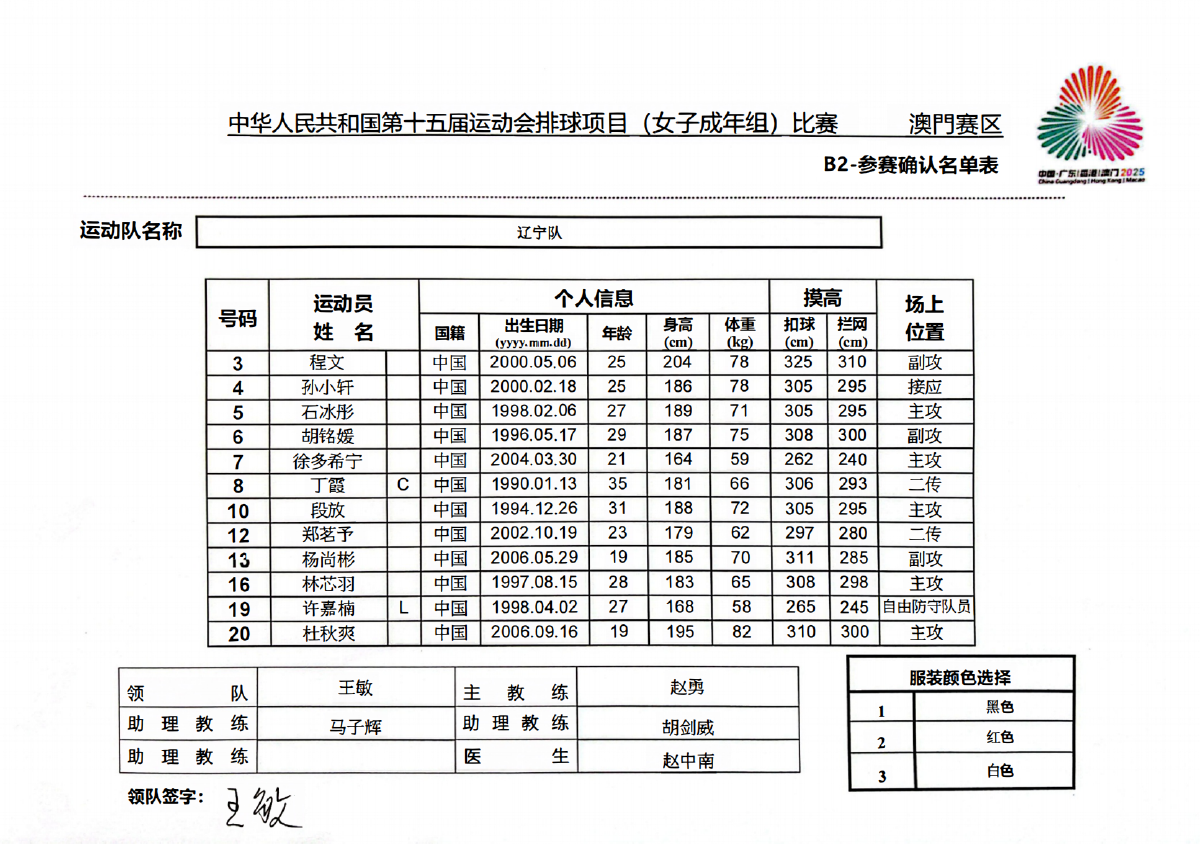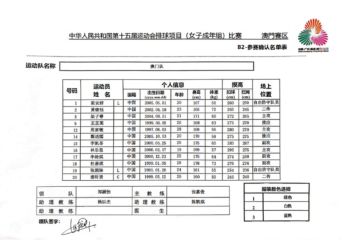 第十五届全国运动会排球项目(女子成年组)比赛1号公告