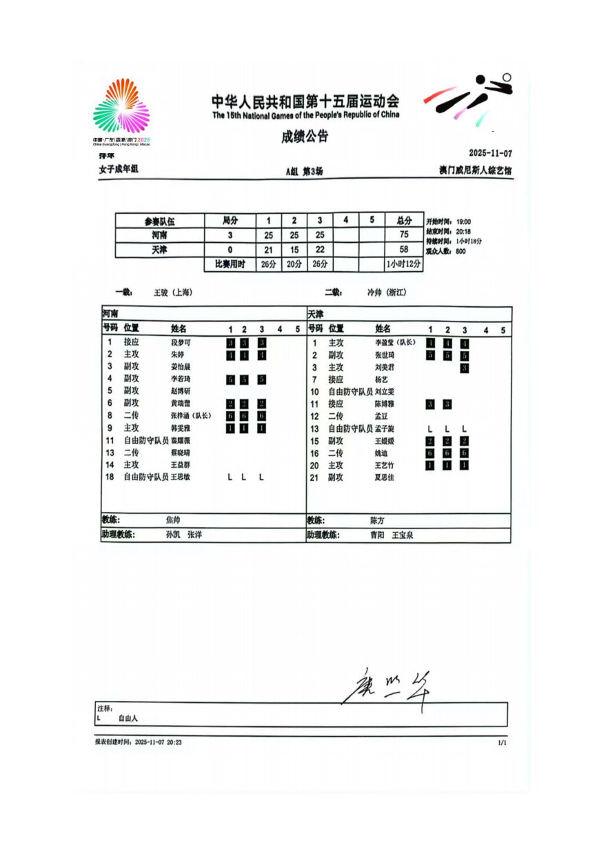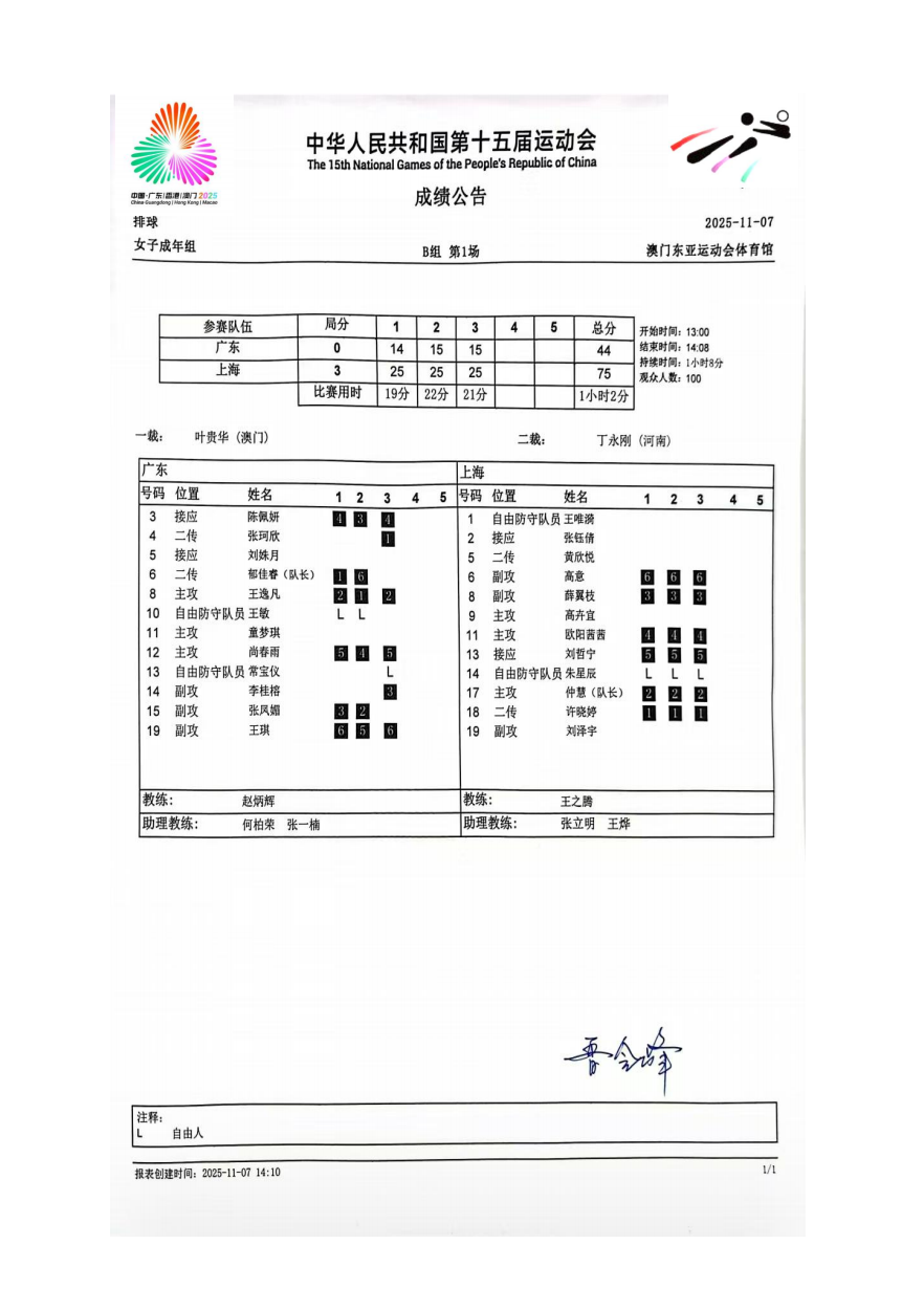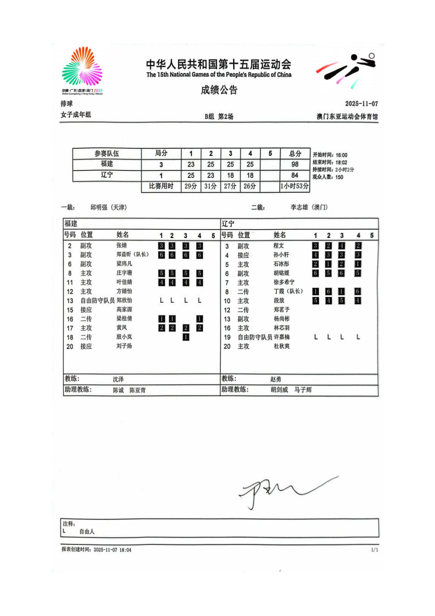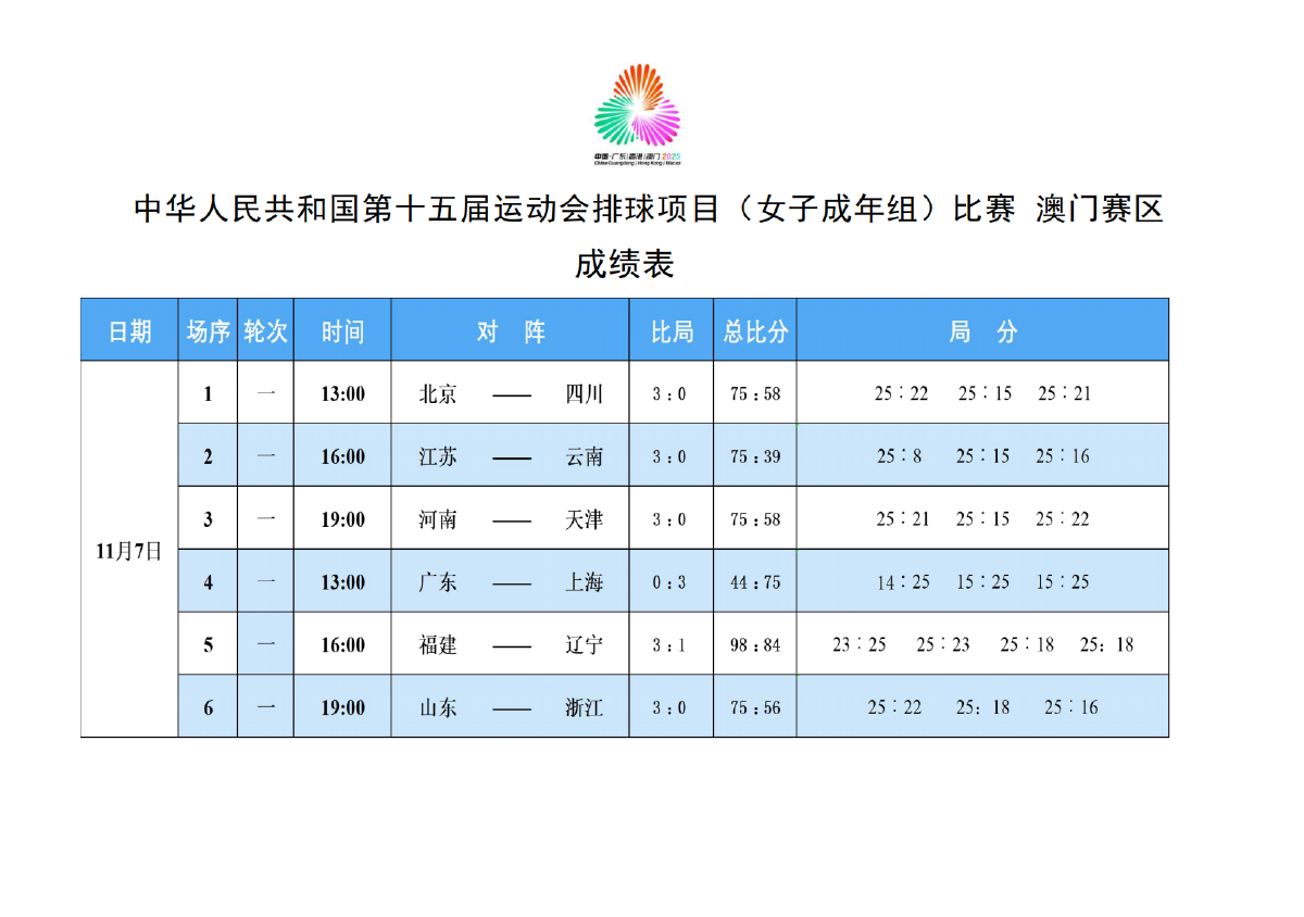 第十五届全国运动会排球项目(女子成年组)比赛2号公告