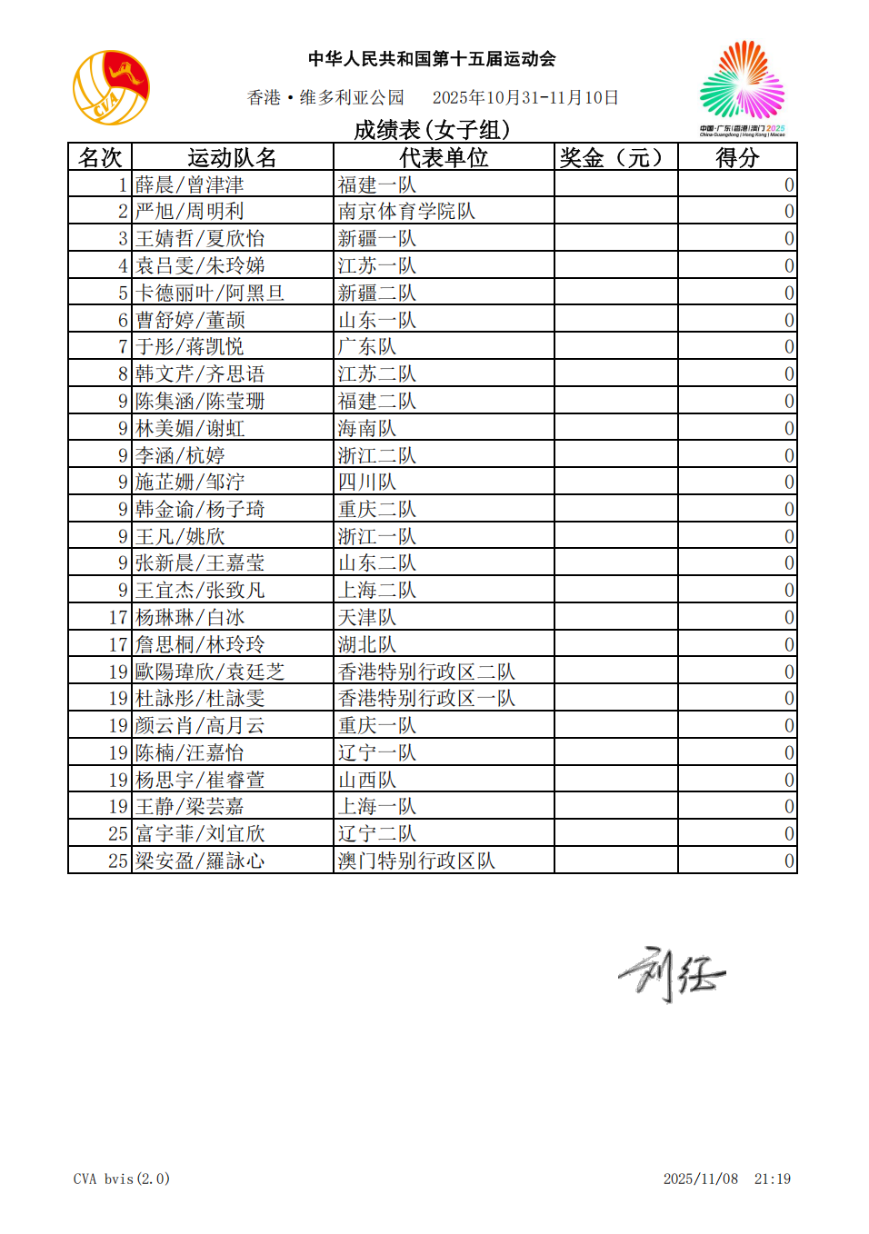 中华人民共和国第十五届运动会沙滩排球比赛12号公告