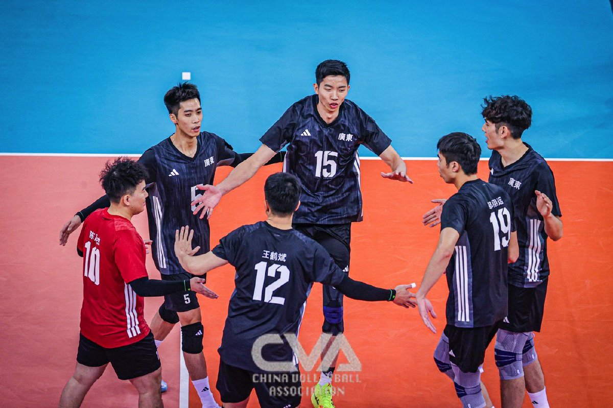 11月15日,中华人民共和国第十五届运动会排球项目(男子成年组)比赛在广东台山结束第一阶段小组赛第六轮的争夺,山东队鏖战五局力克河北队,携手浙江队和上海队夺取五连胜,三支队伍保持不败。广东队3比1战胜江苏队,福建队和湖北队均直落三局取胜。