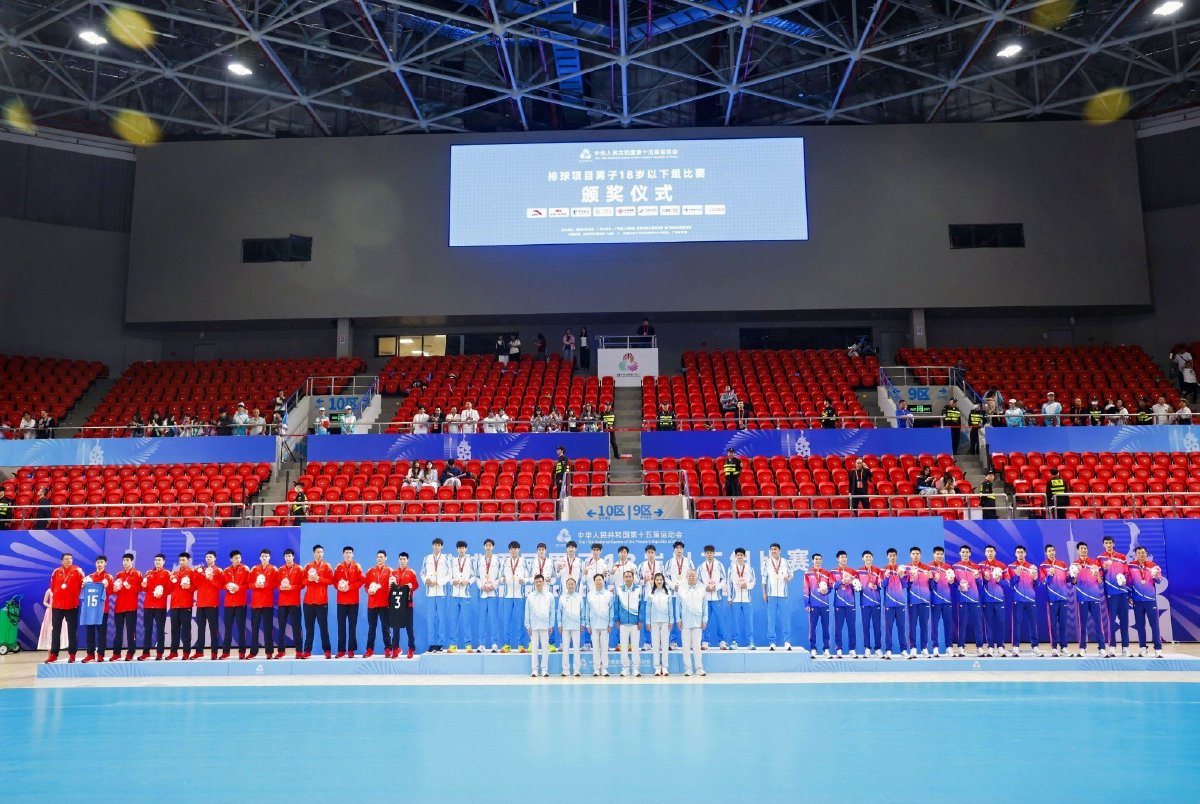 11月16日晚,中华人民共和国第十五届运动会排球项目(男子18岁以下组)比赛在广东省广州市落幕。浙江队夺得冠军,江苏队和上海队分别收获亚军和季军。