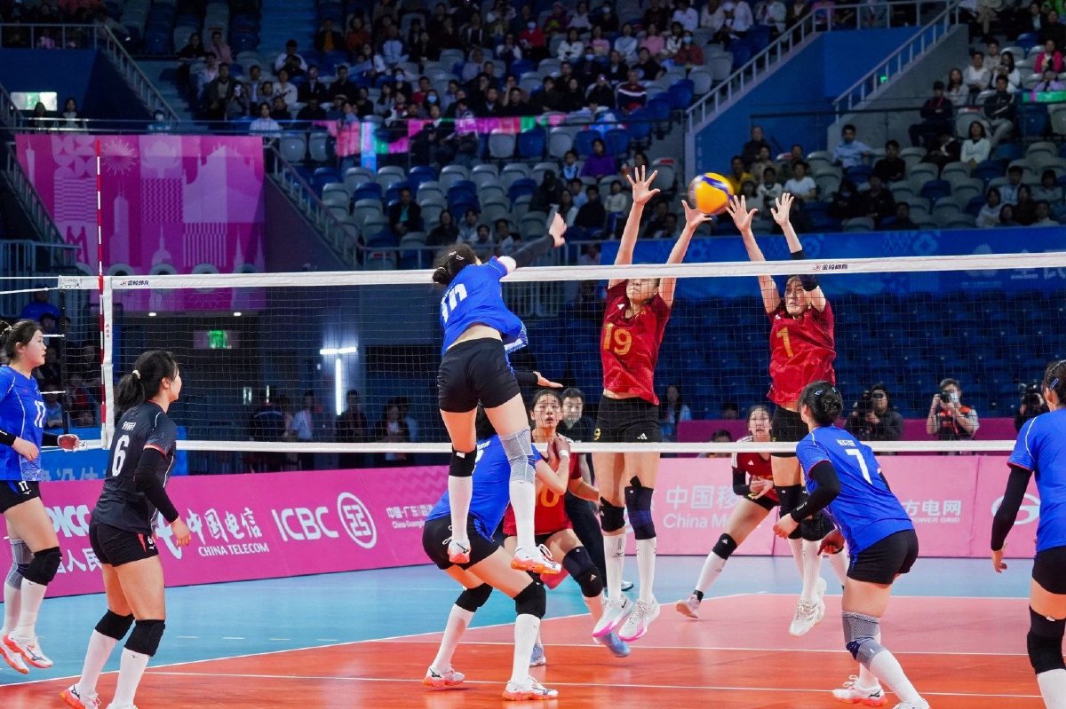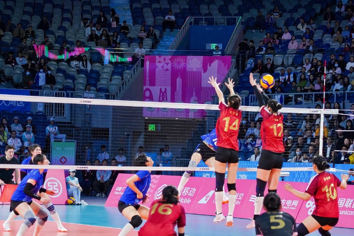 本届全运会排球项目(女子18岁以下组)比赛于2025年11月10日至18日在深圳市龙华文体中心体育馆、南山文体中心体育馆举办。18日晚的冠亚军决赛在江苏队与上海队之间展开,两支此前保持不败的球队展开终极较量。此役,江苏队首发为主攻魏伊杉、翟宇睿,副攻郭中楠、陈晓辉,接应陈嘉羽、二传张籽萱,自由人刘茗月。上海队由主攻黄悦鑫、陈羽霏,副攻王奥芊、宋子苧,接应杨舒茗、二传张海林以及自由人李明静出战。