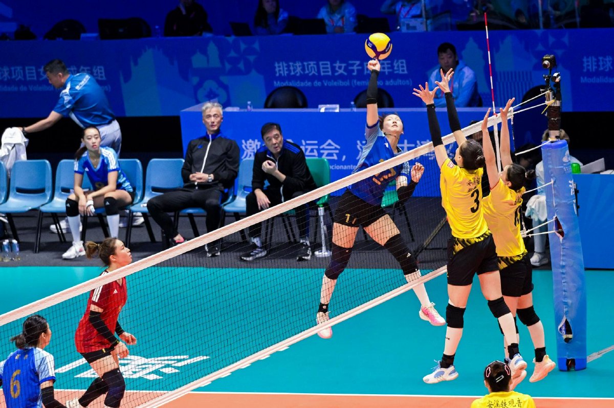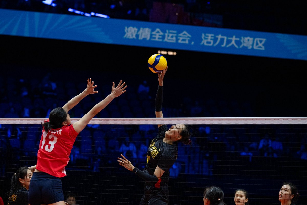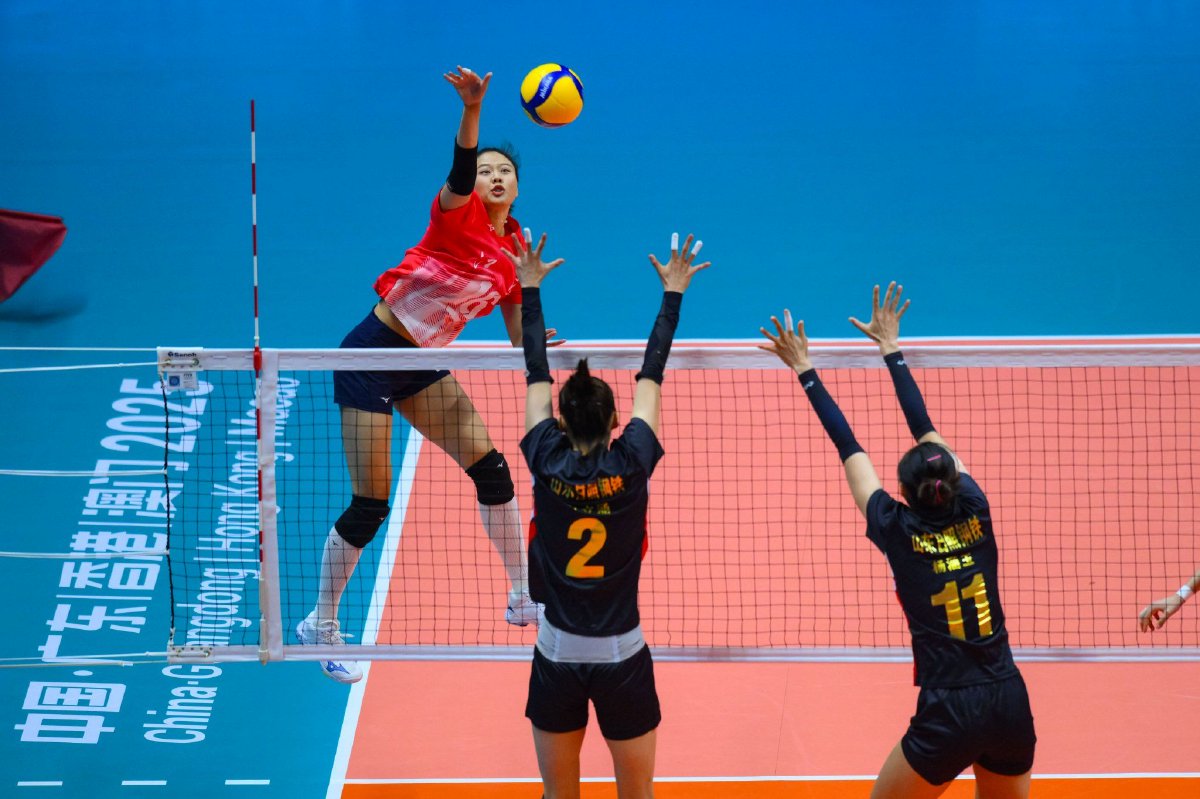 本届全运会排球项目(女子成年组)比赛于2025年11月7日至19日在澳门威尼斯人综艺馆、东亚运动会体育馆举办。收官日当晚,冠亚军决赛在江苏队与山东队之间展开。此役,江苏队首发为主攻张常宁、吴梦洁,副攻万梓玥、杨佳,接应龚翔宇、二传刁琳宇,自由人倪非凡。山东队由主攻车文涵、杜清清,副攻杨涵玉、郭慧珍,接应孙杰、二传解盛钰以及自由人王梦洁联袂出战。