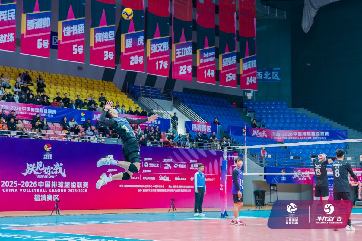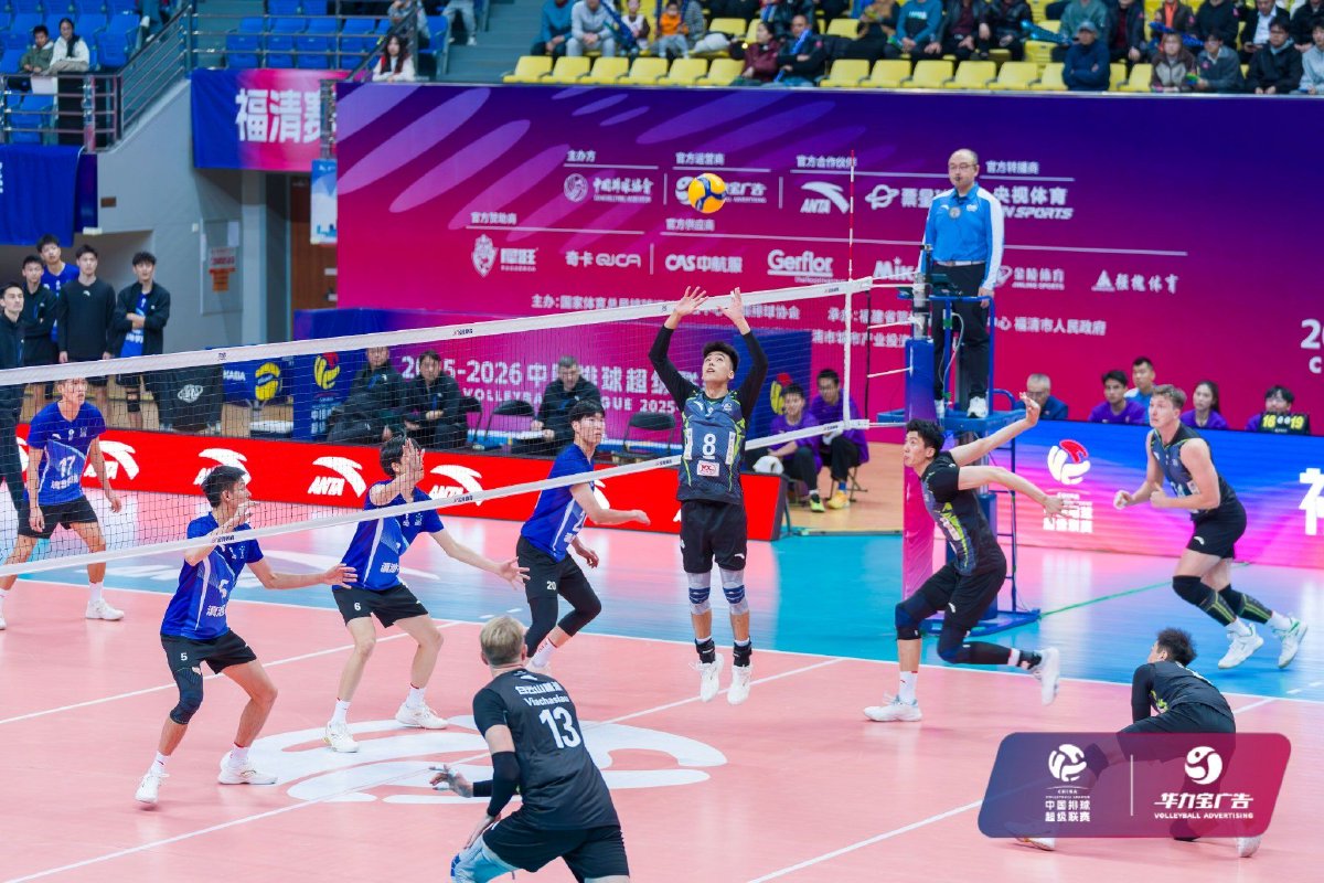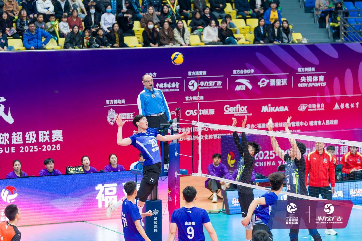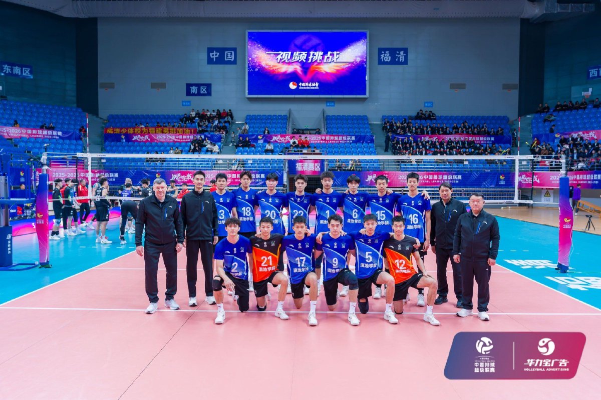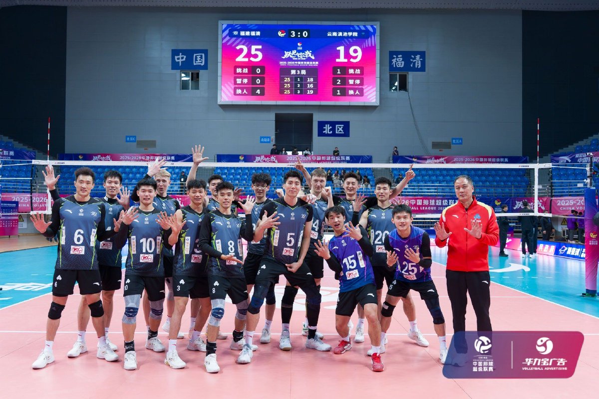 2025年12月28日,2025-2026中国男子排球超级联赛常规赛B级第五轮第13场比赛在福建省福清市体育馆结束。福建福清男排主场3比0战胜云南滇池学院男排,三局比分分别为25比18、25比16、25比19。