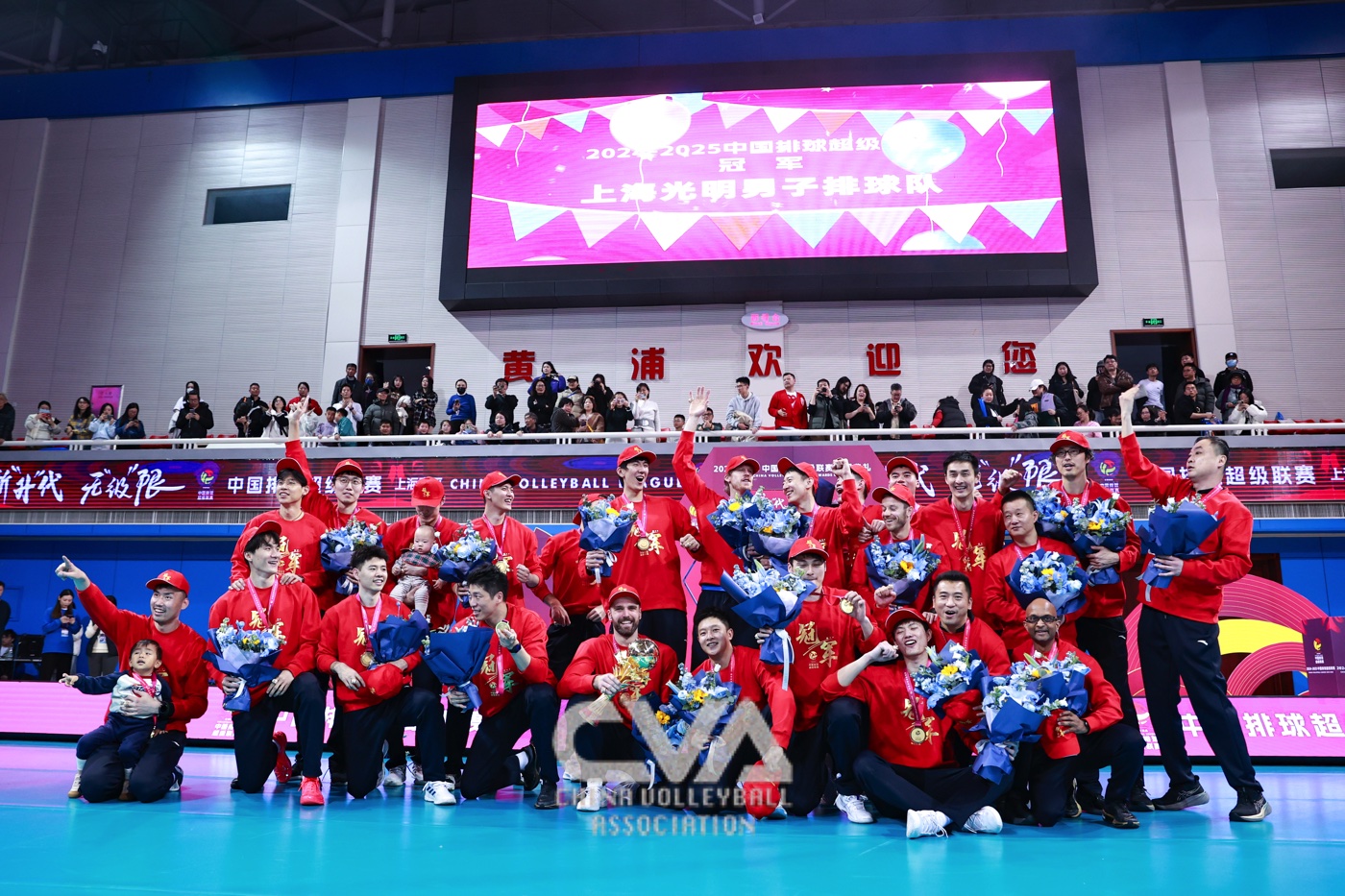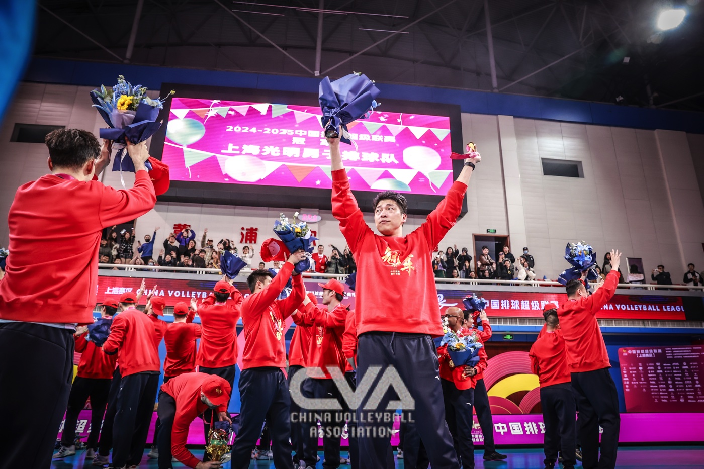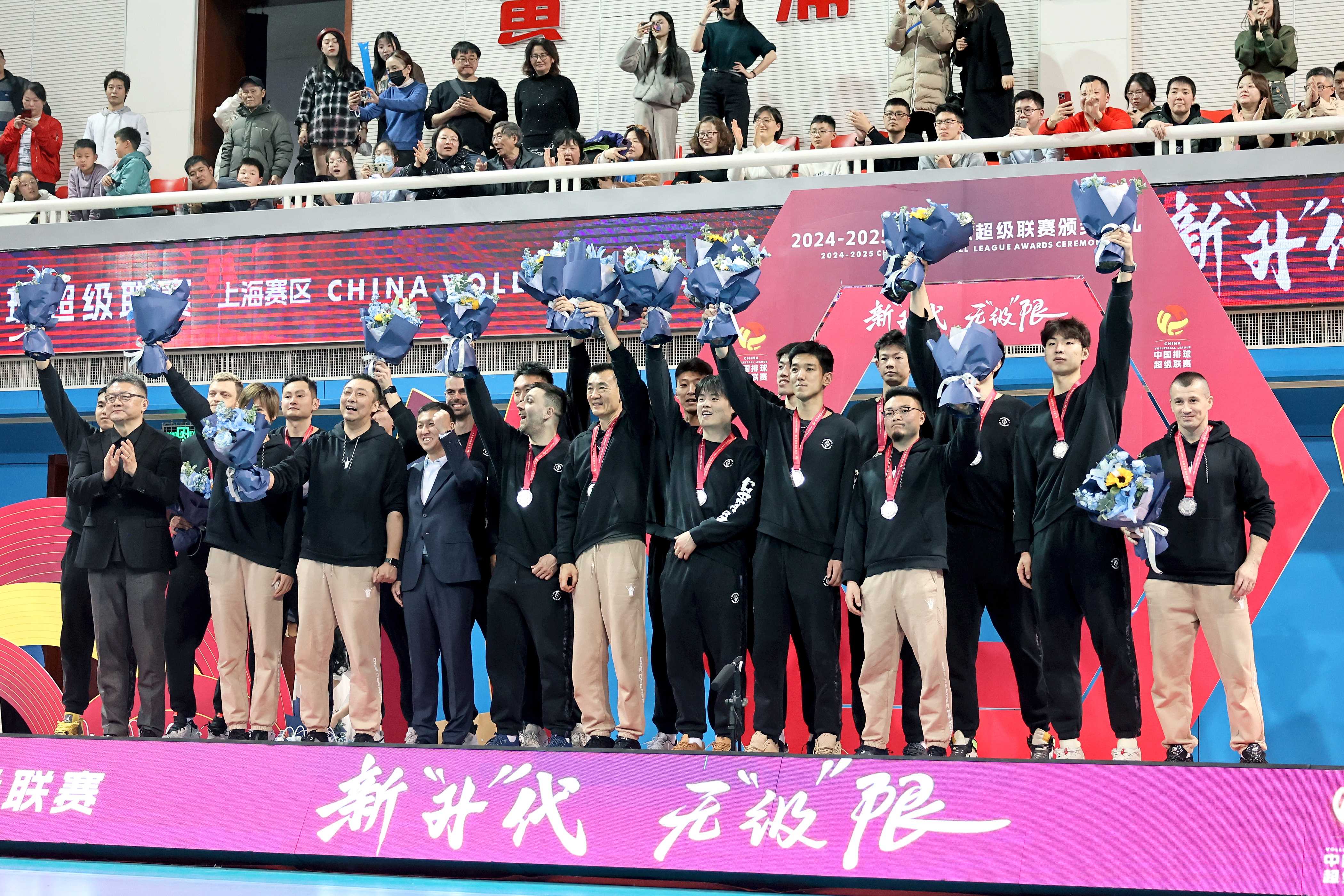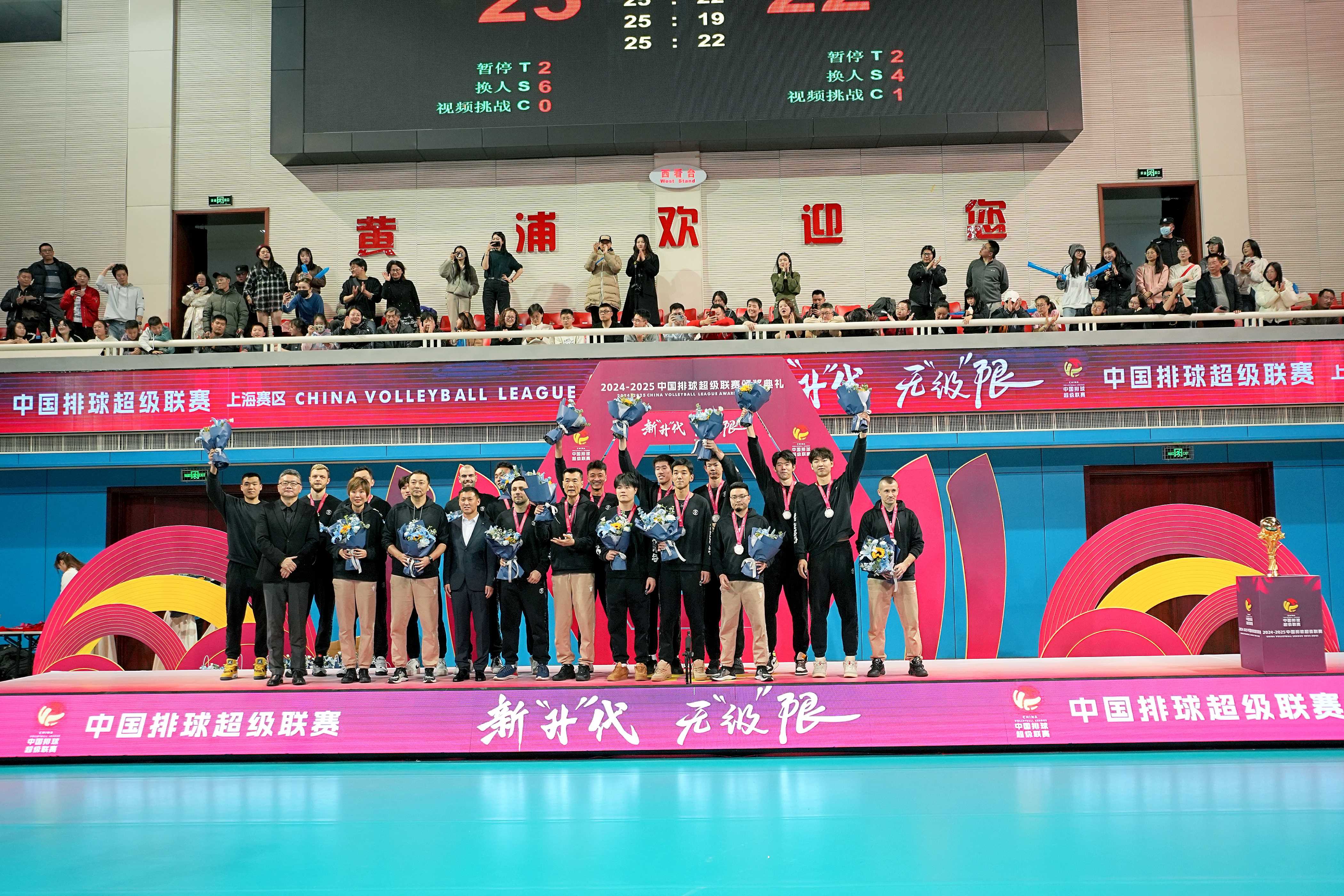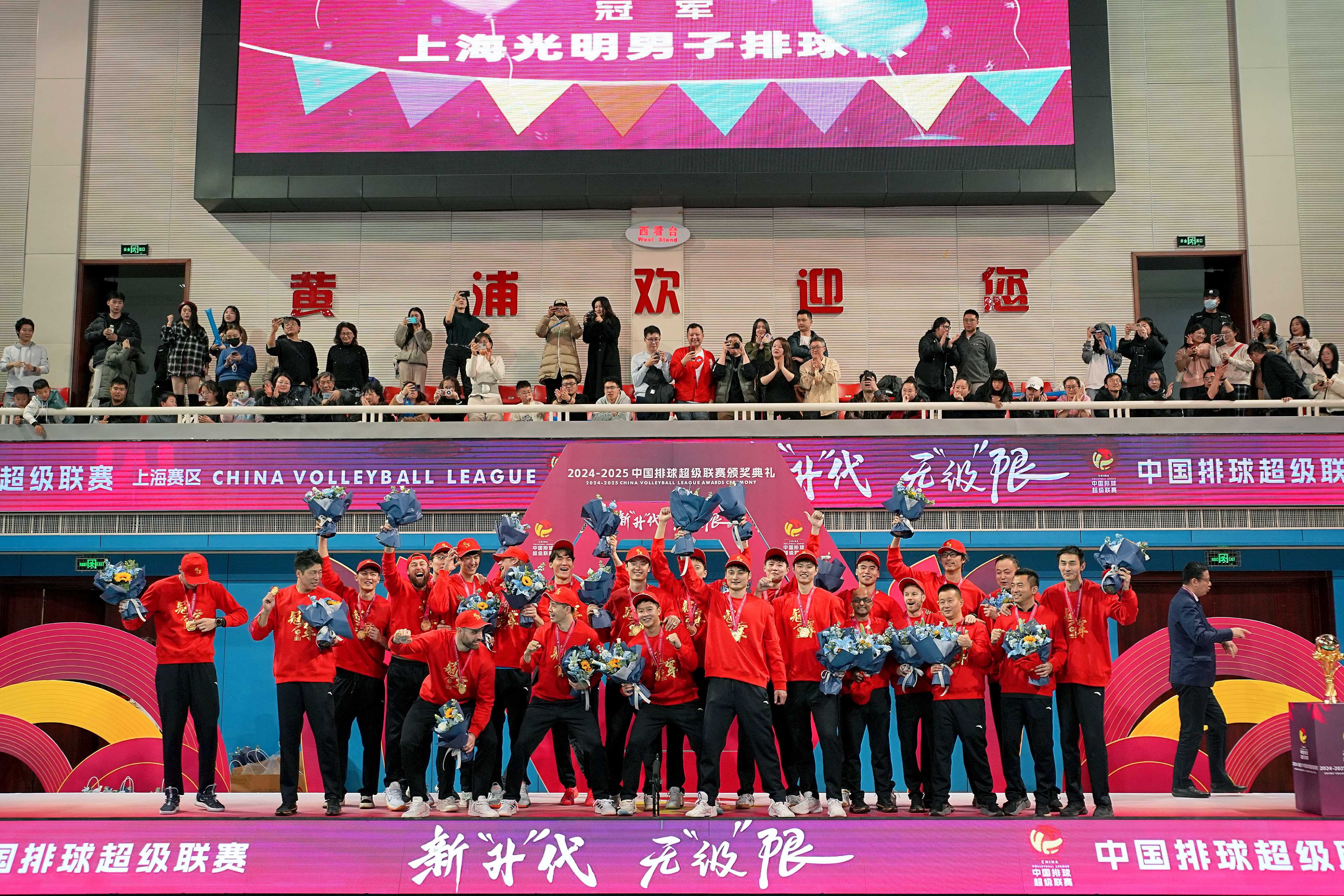 2025年3月9日下午,2024-2025中国男子排球超级联赛A级总决赛在上海卢湾体育馆落幕。上海光明男排、保定沃隶男排、天津食品集团男排分列三甲。排名第四至第八名的队伍依次为山东松山小镇男排、浙江德清男排、北京北汽男排、广东台山和力男排、南京广电猫猫男排。